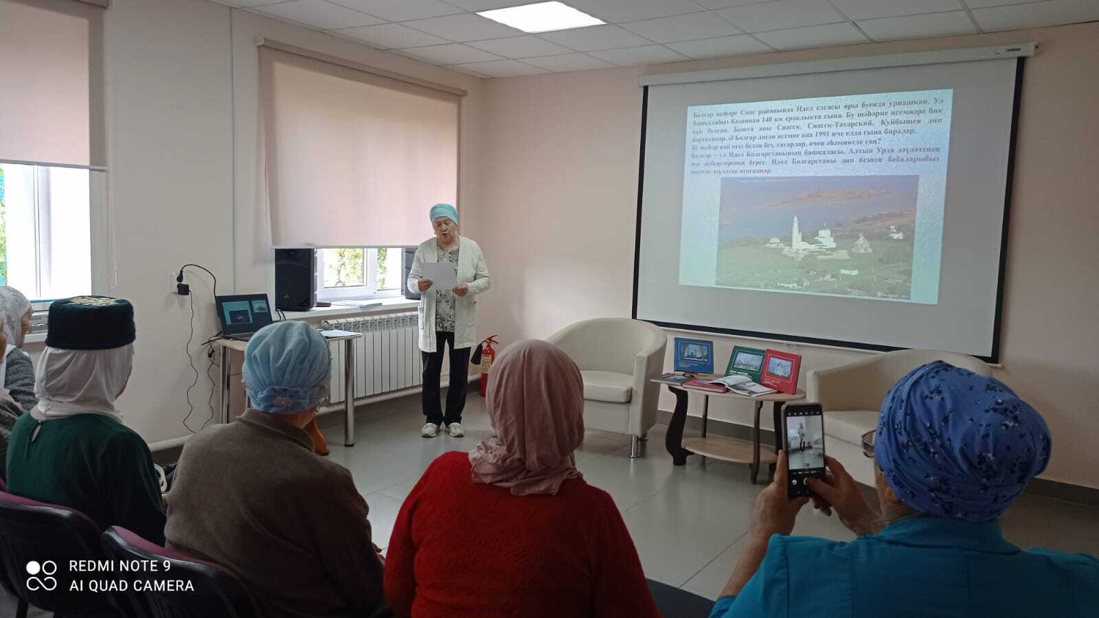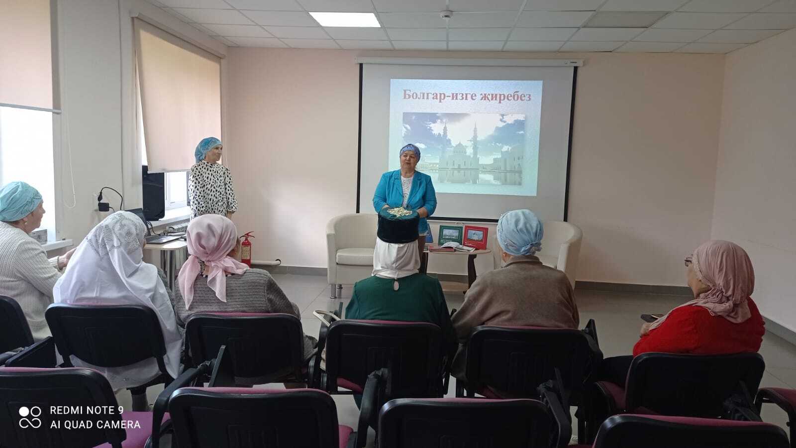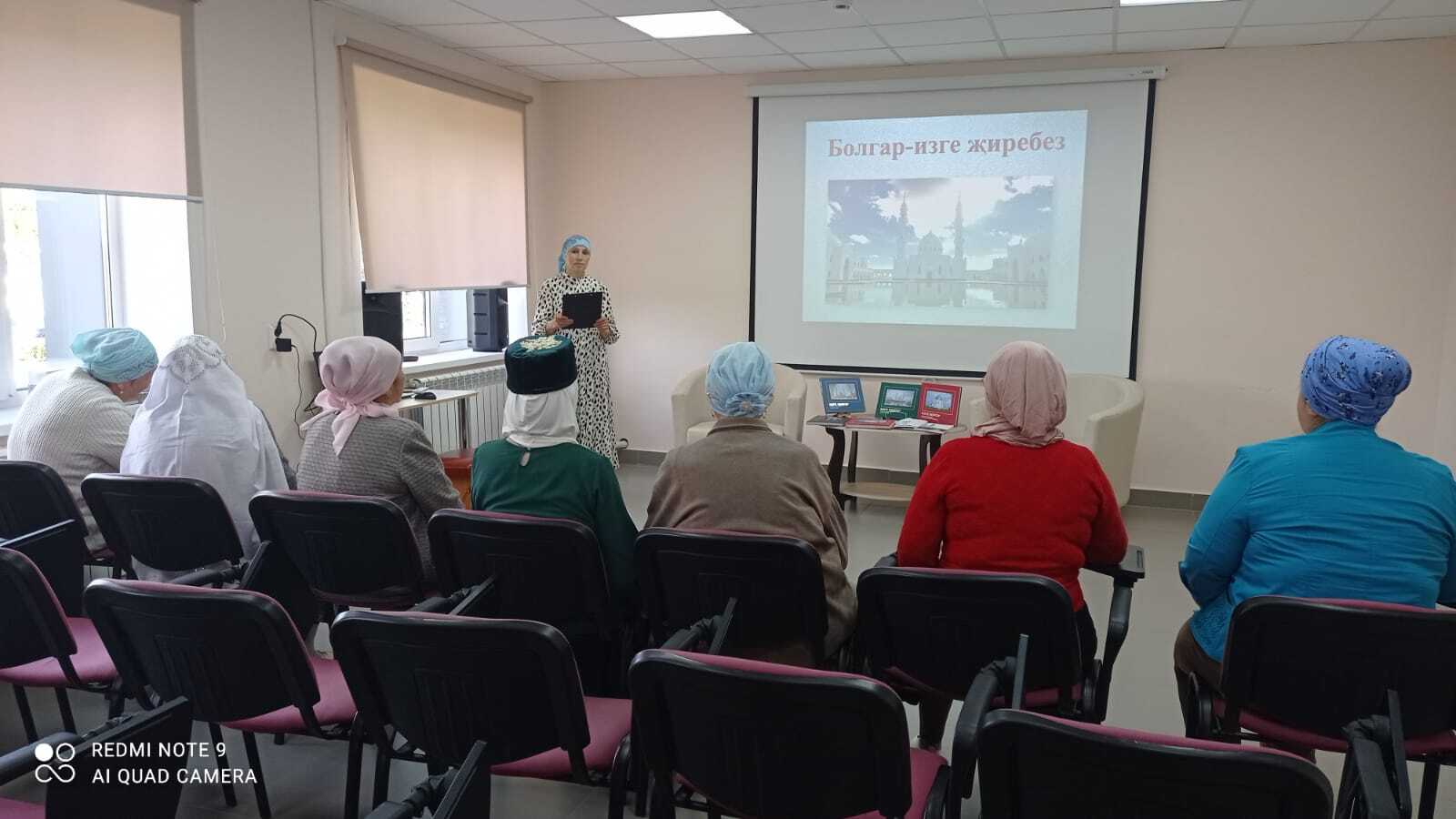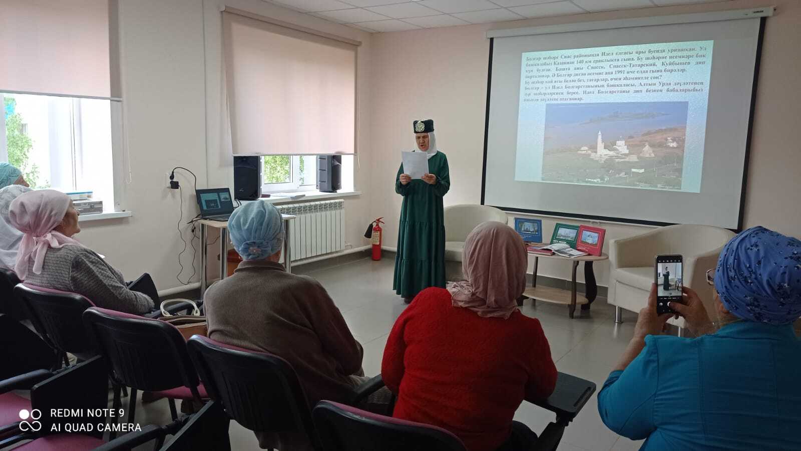 23 мая библиотекарь читального зала Салимова Т. Х. провела, для гостей клуба “Сююмбике”, беседу “Ислам- религия добра”, посвященную 1103-й годовщине принятия ислама Волжской Булгарией. Библиотекарь рассказала историю Волжской Булгарии. С помощью компьютерной презентации познакомила с историческими памятниками Булгарского государственного историко-архитектурного музея-заповедника. Участница клуба Ахметшина Венера Хайдаровна поделилась своими воспоминаниями о поездке в Болгар. Хазиева Гульшат прочитала стихи писателя, общественного и политического деятеля Разиля Валеева “Борынгы Болгарда”, Гайнетдинова Гадения - стихи народного поэта Роберта Миннуллина “ Шәһре Болгарда”. Завершилось мероприятие обзором книжной выставки «1103 год принятия ислама в Волжской Булгарии».