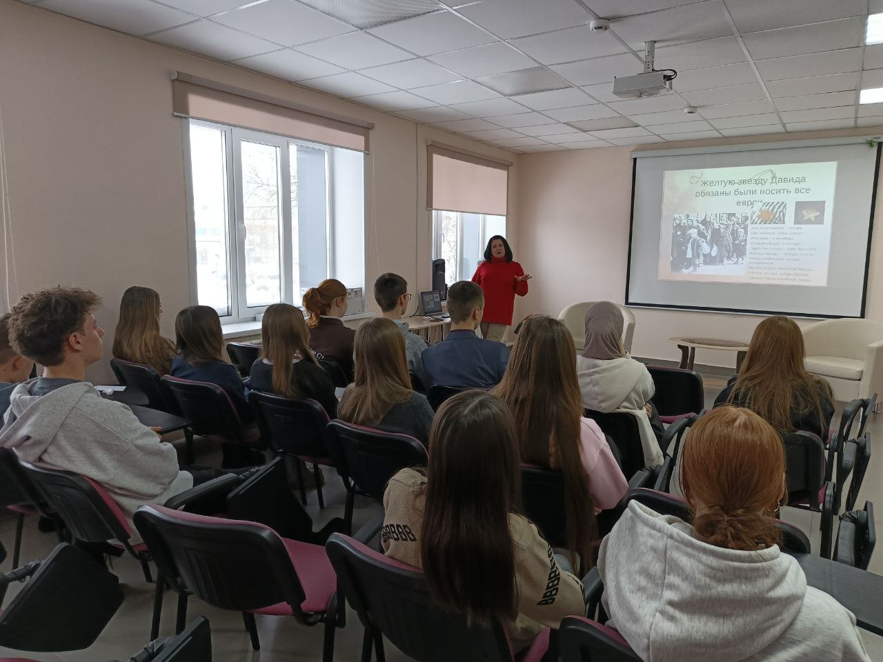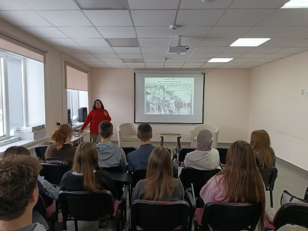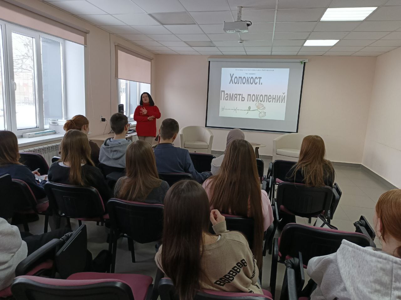 26 гыйнвар - Халыкара Холокост корбаннарын искә алу көне. Әлеге истәлекле дата алдыннан, үзәк китапханә китапханәчесе Гарипова Л. Д., Ч.Т. Айтматов исемендәге гимназияның 10нчы сыйныф укучылары өчен, «Холокост. Буыннар хәтере» дип исемләнгән хәтер сәгате үткәрде. Лилия Дамир кызы укучыларны Холокост фаҗигасе белән бәйле төп төшенчәләр белән таныштырды. Фашизмның күпсанлы корбаннары, яһүд халкының рәхимсез юк ителүе турында сөйләде.