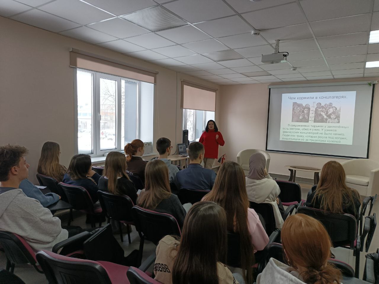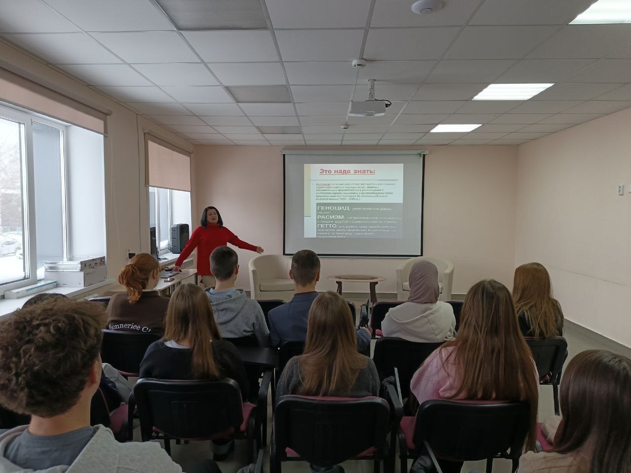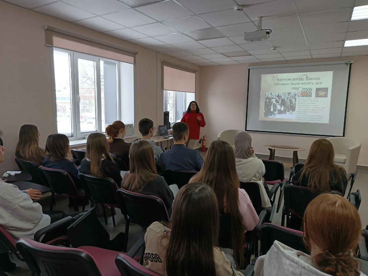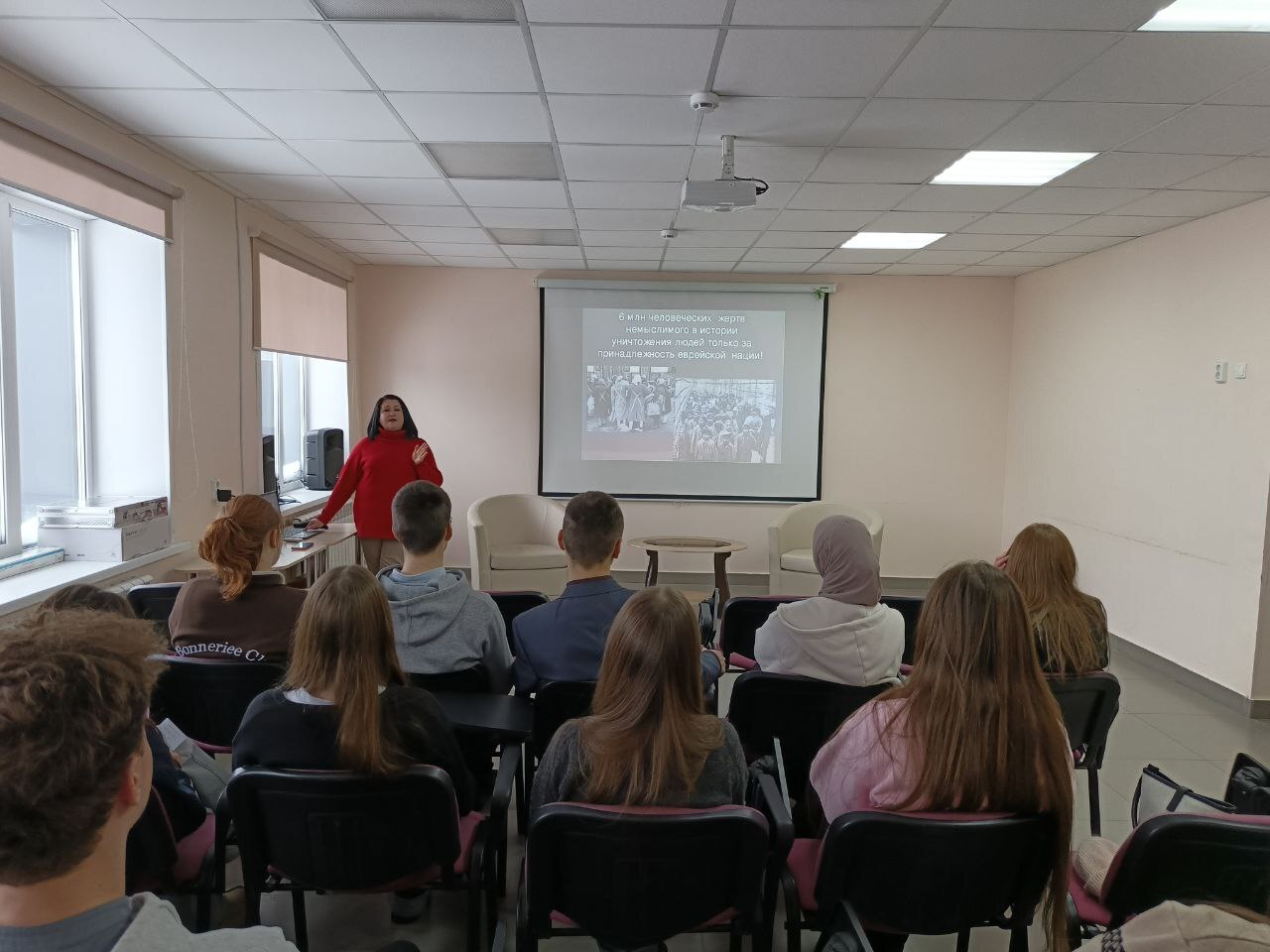 26 гыйнвар - Халыкара Холокост корбаннарын искә алу көне. Әлеге истәлекле дата алдыннан, үзәк китапханә китапханәчесе Гарипова Л. Д., Ч.Т. Айтматов исемендәге гимназияның 10нчы сыйныф укучылары өчен, «Холокост. Буыннар хәтере» дип исемләнгән хәтер сәгате үткәрде. Лилия Дамир кызы укучыларны Холокост фаҗигасе белән бәйле төп төшенчәләр белән таныштырды. Фашизмның күпсанлы корбаннары, яһүд халкының рәхимсез юк ителүе турында сөйләде.