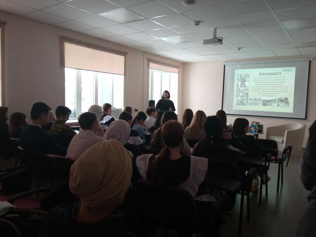27 гыйнвар - Халыкара Холокост корбаннарын искә алу көне. Әлеге истәлекле дата алдыннан, үзәк китапханә китапханәчесе Гарипова Л. Д., Ч.Т. Айтматов исемендәге гимназияның 8нче б сыйныф укучылары өчен, «Холокост - кешелек афәте» дип исемләнгән хәтер сәгате үткәрде. Лилия Дамир кызы укучыларны Холокост фаҗигасе белән бәйле төп төшенчәләр белән таныштырды. Фашизмның күпсанлы корбаннары, яһүд халкының рәхимсез юк ителүе турында сөйләде.
