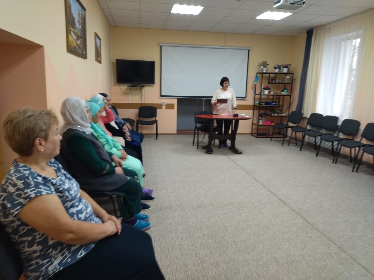 16 ноябрьдә хезмәт күрсәтү бүлеге китапханәчесе В.Г. Пахомова, социаль ярдәм үзәге “НАЗ”да ял итүче пенсионерлар өчен, “Ана – бөек исем” дип исемләнгән ял итү сәгате уздырды. Валентина Геннадиевна ял итүче хатын-кызларны әниләр бәйрәме белән җылы котлады һәм кызыклы конкурс программасы үткәрде. Ял итүчеләр “Разминка”, “Әби базарда”, “Әниләр көне” дигән викторинада катнаштылар, әниләр турында мәкальләр сөйләделәр, әниләр турында шигырьләр сөйләделәр, әниләр турында җырлар җырладылар. Очрашу күңелле, җылы булды.