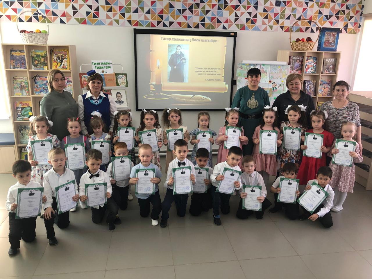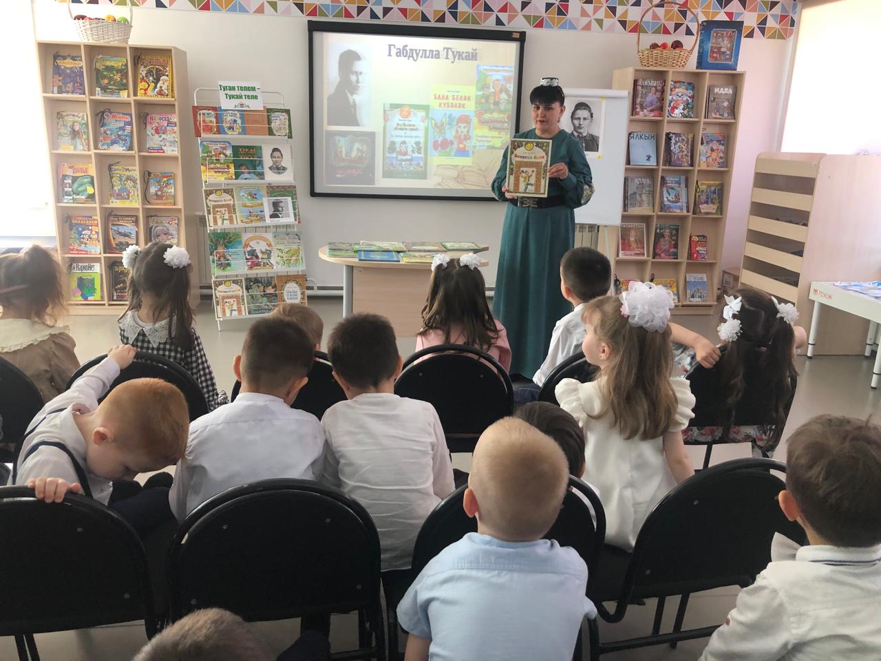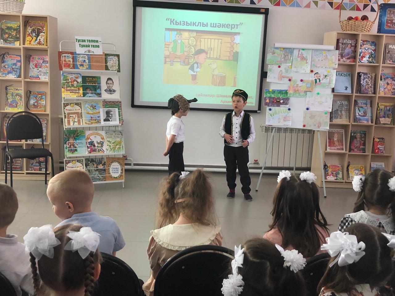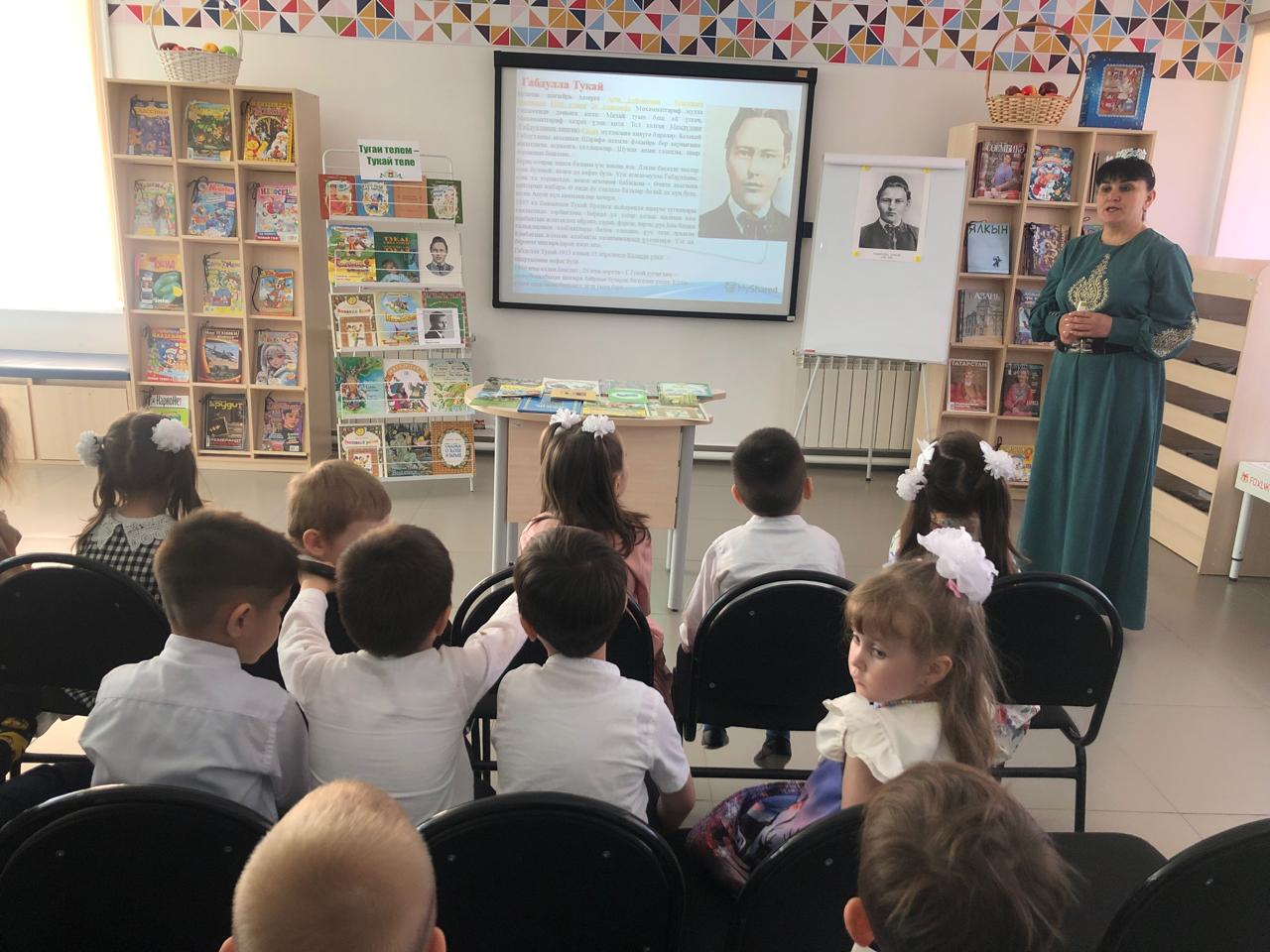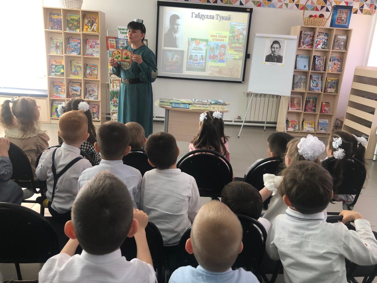 24 апреля центральная детская библиотека имени С.В.Михалкова совместно с детским садом «Радуга» провели конкурс стихов и рисунков «Тукай безнең күңелләрдә», посвящённый 139-летию со дня рождения татарского поэта Габдуллы Тукая. В конкурсе приняли участие дети старшей группы. Библиотекарь Закирова Фирдания рассказала о тяжелом детстве, о творческом пути поэта, познакомила с его книгами. К детям пришли персонажи сказок Тукая — Шурале и Су анасы, добавив празднику волшебства и радости. Дети выразительно читали стихотворения, воспевающие любовь к родному языку, родному краю, его природе, исполнили песни на слова Г.Тукая. Также они представили свои рисунки по произведениям поэта. Работы были выполнены с вдохновением, дети изобразили любимых сказочных героев. Все участники конкурса получили грамоты. Мероприятие завершилось исполнением песни “Туган тел”.