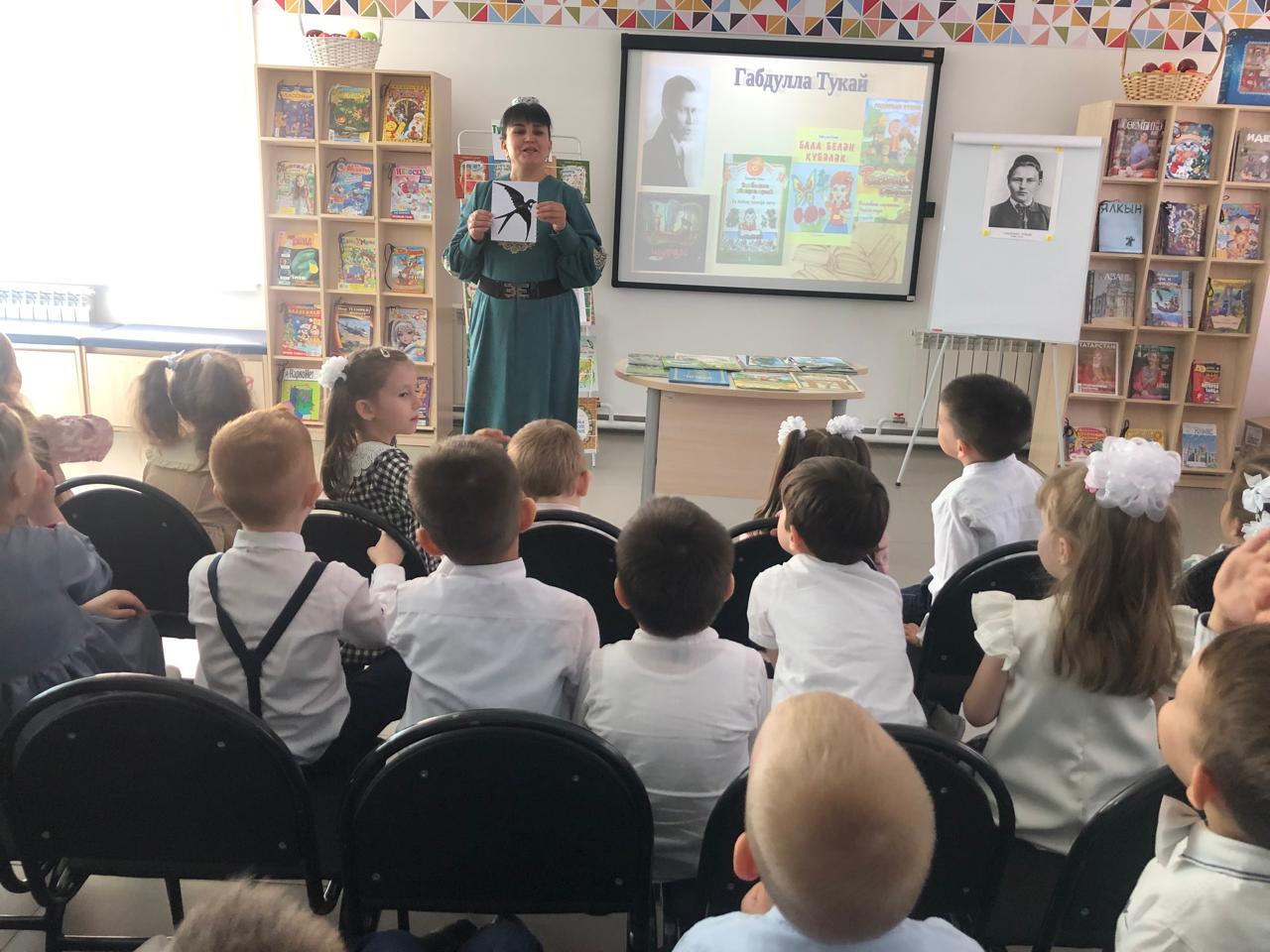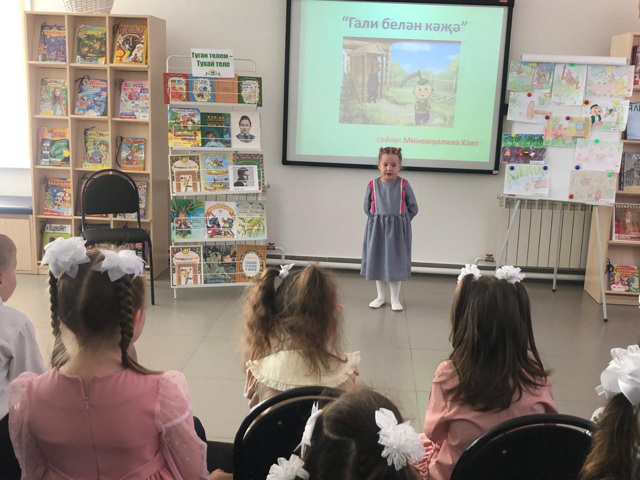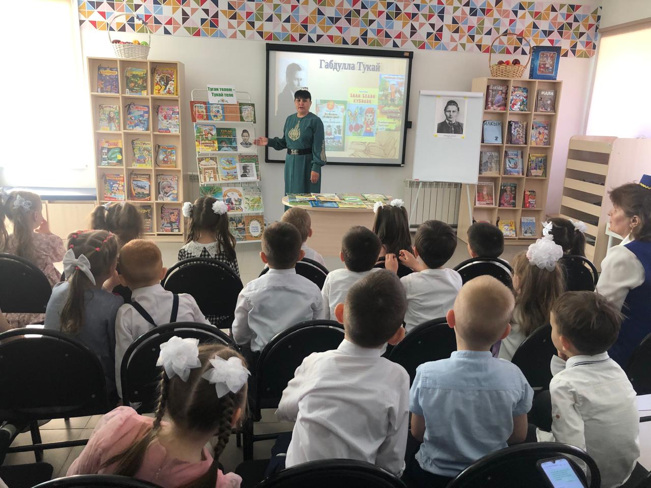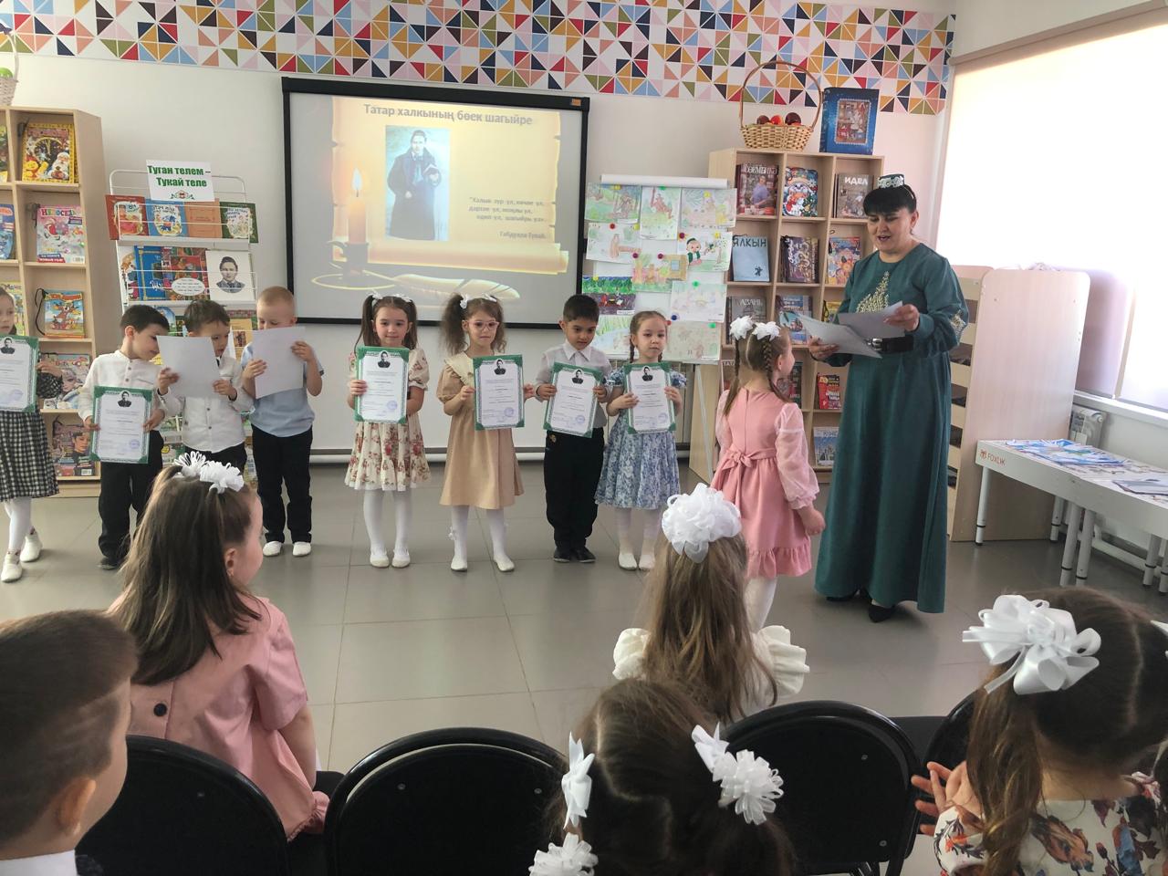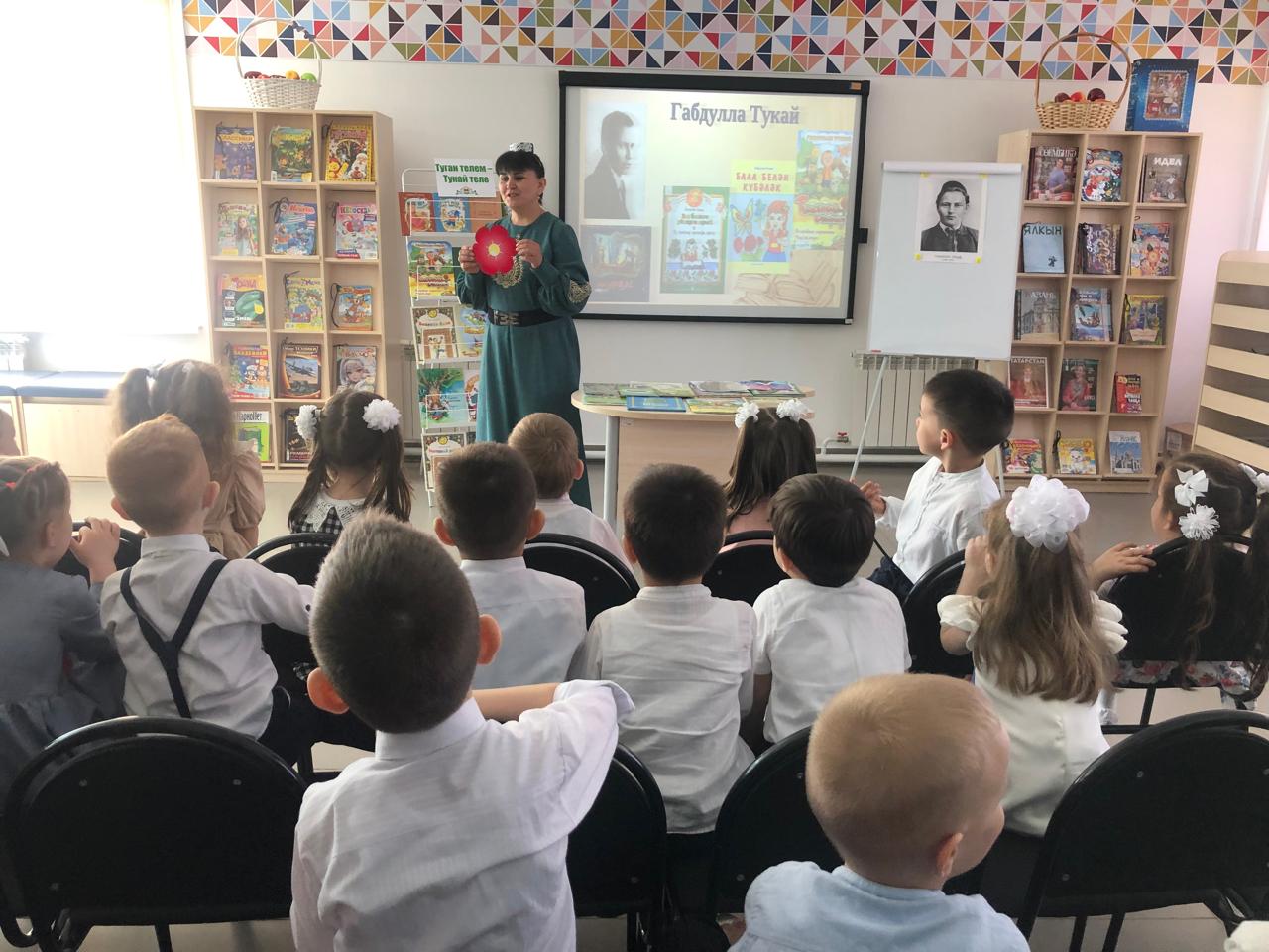 24 апреля центральная детская библиотека имени С.В.Михалкова совместно с детским садом «Радуга» провели конкурс стихов и рисунков «Тукай безнең күңелләрдә», посвящённый 139-летию со дня рождения татарского поэта Габдуллы Тукая. В конкурсе приняли участие дети старшей группы. Библиотекарь Закирова Фирдания рассказала о тяжелом детстве, о творческом пути поэта, познакомила с его книгами. К детям пришли персонажи сказок Тукая — Шурале и Су анасы, добавив празднику волшебства и радости. Дети выразительно читали стихотворения, воспевающие любовь к родному языку, родному краю, его природе, исполнили песни на слова Г.Тукая. Также они представили свои рисунки по произведениям поэта. Работы были выполнены с вдохновением, дети изобразили любимых сказочных героев. Все участники конкурса получили грамоты. Мероприятие завершилось исполнением песни “Туган тел”.