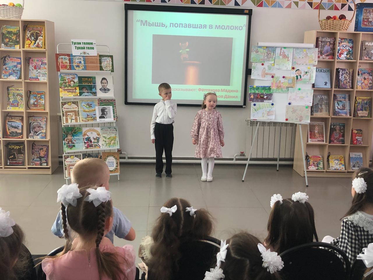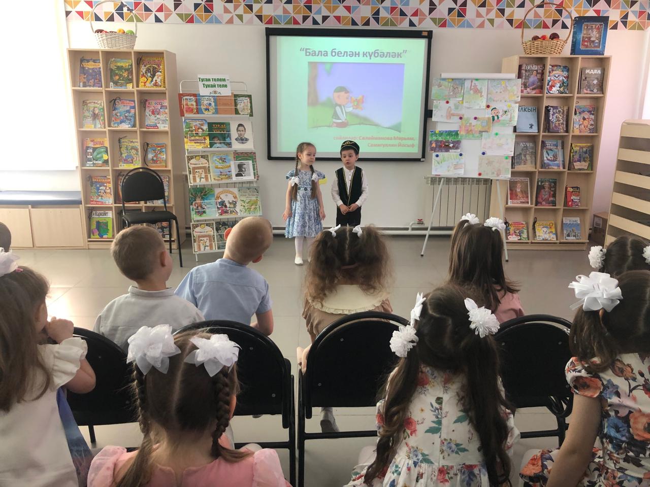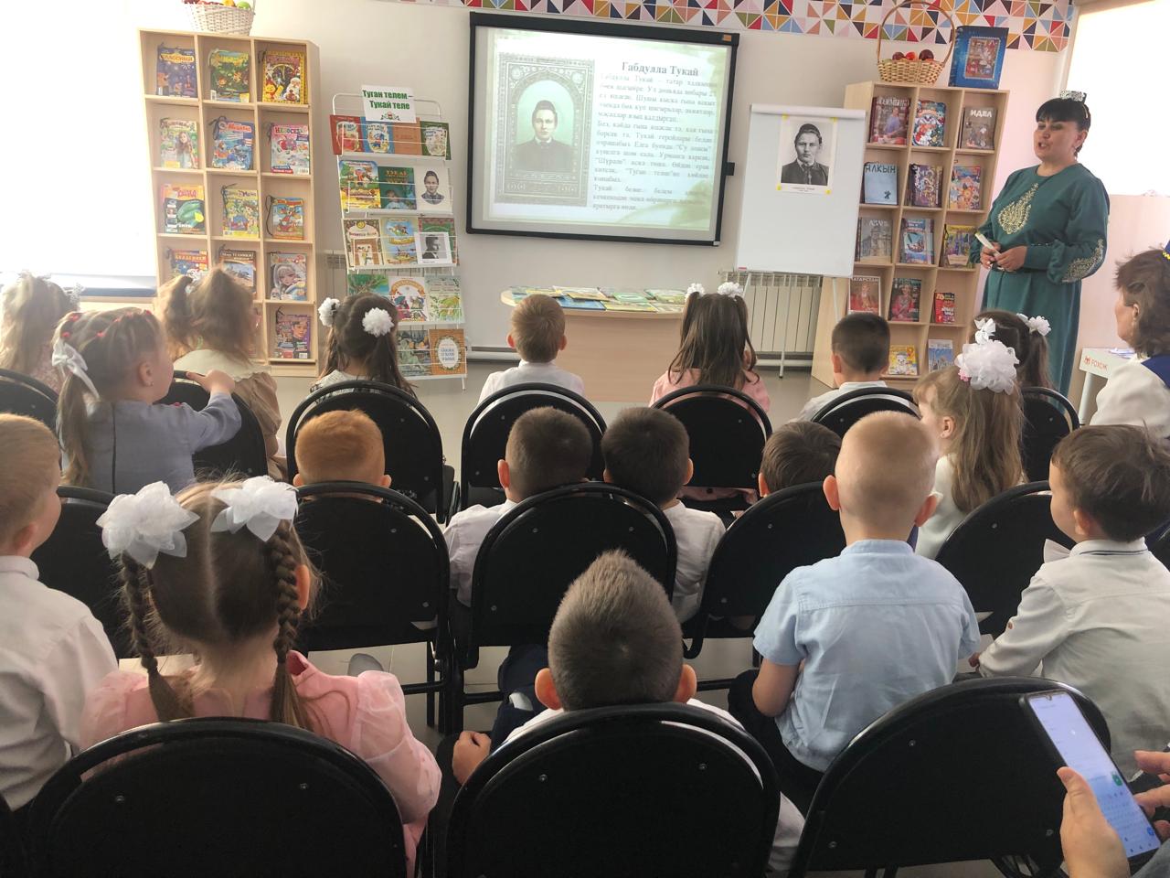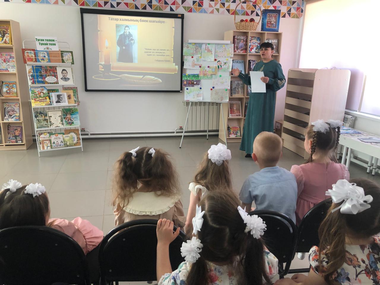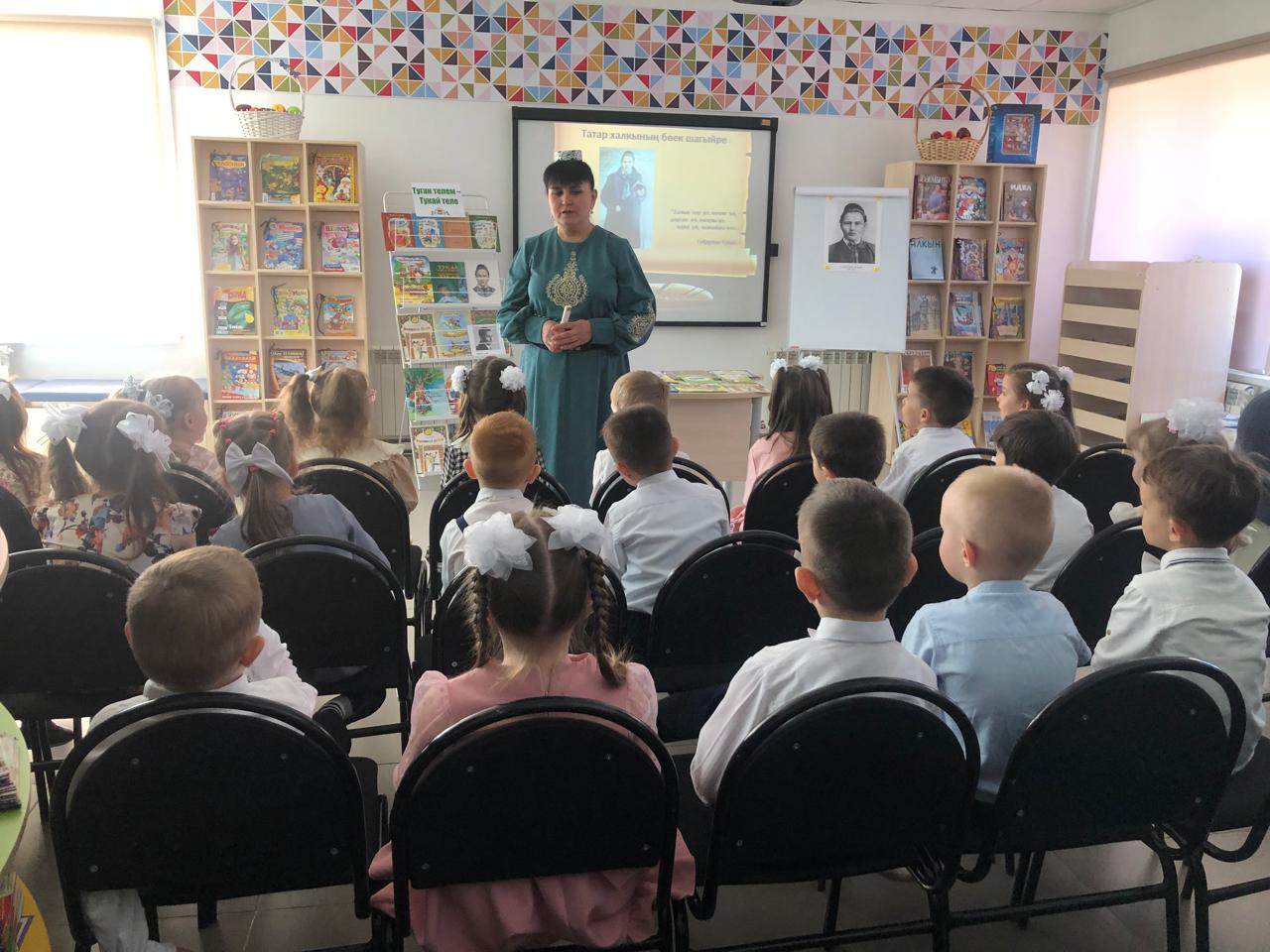 24 апреля центральная детская библиотека имени С.В.Михалкова совместно с детским садом «Радуга» провели конкурс стихов и рисунков «Тукай безнең күңелләрдә», посвящённый 139-летию со дня рождения татарского поэта Габдуллы Тукая. В конкурсе приняли участие дети старшей группы. Библиотекарь Закирова Фирдания рассказала о тяжелом детстве, о творческом пути поэта, познакомила с его книгами. К детям пришли персонажи сказок Тукая — Шурале и Су анасы, добавив празднику волшебства и радости. Дети выразительно читали стихотворения, воспевающие любовь к родному языку, родному краю, его природе, исполнили песни на слова Г.Тукая. Также они представили свои рисунки по произведениям поэта. Работы были выполнены с вдохновением, дети изобразили любимых сказочных героев. Все участники конкурса получили грамоты. Мероприятие завершилось исполнением песни “Туган тел”.