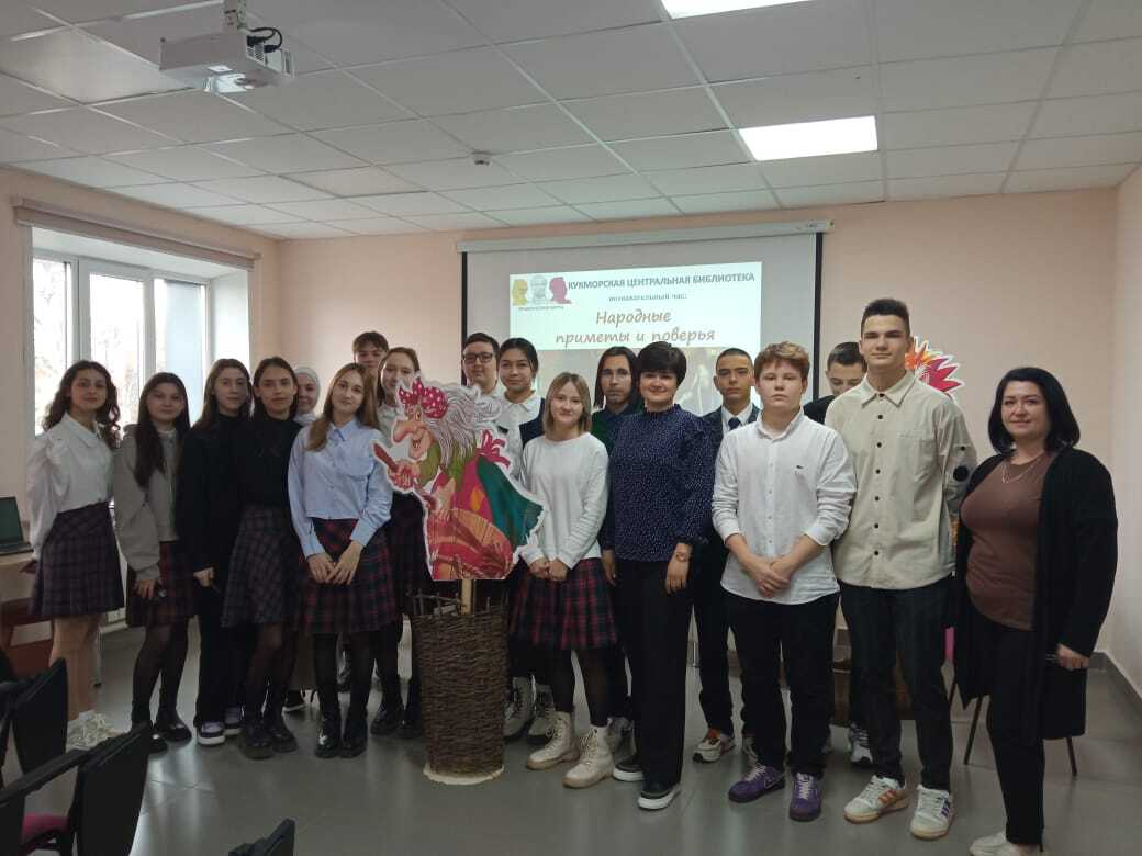 17 апрельдә «Пушкин картасы» проекты кысаларында, хезмәт күрсәтү бүлеге китапханәчесе Гарипова Л.Д., 4 нче урта мәктәпнең 10 нчы сыйныф укучылары өчен, «Халык ырымнары һәм ышанулары» исемле танып белү сәгате үткәрде.