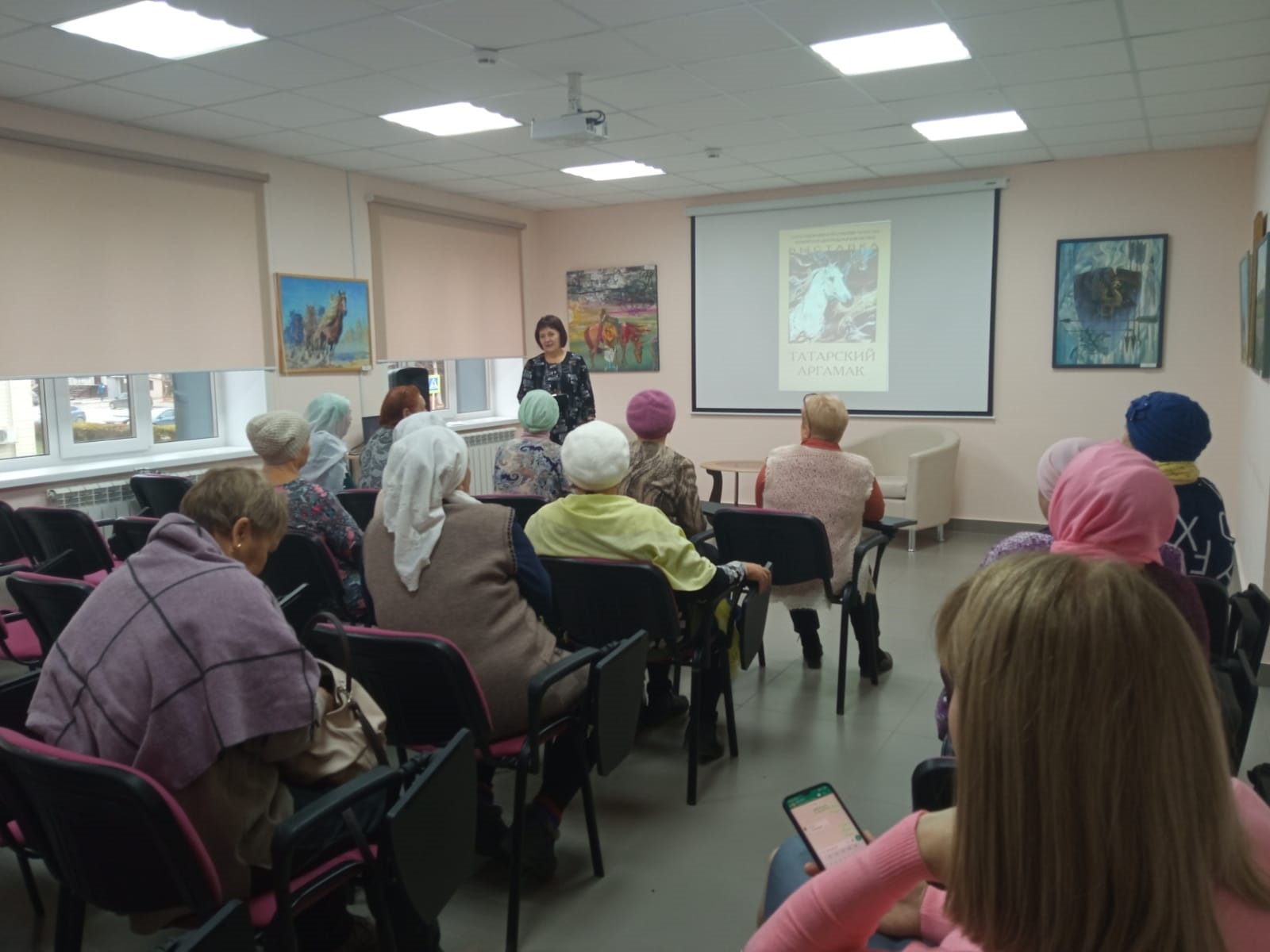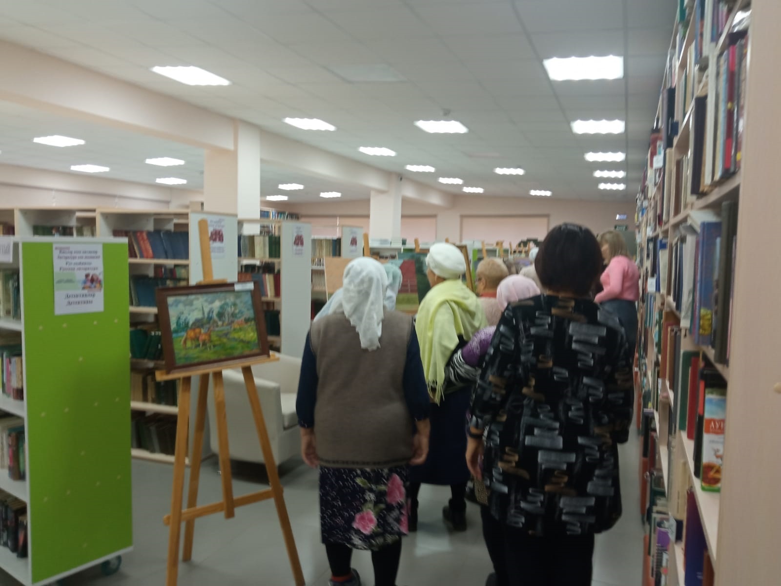 23 октябрьдә үзәк китапханәгә социаль ярдәм үзәге “НАЗ” да ял итүче пенсионерлар килде. Китапханәче В.Г. Пахомова күзәтү экскурсиясе үткәрде, Татарстан рәссамнарының «Татар Аргамагы» исемле картиналар күргәзмзсе белән таныштырды. Аннары кунакларга конференцзалга узарга тәкъдим иттелдә, анда Валентина Геннадиевна алар белән кызыклы конкурслар һәм викториналар уздырды.
