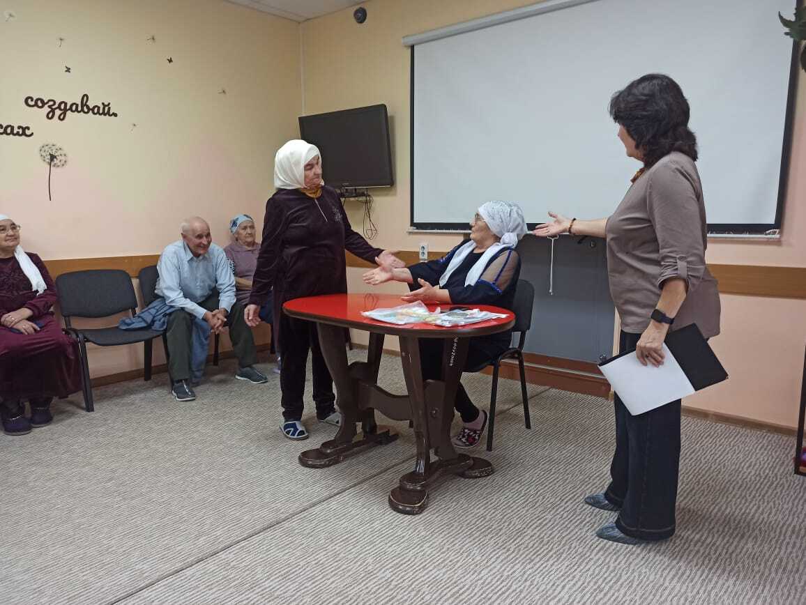 Особое внимание было уделено конкурсам и викторинам, в которых пенсионеры активно принимали участие. Они отгадывали загадки о материнстве, составляли пословицы и поговорки, вспоминали колыбельные песни, приняли участие в конкурсах: «Понарошковая каша», «Случай в ЗАГСе», «Ласковое слово»