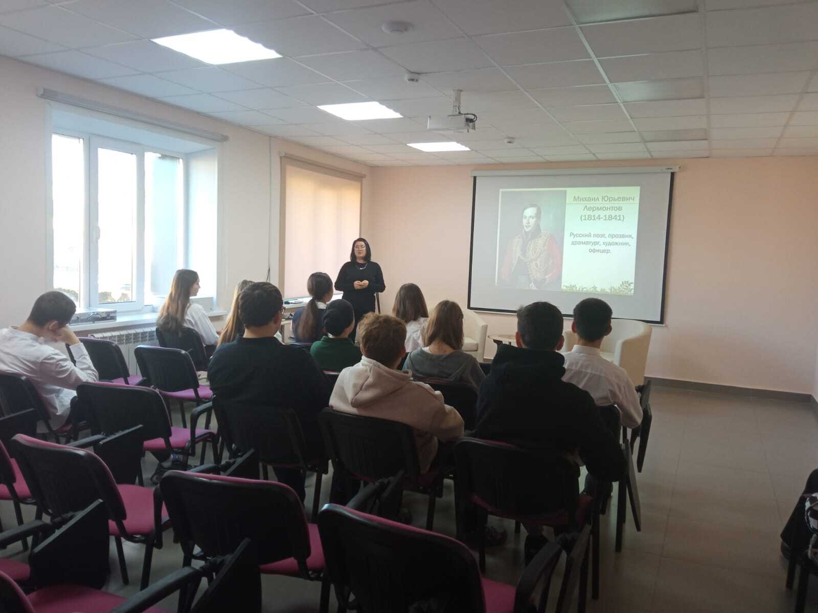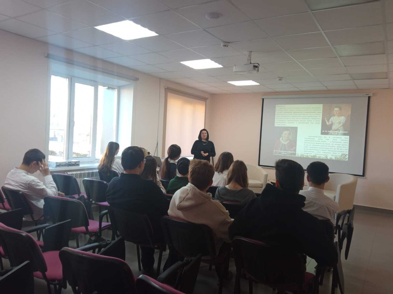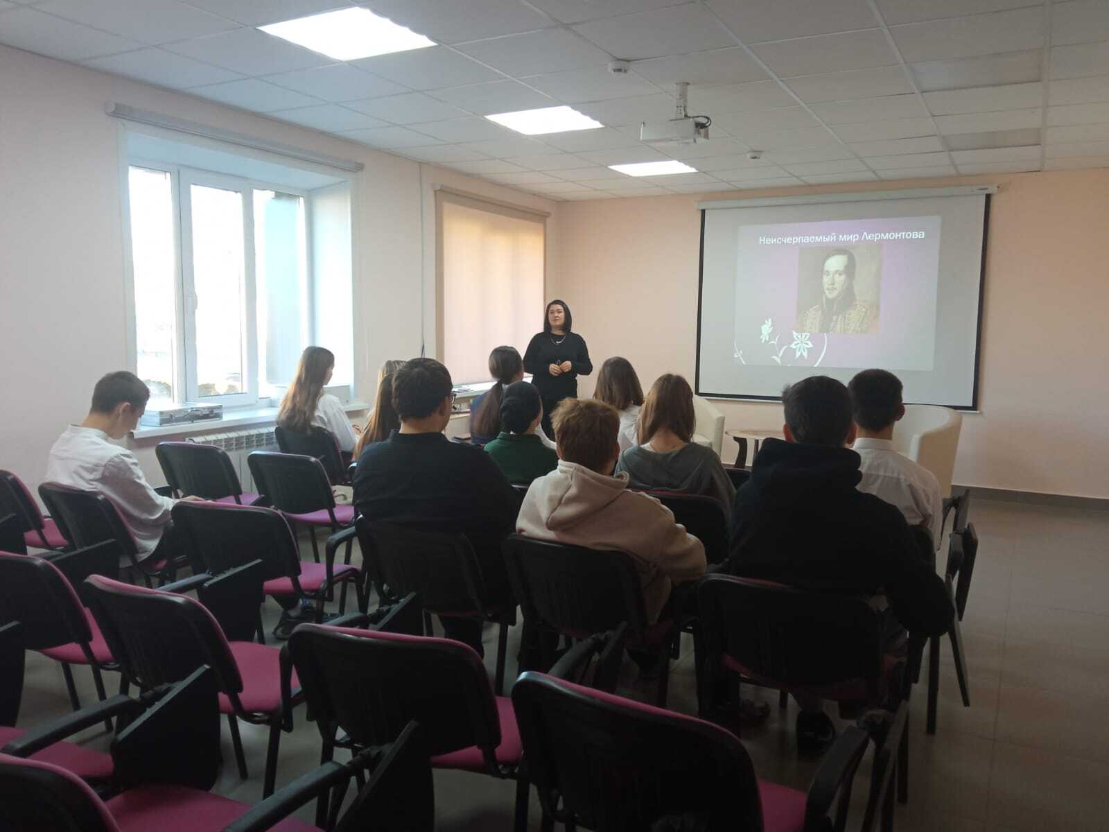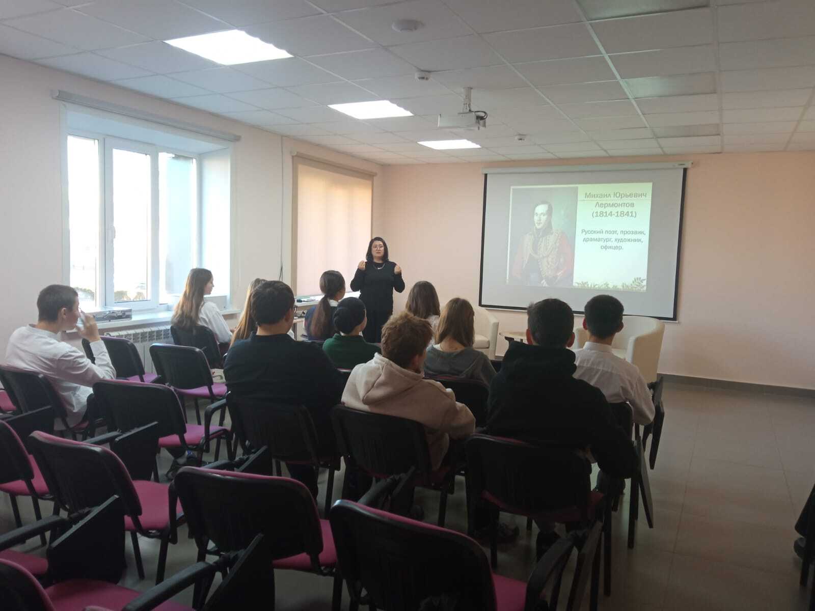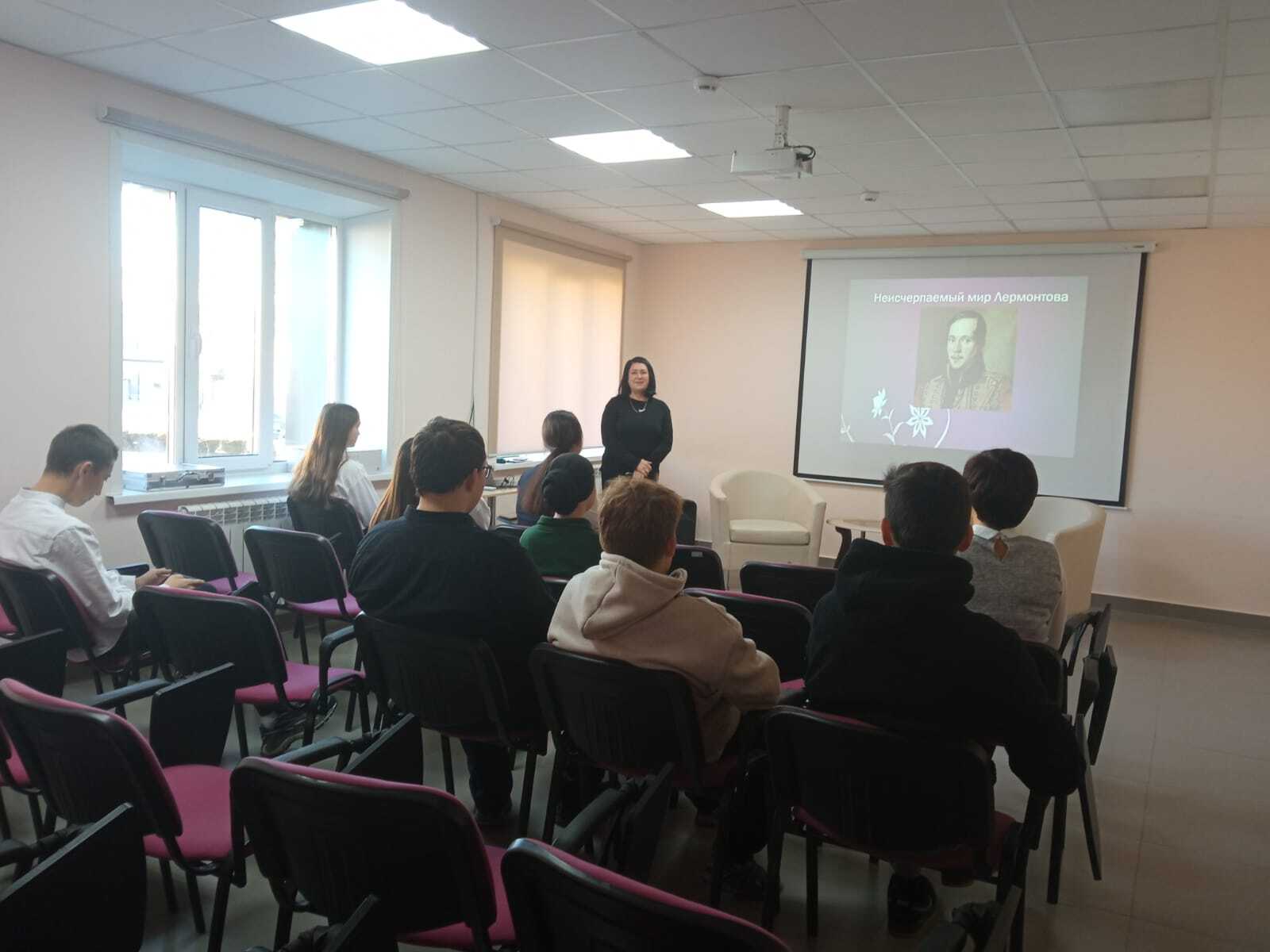 15 октябрь көнне, «Пушкин картасы» проекты кысаларында, хезмәт күрсәтү бүлеге китапханәчесе Гарипова Л.Д. «Лермонтовның бетмәс-төкәнмәс дөньясы» исемле әдәби дилижанс үткәрде. Чара барышында алып баручы шагыйрь тормыш битләрен ачты."М.Ю. Лермонтовның тормышы һәм иҗаты" исемле слайд-презентациясе белән тулыландырылды.