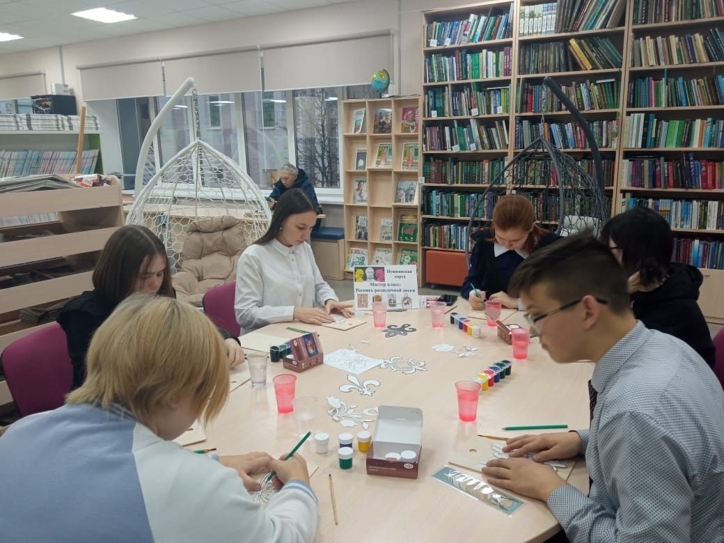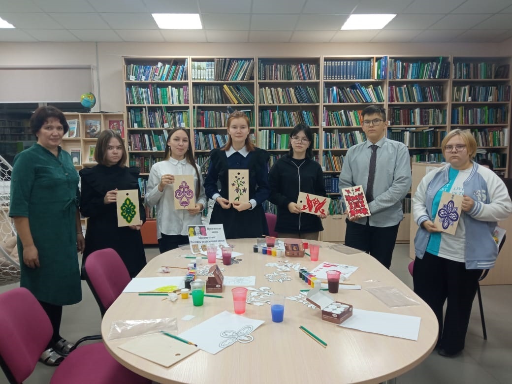 16 ноябрьдә, "Пушкин картасы" проекты кысаларында, Үзәк китапханәдә, балалар сәнгать мәктәбе укучылар өчен, татар орнаменты белән кисү тактасын буяу буенча мастер-класс үтте.