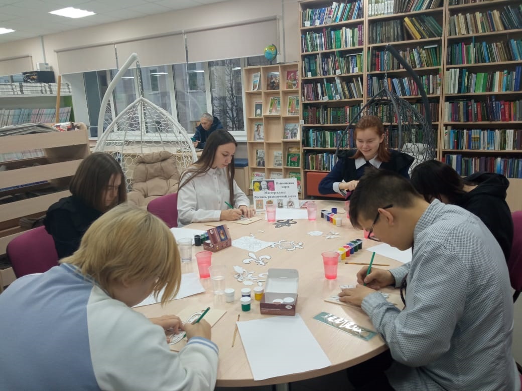 16 ноября, в рамках проекта “Пушкинская карта”, в центральной библиотеке, для учащихся детской школы искусств , библиотекарь Саттарова Л.Р. провела мастер-класс по росписи разделочной доски татарским орнаментом.