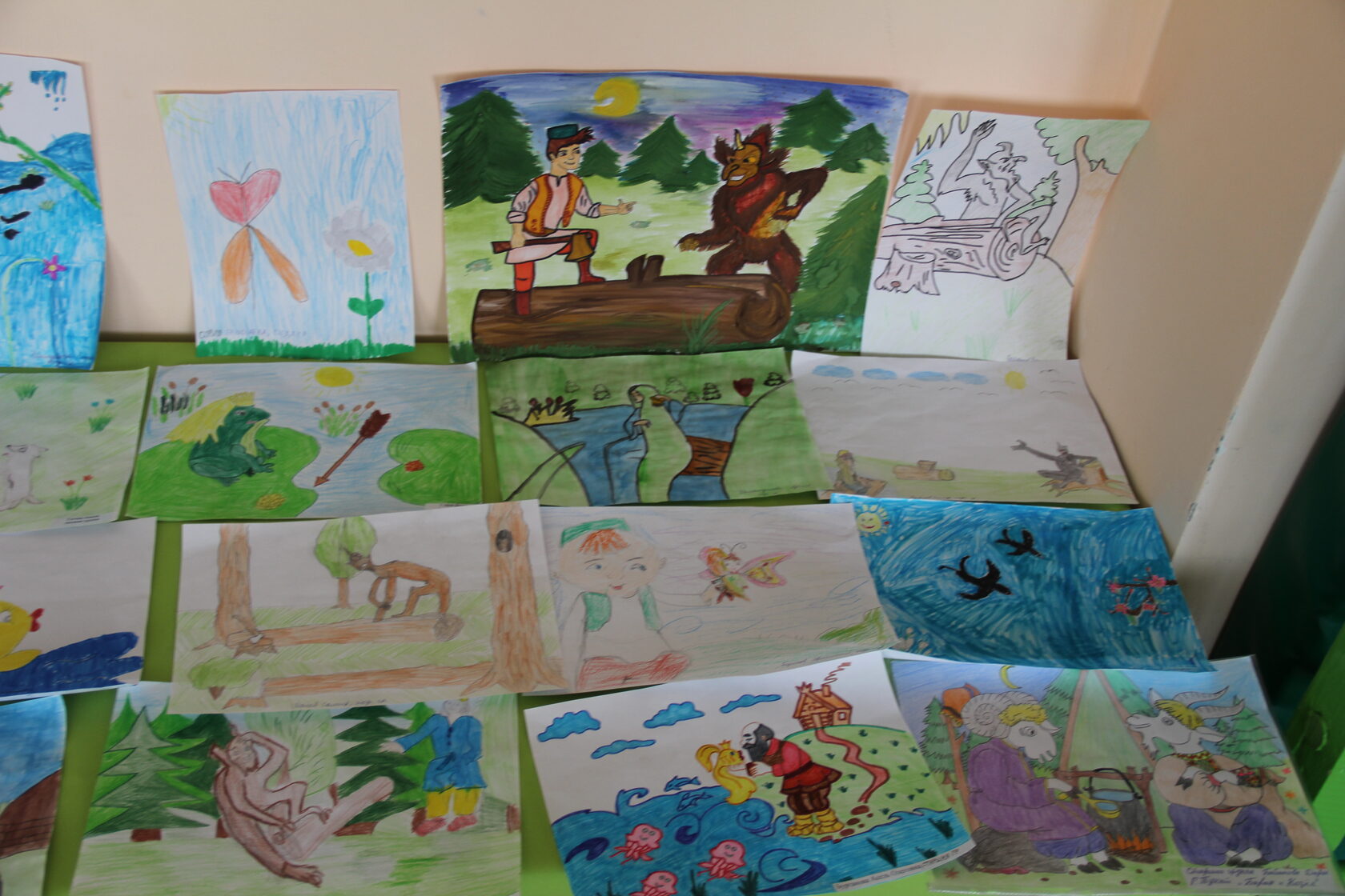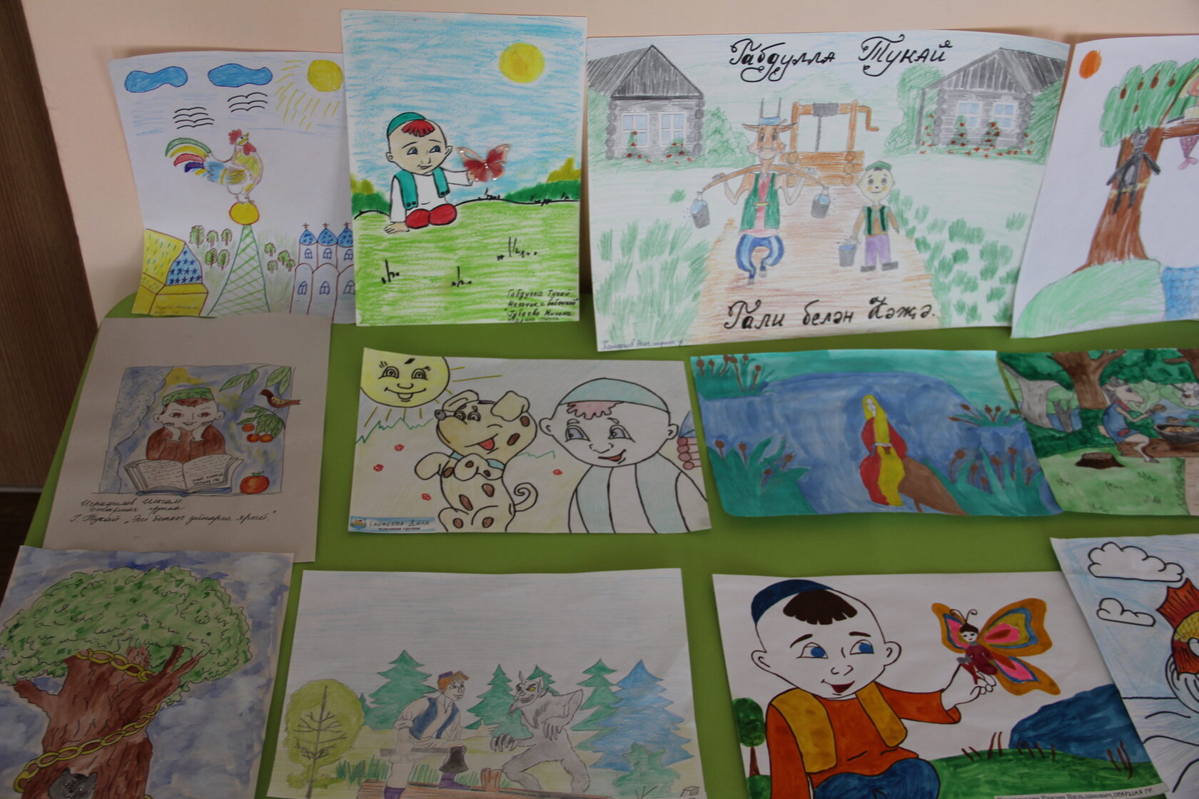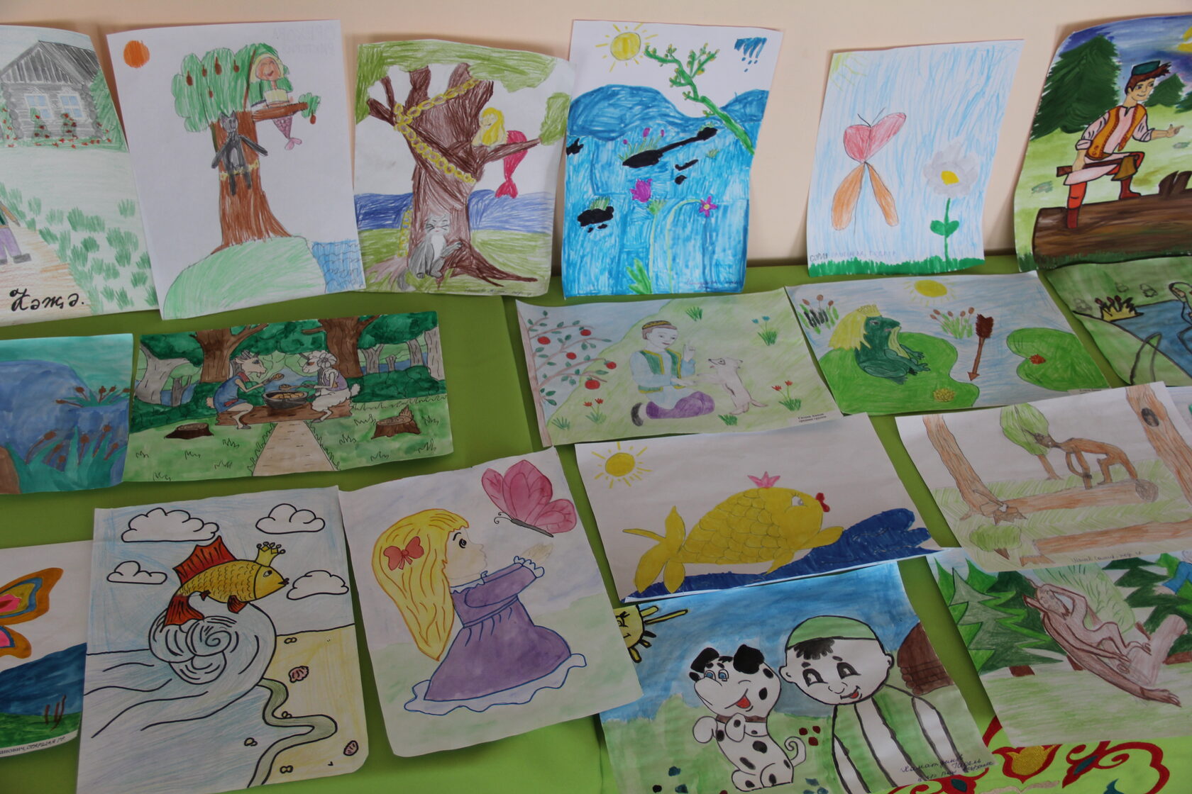 Затем дети выразительно рассказали стихи А.С.Пушкина и Г. Тукая. А также были подведены итоги конкурса рисунков. В своих рисунках дети изобразили любимых сказочных героев. Проявили фантазию и мастерство, приложили свои умения и старания. Работы получились очень красочными и добрыми.