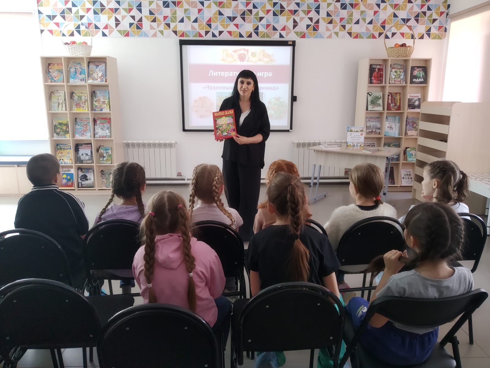 27 апреля библиотекарь центральной детской библиотеки им.С.В.Михалкова Ахметова Лейсан для учащихся начальных классов д. Починок-Сутер провела литературную игру – путешествие «Чудесных сказок хоровод». Дети отправились в путешествие по удивительному миру сказок, с большим удовольствием отвечали на вопросы викторины, участвовали в разных конкурсах и играх. Мероприятие завершилось обзором книг и просмотром мультфильмов.