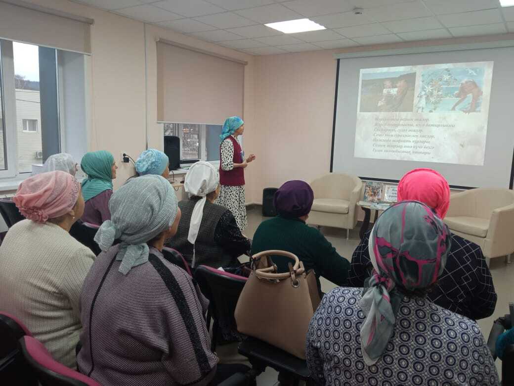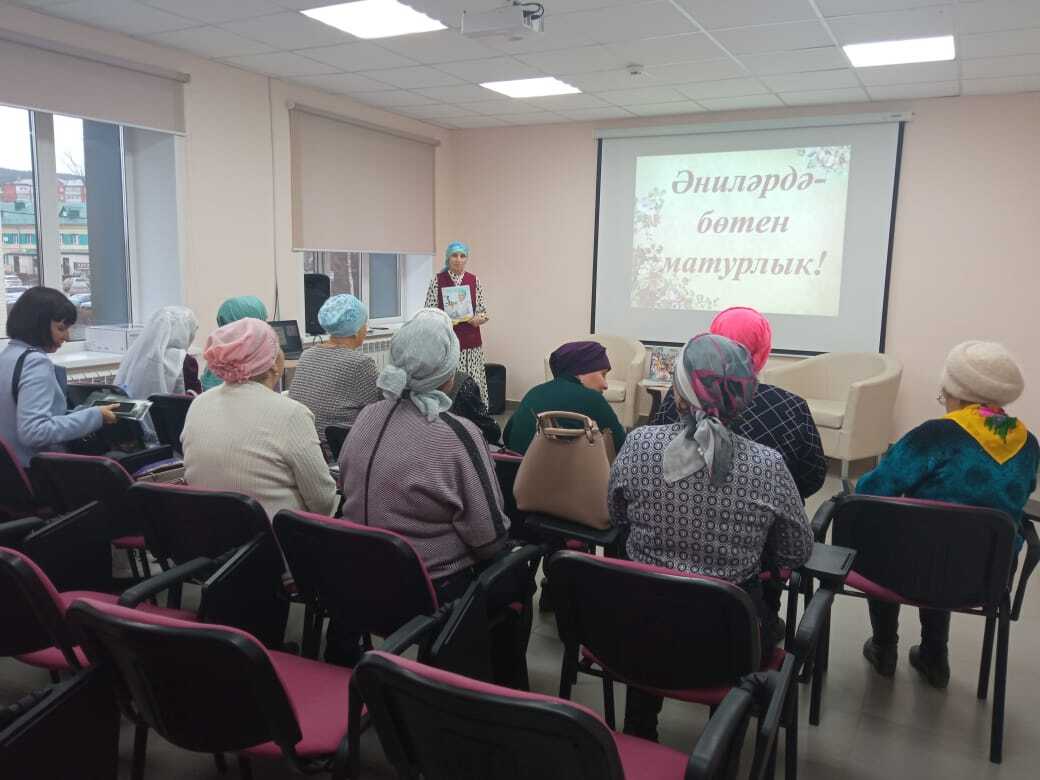 20 ноября в центральной библиотеке ко Дню матери прошла праздничная встреча: “Әниләрдә - бөтен матурлык”. Гостями праздника стали участницы клуба “Сююмбика”. Руководитель клуба Салимова Таскира Харисовна подготовила беседу с презентацией, провела обзор книг, в которых отражен образ матери. Гости читали стихи, пели песни, поделились интересными воспоминаниями из своей жизни.