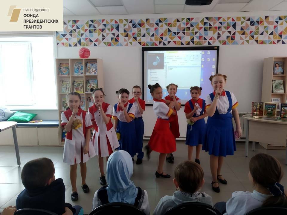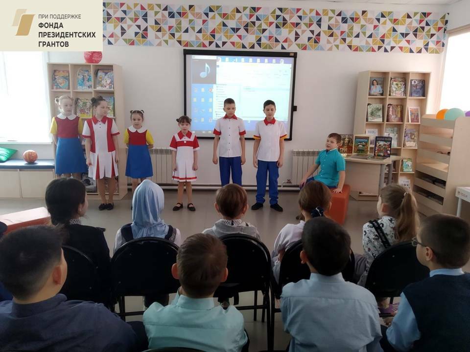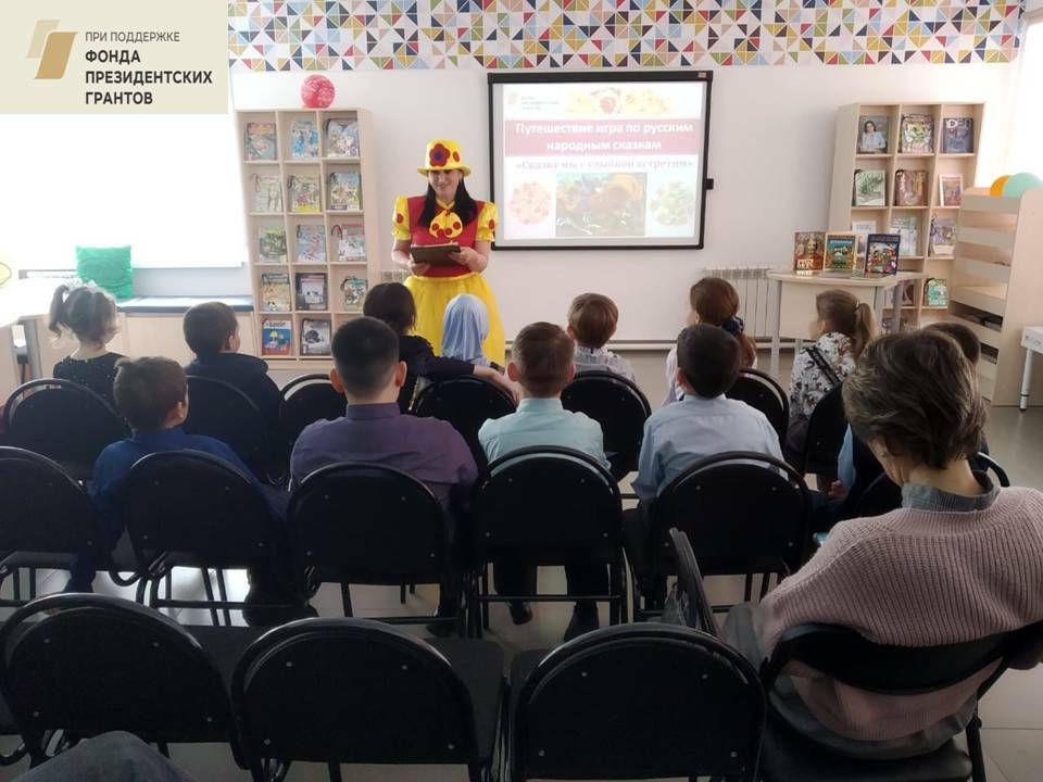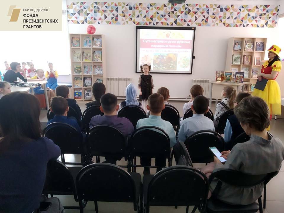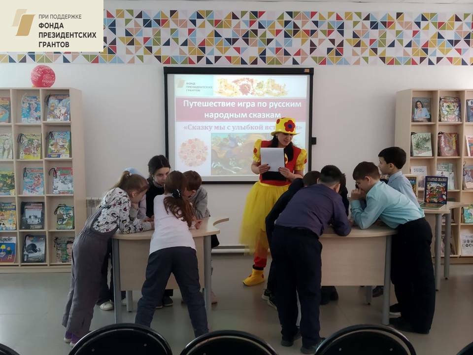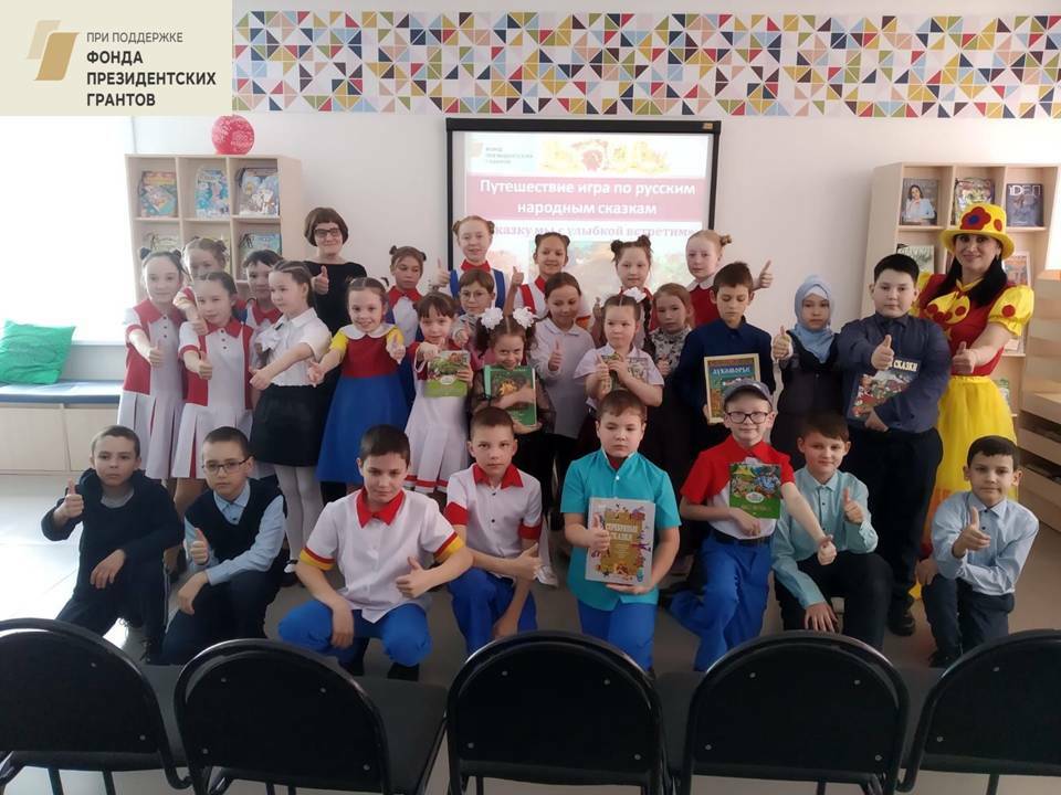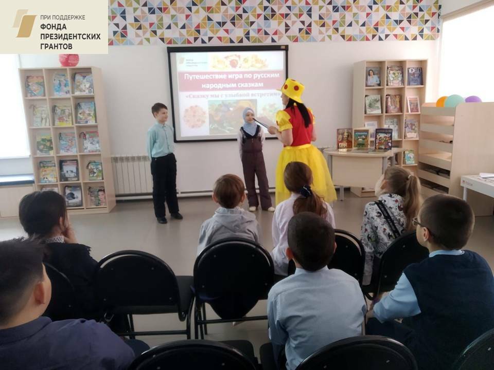 В рамках проекта Фонда президентских грантов «Шаг на встречу» библиотекарь центральной детской библиотеки имени С.В.Михалкова Ахметова Лейсан для детей провела занятие – Путешествие-игра по русским народным сказкам «Сказку мы улыбкой встретим». Дети отправились в волшебный мир сказок, вспомнили произведения устного народного творчества, приняли участие в весёлых конкурсах: «Отвечай одним словом», «Удивительные превращения», «Сказочные заклинания», «Кто есть кто?», «Разноцветные ответы». Затем выступили юные артисты, учащиеся театрального отделения школы искусств (руководитель: Хабибуллина Дания Расиховна) с литературно-музыкальной композицией по стихам детского поэта С.В. Михалкова. Яркое, эмоциональное выступление ребят очень понравилось гостям библиотеки.