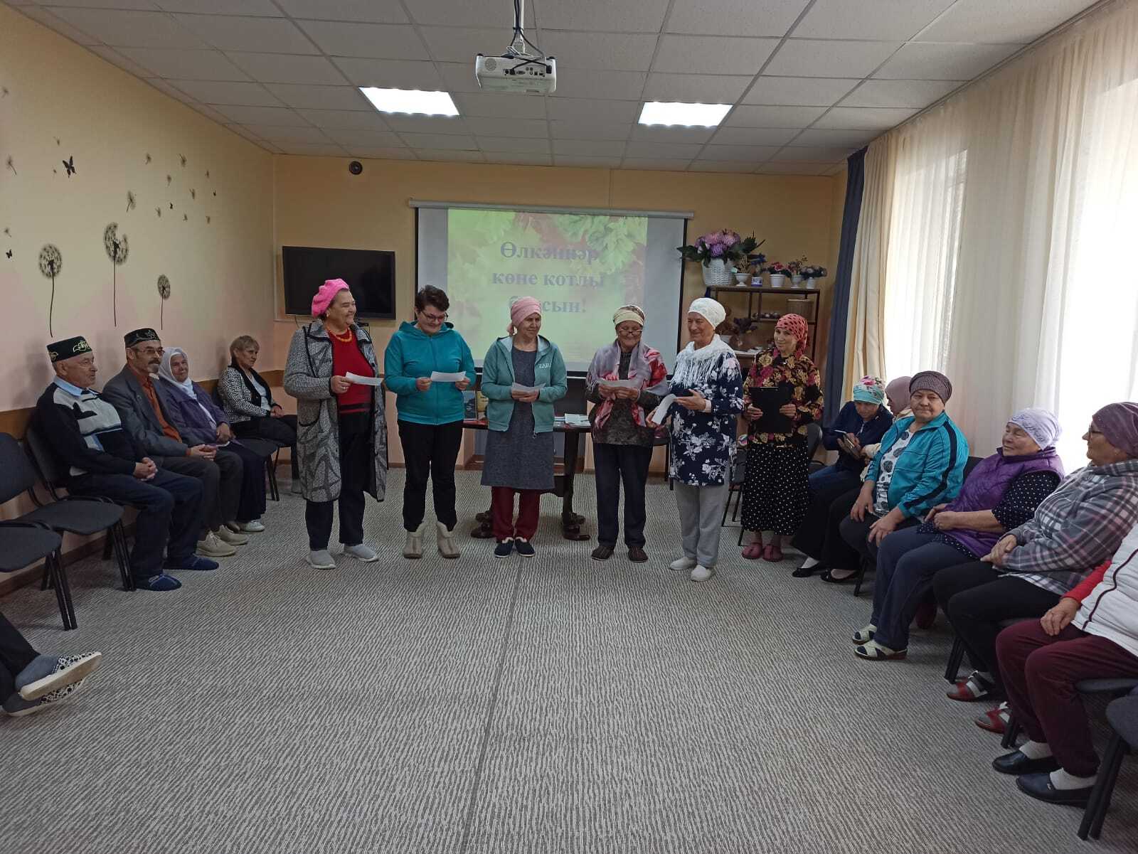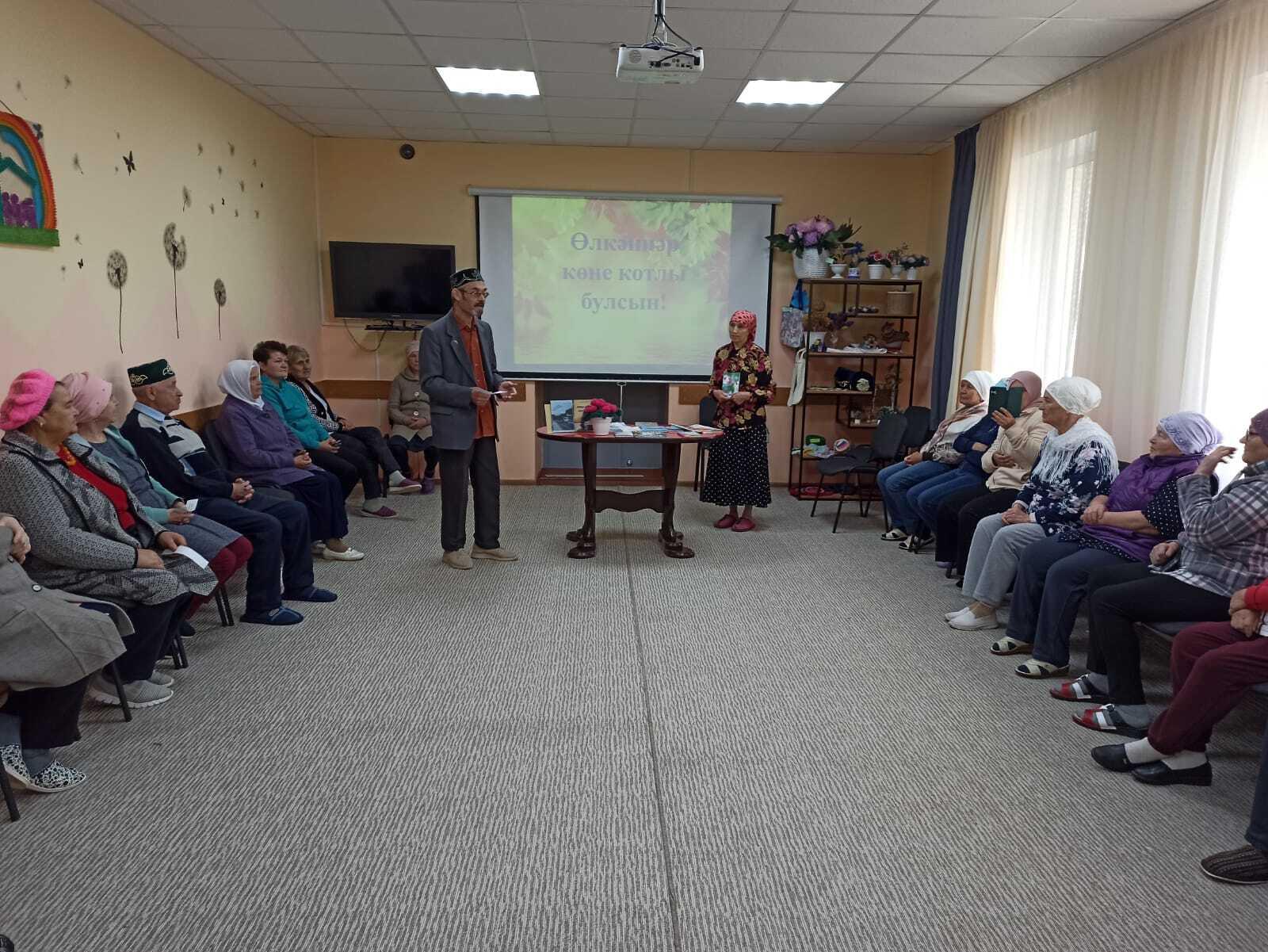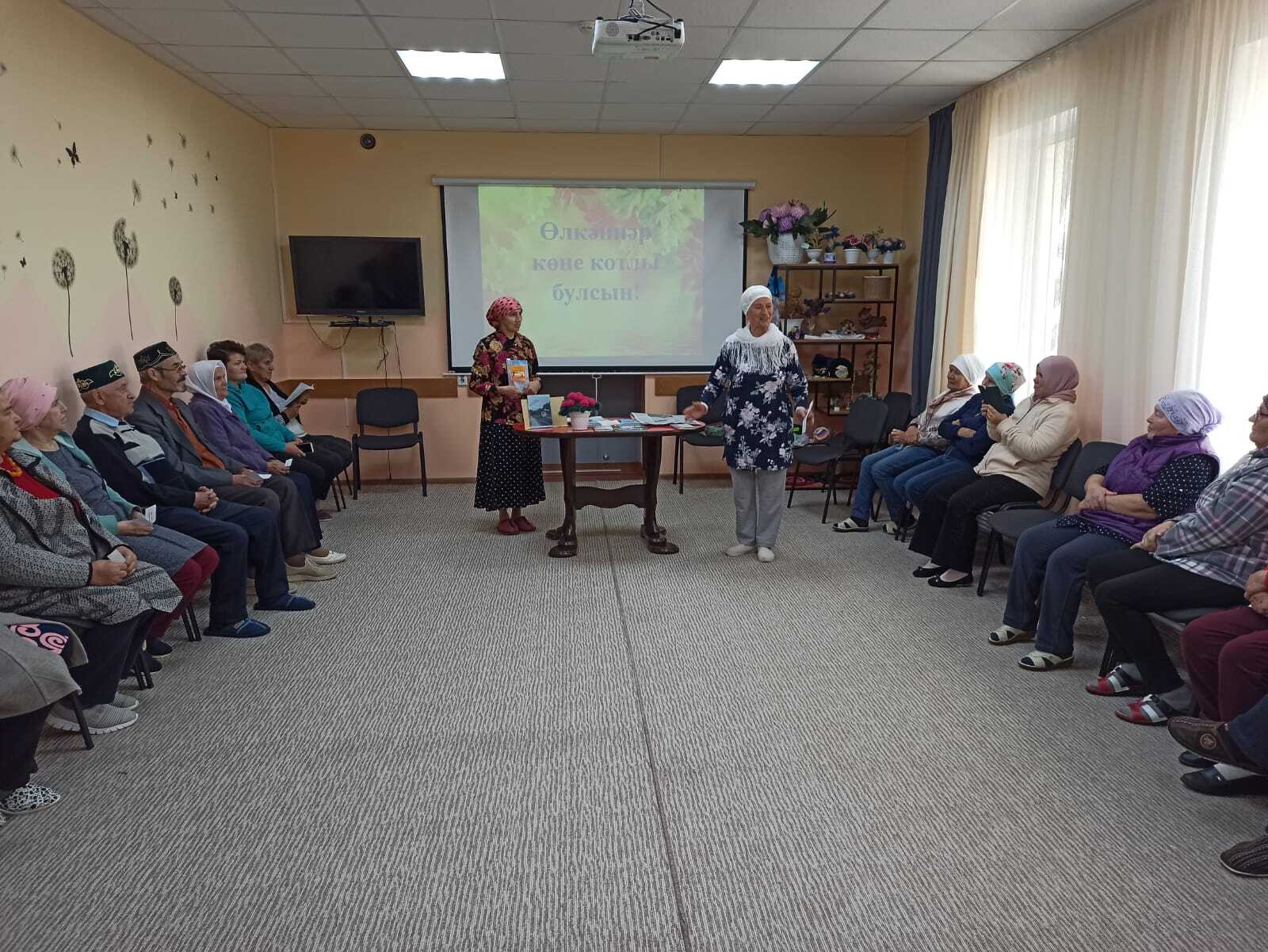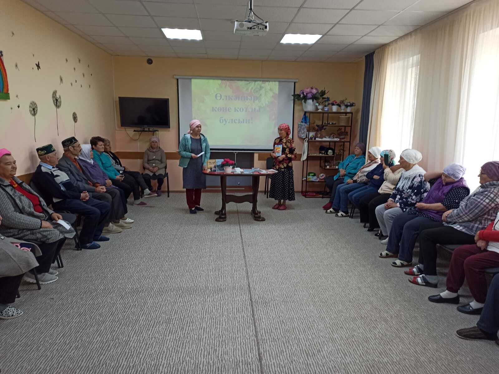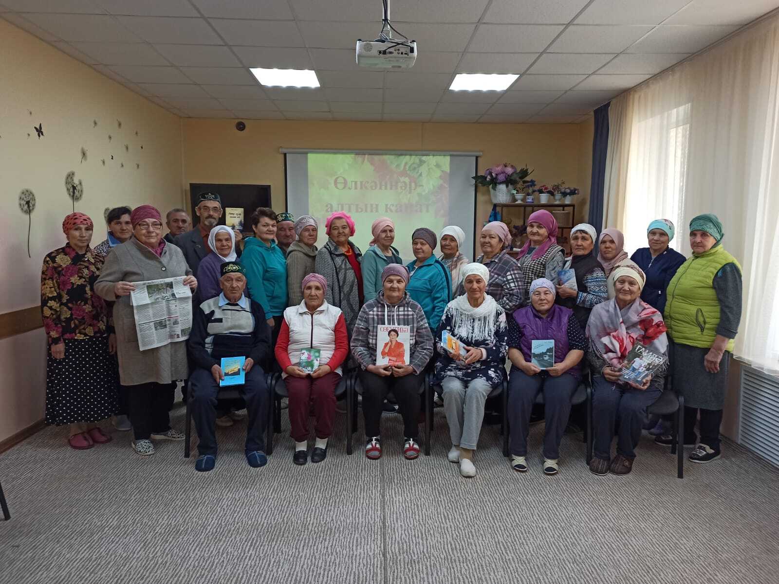 8 октябрь көнне уку залы китапханәчесе Сәлимова Т.Х. социаль ярдәм үзәге “НАЗ” да ял итүче пенсионерлар өчен Халыкара өлкәннәр көненә багышланган “Өлкәннәр-алтын канат” дип исемләнгән әдәби сәгать үткәрде. Китапханәче үзәктә ял итүчеләрне өлкәннәр көне белән котлап, матур теләкләрен җиткерде. Чара барышында ял итүчеләр якташ шагыйрьләребезнең шигырьләрен тыңладылар. Ял итүче пенсионерлар төрле кызыклы биремнәрдә бик теләп катнаштылар.