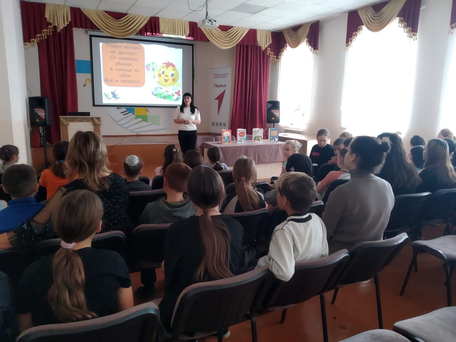 2 ноября, в дни осенних каникул, библиотекарь центральной детской библиотеки им.С.В.Михалкова Ахметова Лейсан для детей, отдыхающих в лагере при гимназии №1 им.Ч.Т.Айтматова провелаигру-викторину «Путешествие по сказкам». Ребята побывали в чудесной стране волшебства, вспоминали свои любимые сказки, с удовольствием участвовали в различных конкурсах: отгадывали загадки, отвечали на вопросы викторины о любимых сказках и волшебных предметах, угадывали сказочных героев. Мероприятие завершилось обзором книг и просмотром мультфильмов.
