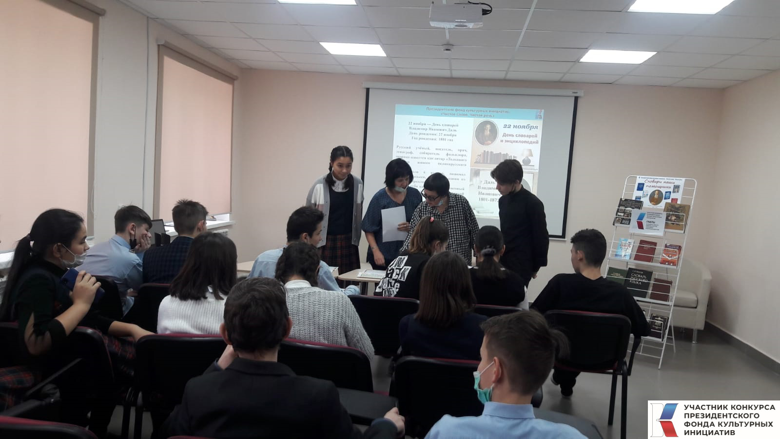 18 октябрьдә Үзәк китапханәдә "Чиста сүз. Чиста сөйләм.” проекты кысаларында, яшьләр арасында рус телен, сөйләм мәдәниятен һәм укуларын алга этәрү буенча, 4 нче мәктәпнең югары сыйныф укучылары өчен «Сүзлекләр - безнең ярдәмчеләребез» дигән Квест-уен үткәрелде.