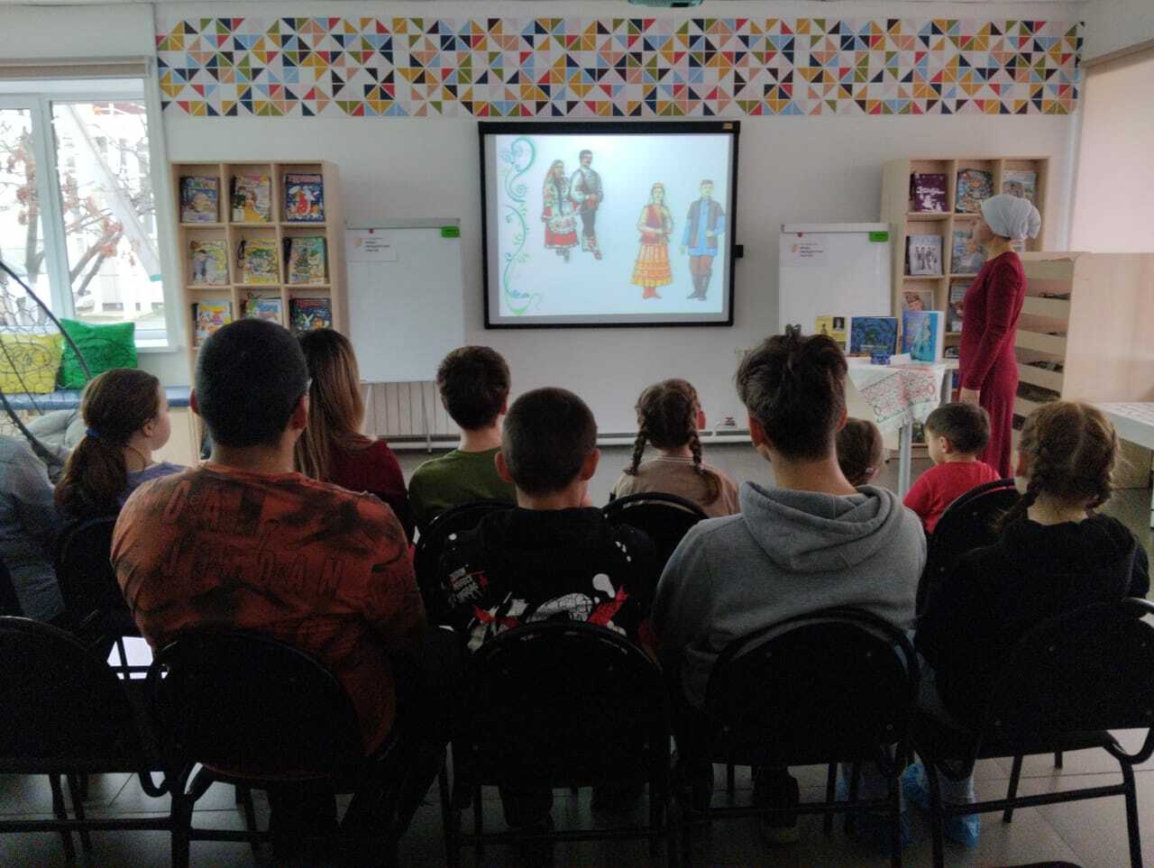 Милли мәдәниятләр һәм традицияләр елы кысаларында С.В. Михалков исемендәге үзәк балалар китапханәсендә «Шәфкатьлелек» тернәкләндерү үзәгенә йөрүче балалар өчен «Татар халкының күңел бизәкләре» дигән тәрбия сәгате үткәрелде. Китапханәче Рәмзия Гарифуллина татар халкының милли бизәкләре турында сөйләде, чигелгән сөлге, элек кызлар иңен бизәгән ефәк шәлне күрсәтте. Балаларны татар милли костюмы – камзул, читекләр, түбәтәй, калфак, хәситә, күкрәкчә белән таныштырды. Милли киемнәрдәге детальләр турында сөйләде, бизәнү әйберләре, ир-ат һәм хатын-кызларның киенү рәвешләре, татар халкының көнкүреше турында сөйләде. Балалар татар халык әкияте буенча эшләнгән “Камыр батыр” мультфильмын карадылар.