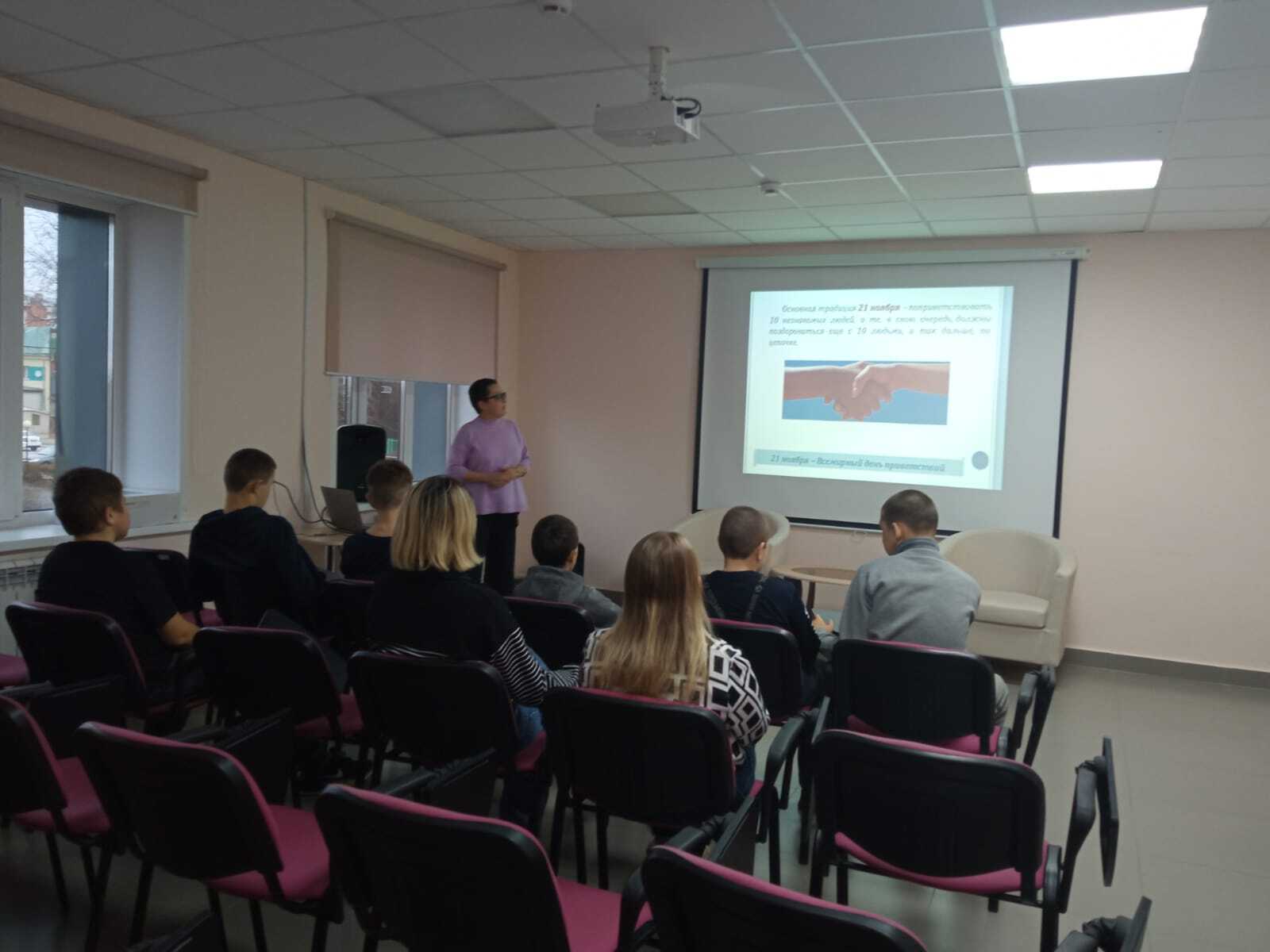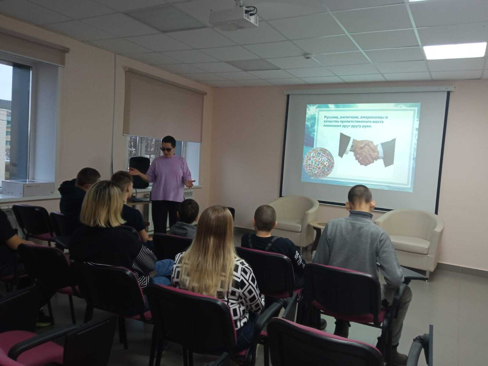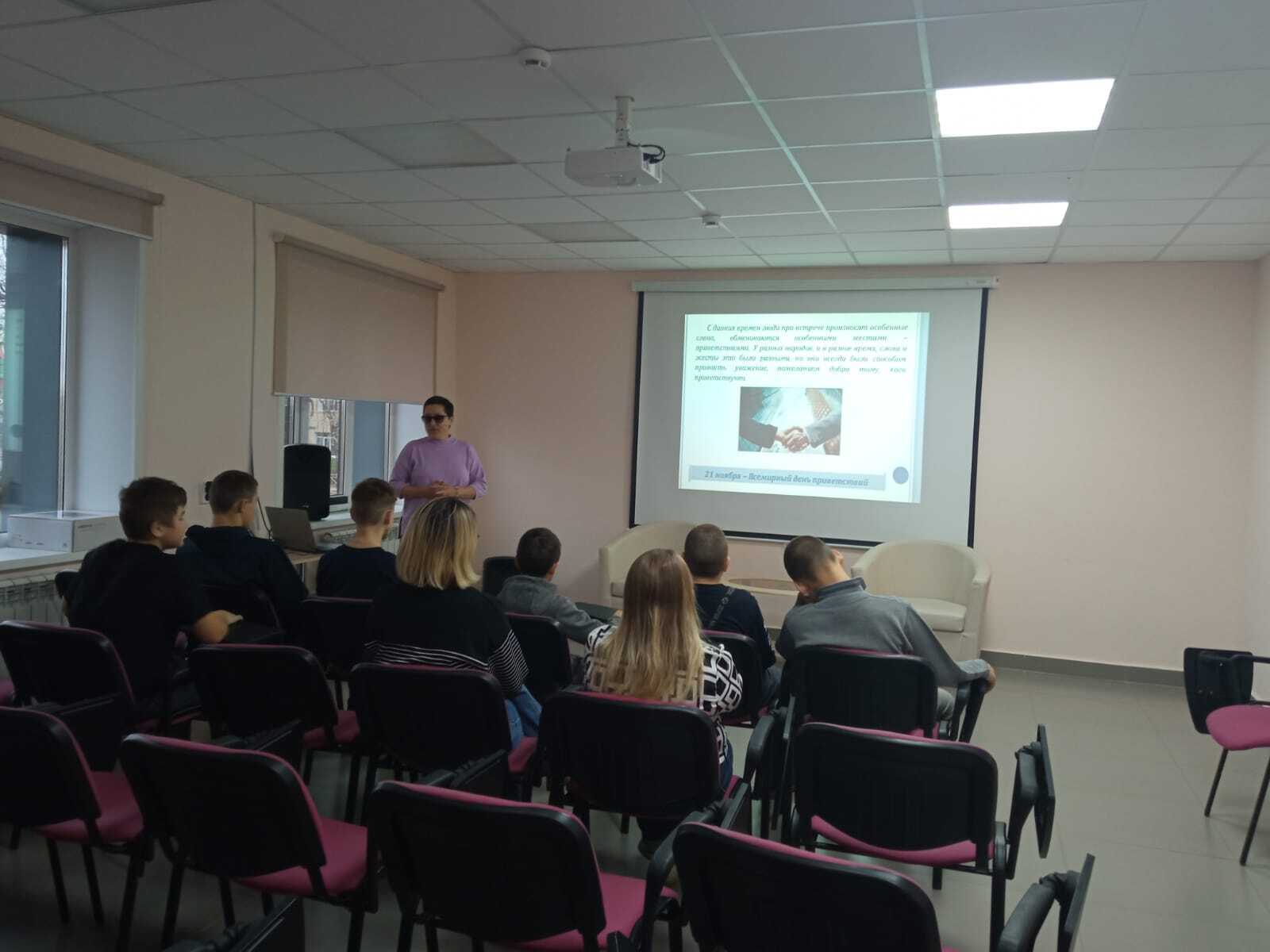 13 ноября центральную библиотеку посетили воспитанники реабилитационного «Милосердие». Библиотекарь Загидуллина Г.Ф. провела экскурсию по библиотеке, познакомила с выставками, с книжным фондом, с периодическими изданиями. Затем мероприятие продолжилось в конференц-зале, для ребят провели тематический час, посвященный дню приветствий: «Просто, здравствуйте». В ходе мероприятия ребята вспомнили слова приветствий, которыми они пользуются каждый день, а также смогли поприветствовать друг друга так, как это делают жители других стран, приняли активное участие в конкурсах и играх.