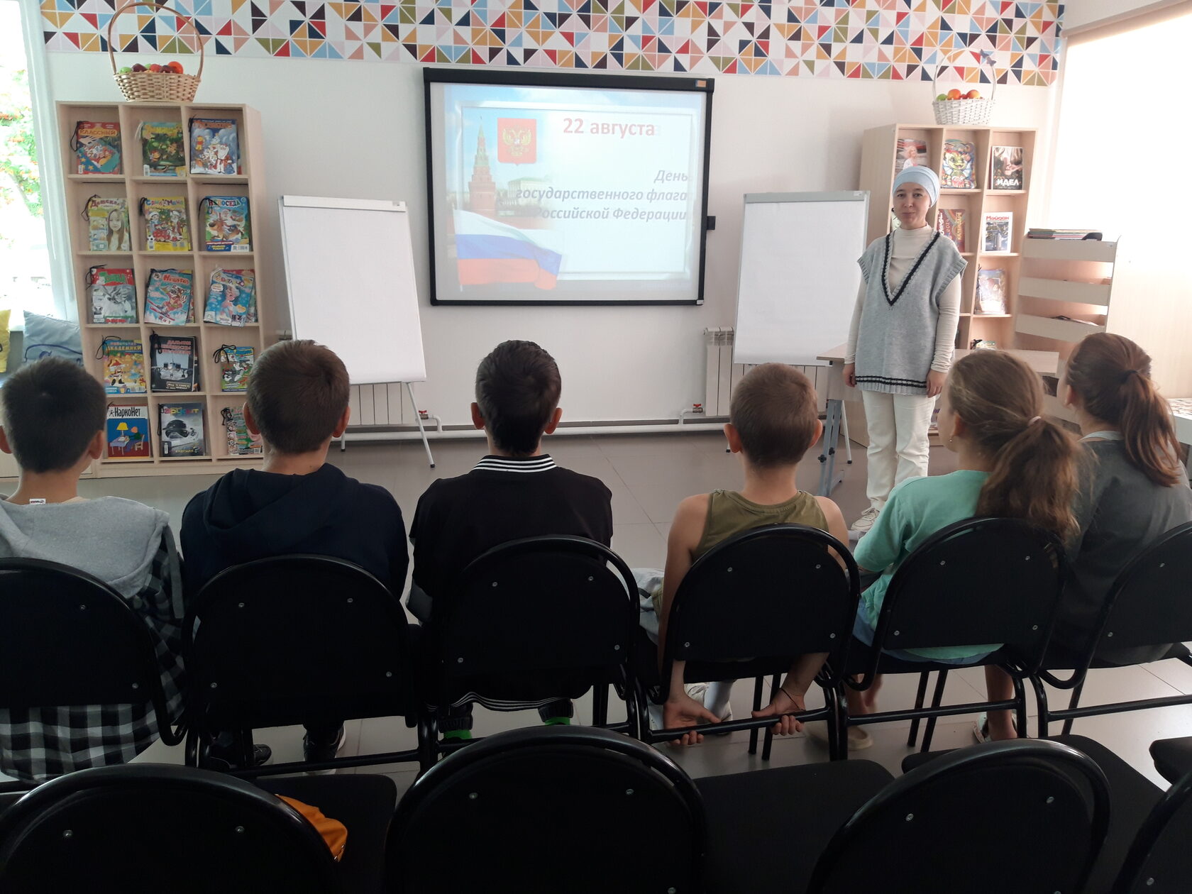 С.В.Михалков исемендәге үзәк балалар китапханәсендә кече яшьтәге балалар өчен китапханәче Рәмзия Гарифуллина Россия Дәүләт флагы тарихы буенча “Ак, зәңгәр һәм кызыл төс - дан һәм җиңү билгесе” дигән танып белү сәяхәте үткәрде. Ул балаларга Россия флагы барлыкка килү тарихы, өч төснең нәрсә аңлатуы һәм флагның нинди очракларда күтәрелүе турында сөйләде. Чарада флаг һәм Россия турында шигырьләр, Ватан турында мәкальләр яңгырады. Чара китапларга күзәтү һәм видеофильм карау белән тәмамланды.