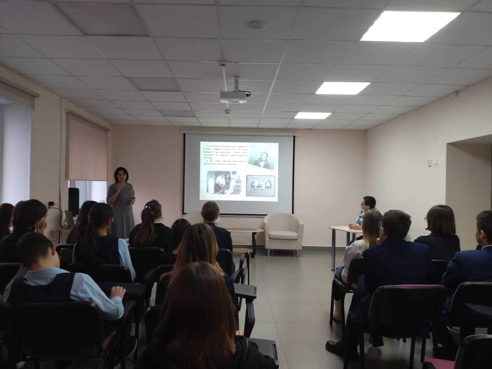 15 ноябрьдә, Пушкин картасы проекты кысаларында, хезмәт күрсәтү бүлеге китапханәчесе Пахомова В.Г., Ч.Т. Айтматов исемендәге №1 гимназияның 8 нчы сыйныф укучылары өчен, «Көмеш гасыр музасы» дигән әдәби кичә үткәрде.