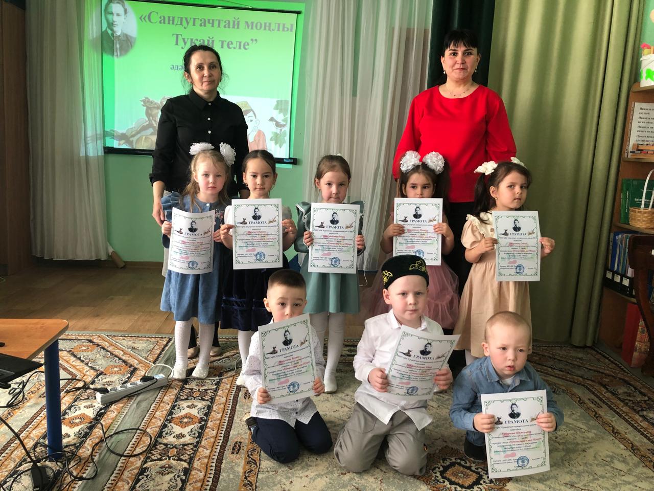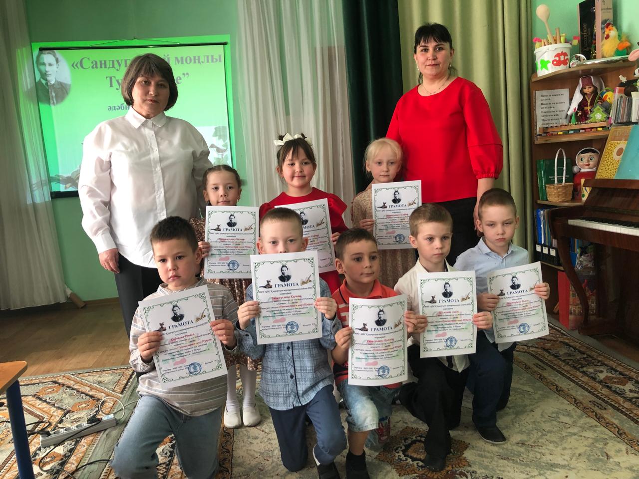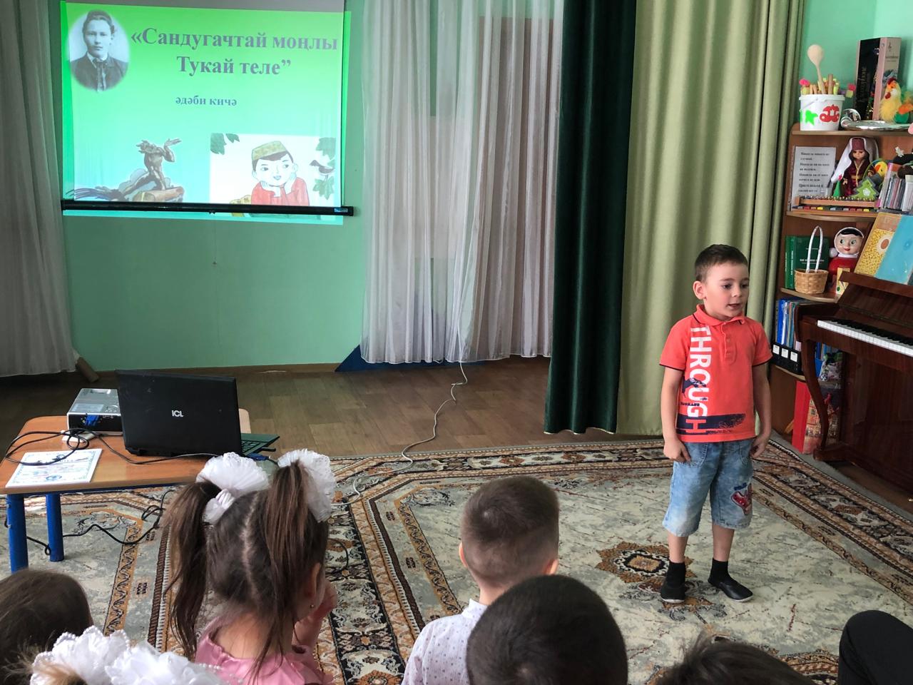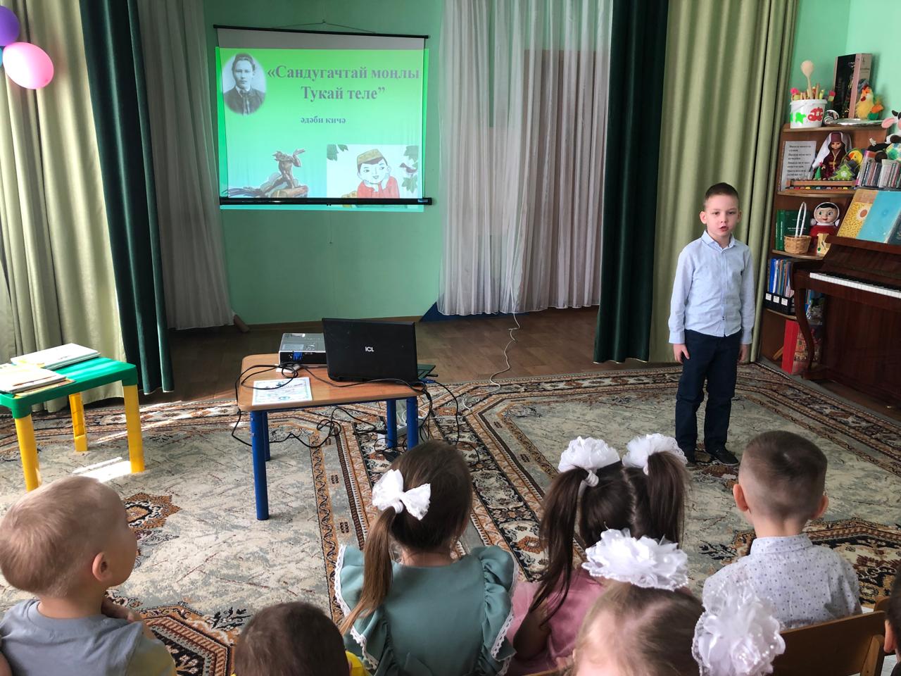 17 апреля центральная детская библиотека имени С.В.Михалкова совместно с детским садом «Шатлык» с.Большой Кукмор провели конкурс стихов «Сандугачтай моңлы Тукай теле», посвящённый 139 летию со дня рождения татарского поэта Габдуллы Тукая. В конкурсе приняли участие дети разновозрастных групп. Библиотекарь Закирова Фирдания рассказала о тяжелом детстве, о творческом пути поэта, познакомила с его книгами. Затем дети выразительно рассказали стихотворения, воспевая любовь к родному языку, родному краю, его природе. Всем участникам конкурса были вручены грамоты. Мероприятие завершилось исполнением песни “Туган тел”.