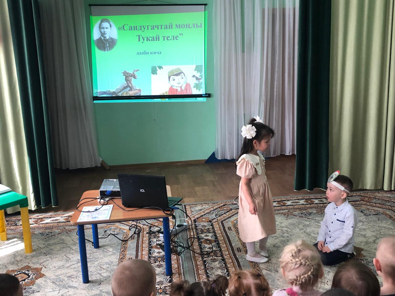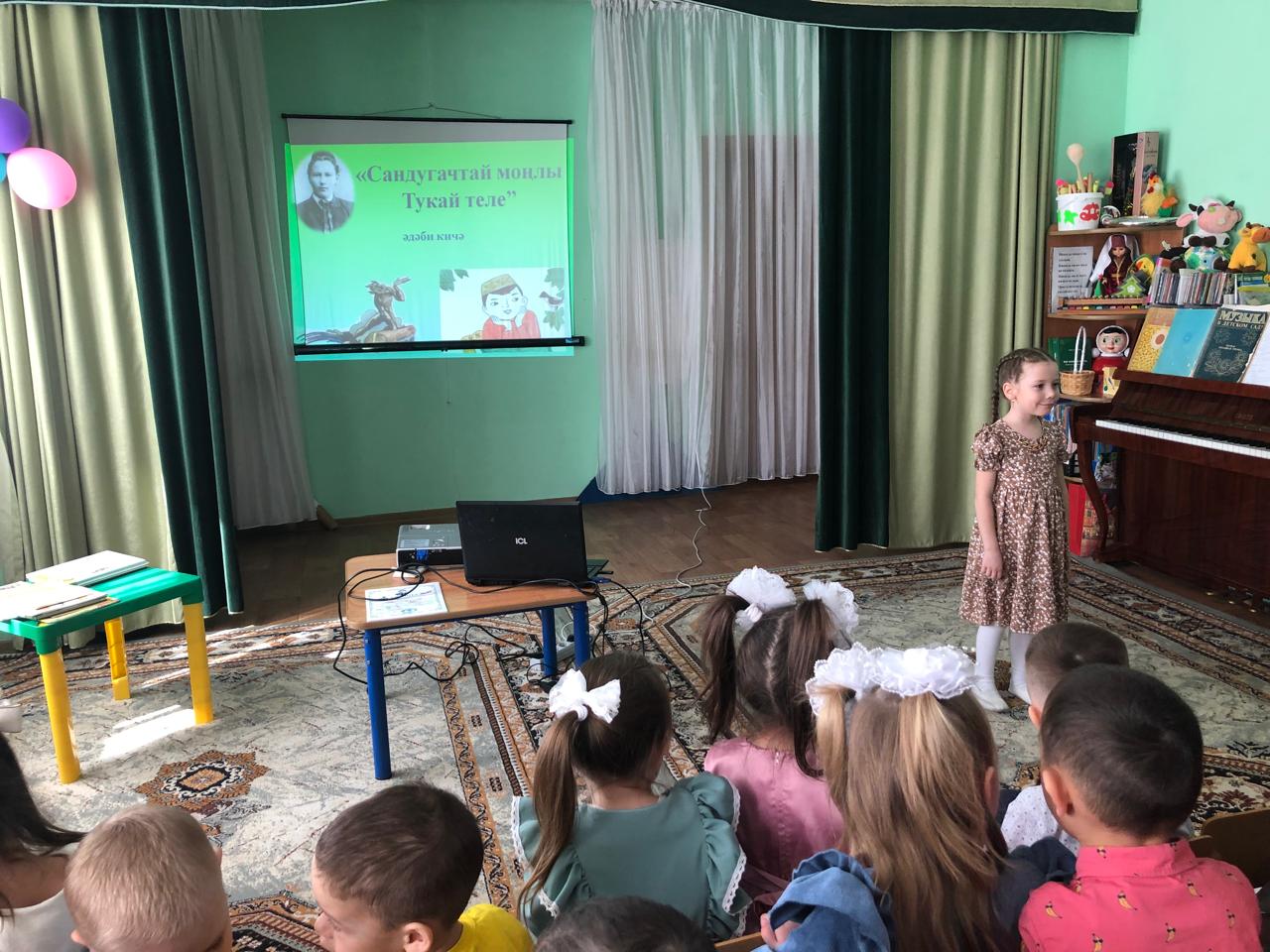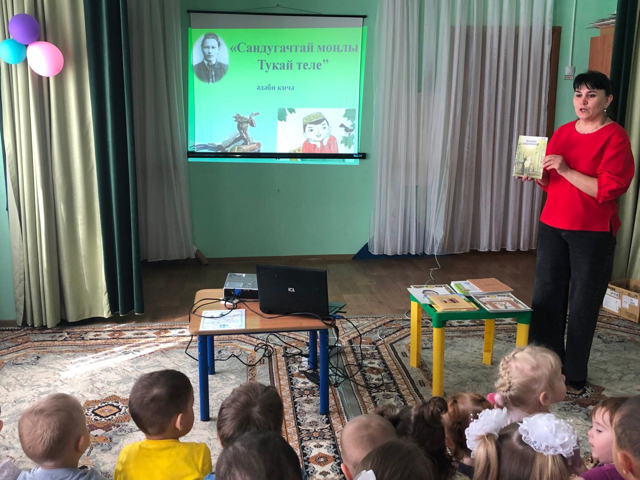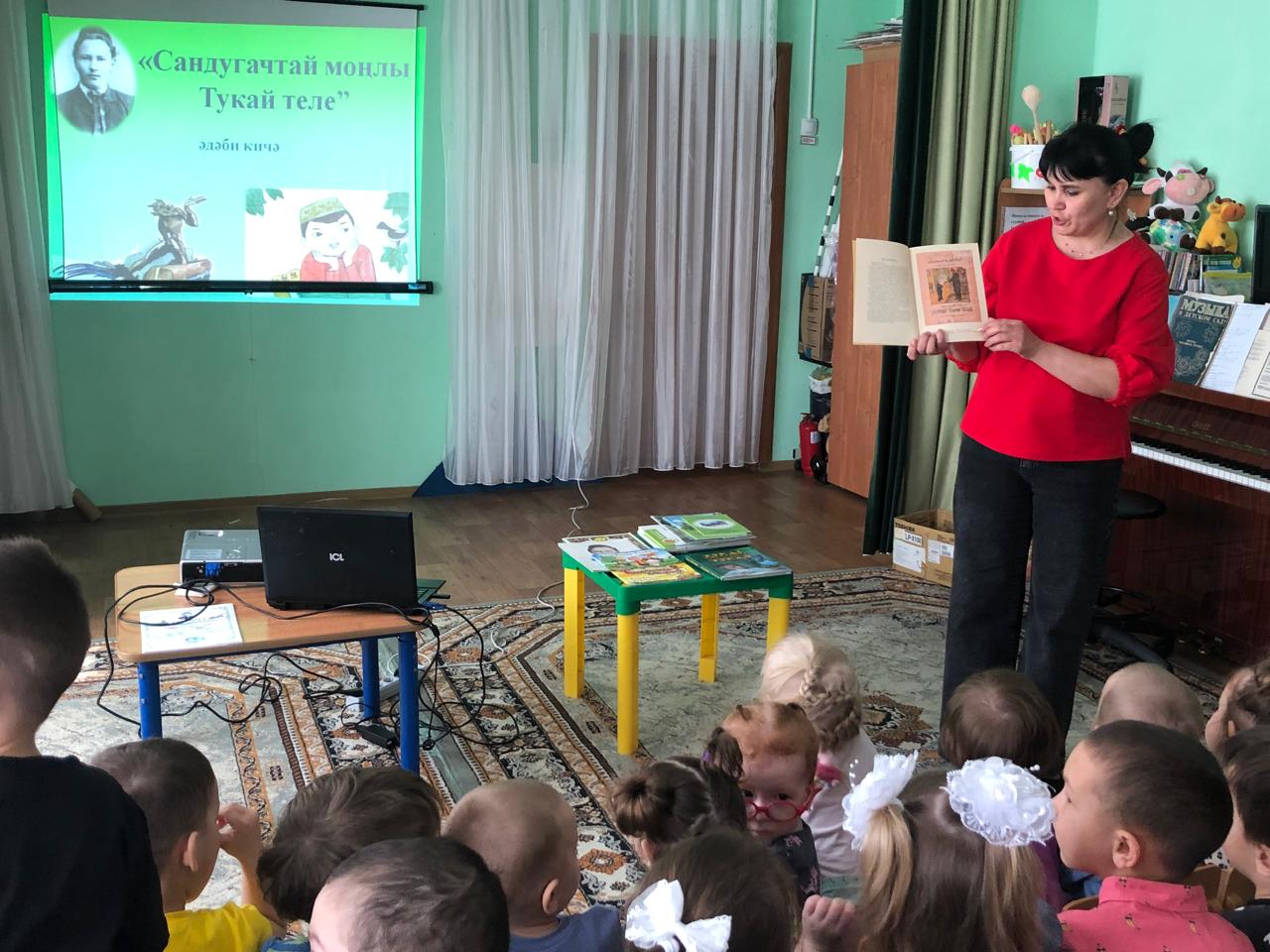 17 апреля центральная детская библиотека имени С.В.Михалкова совместно с детским садом «Шатлык» с.Большой Кукмор провели конкурс стихов «Сандугачтай моңлы Тукай теле», посвящённый 139 летию со дня рождения татарского поэта Габдуллы Тукая. В конкурсе приняли участие дети разновозрастных групп. Библиотекарь Закирова Фирдания рассказала о тяжелом детстве, о творческом пути поэта, познакомила с его книгами. Затем дети выразительно рассказали стихотворения, воспевая любовь к родному языку, родному краю, его природе. Всем участникам конкурса были вручены грамоты. Мероприятие завершилось исполнением песни “Туган тел”.