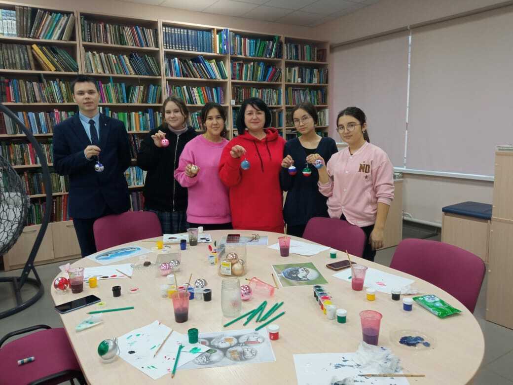22 декабрьдә «Пушкин картасы» проекты кысаларында, Үзәк китапханәдә укучылар өчен чыршы уенчыкларын буяу буенча «Чыршы шарлары рәсеме» дигән мастер-класс үткәрелде. Чара башында китапханәче чыршы уенчыклары барлыкка килү тарихын, классик һәм заманча буяу техникасы турында сөйләде, аннары балаларга үзләренә ошаган стильдә уенчык ясарга тәкъдим ителде.
