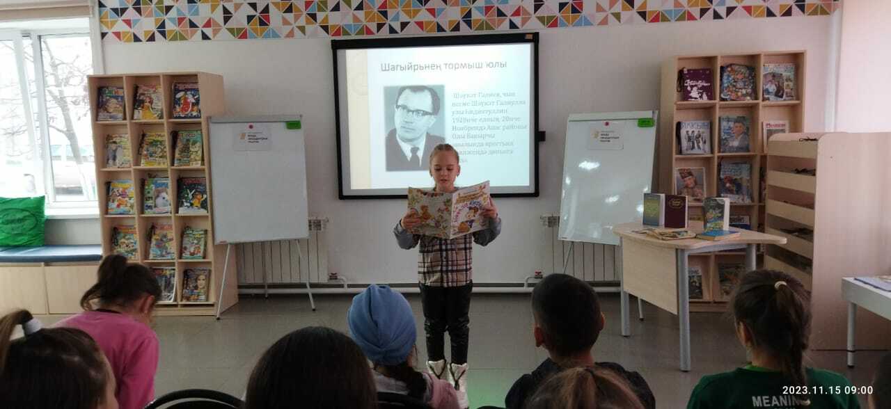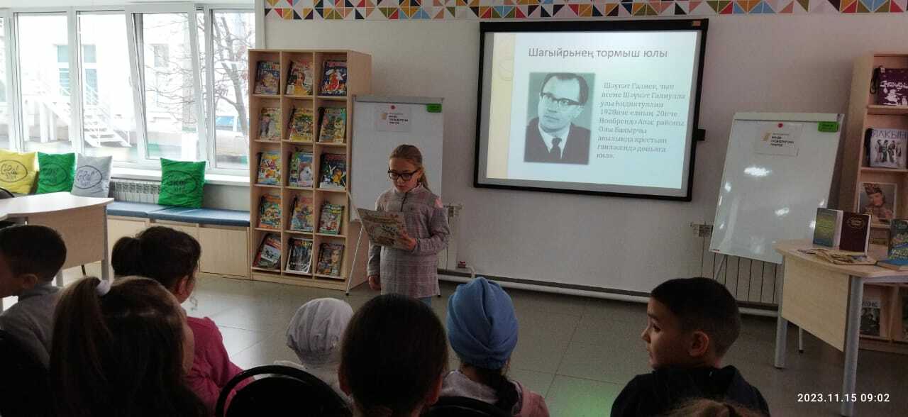 15 ноябрьдә С.В. Михалков исемендәге үзәк балалар китапханәсендә Сәрдекбаш урта мәктәбенең башлангыч сыйныф укучылары өчен Гарифуллина Рәмзия татар балалар язучысы Ш. Галиевның тууына 95 ел тулуга багышланган «Шаян шигырьләр остасы» дигән әдәби сәгать үткәрде. Ул балаларны язучының тормышы һәм иҗаты белән таныштырды. Балалар гыйбрәтле һәм кызыклы шигырьләр укыдылар, табышмаклар чиштеләр. Чара китапларга күзәтү, Ш. Галиев шигырьләре буенча видеофильм карау белән тәмамланды.