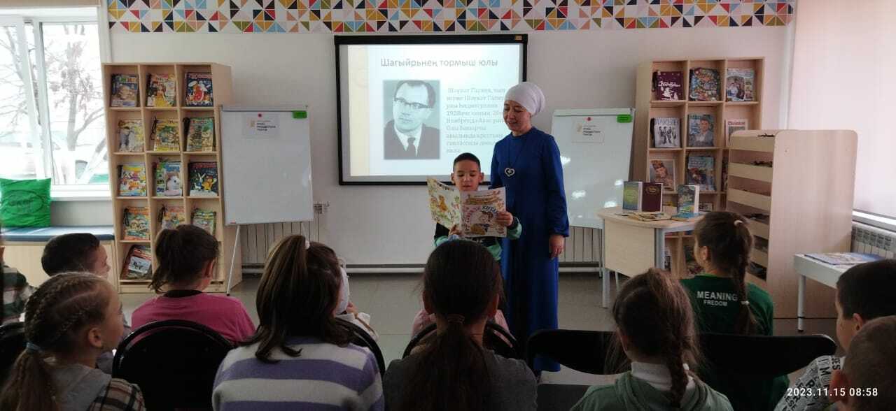15 ноября библиотекарь центральной детской библиотеки имени С.В.Михалкова Гарифуллина Рамзия для учащихся начальных классов Сардекбашской средней школы провела литературный час «Мастер шуточных стихов», посвященный 95 летию со дня рождения татарского детского писателя Ш.Галиева. Она познакомила ребят с жизнью и творчеством писателя. Ребята с удовольствием послушали и прочитали поучительные и интересные стихотворения, отгадали загадки. Мероприятие завершилось обзором книг, просмотром видеофильма по стихотворениям Ш.Галиева.