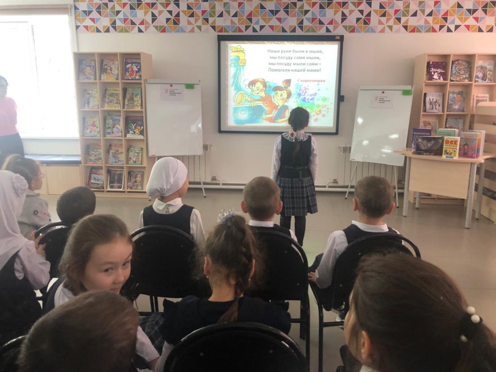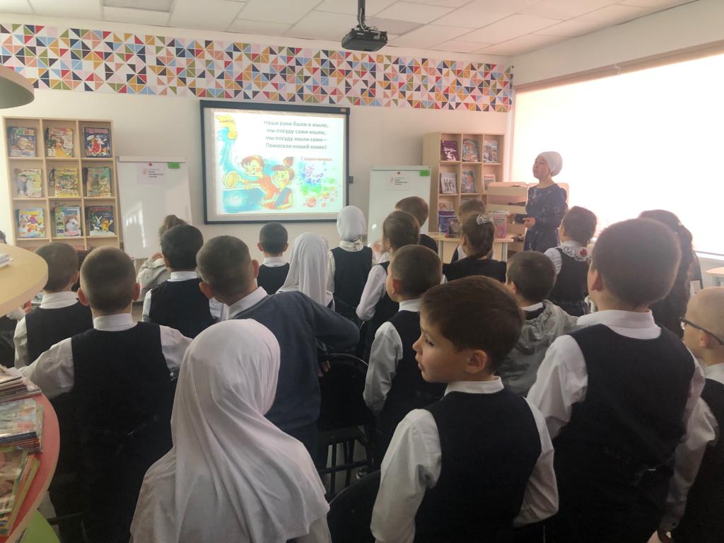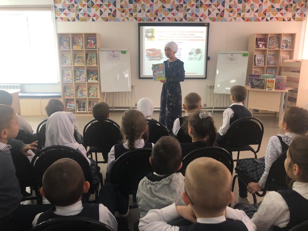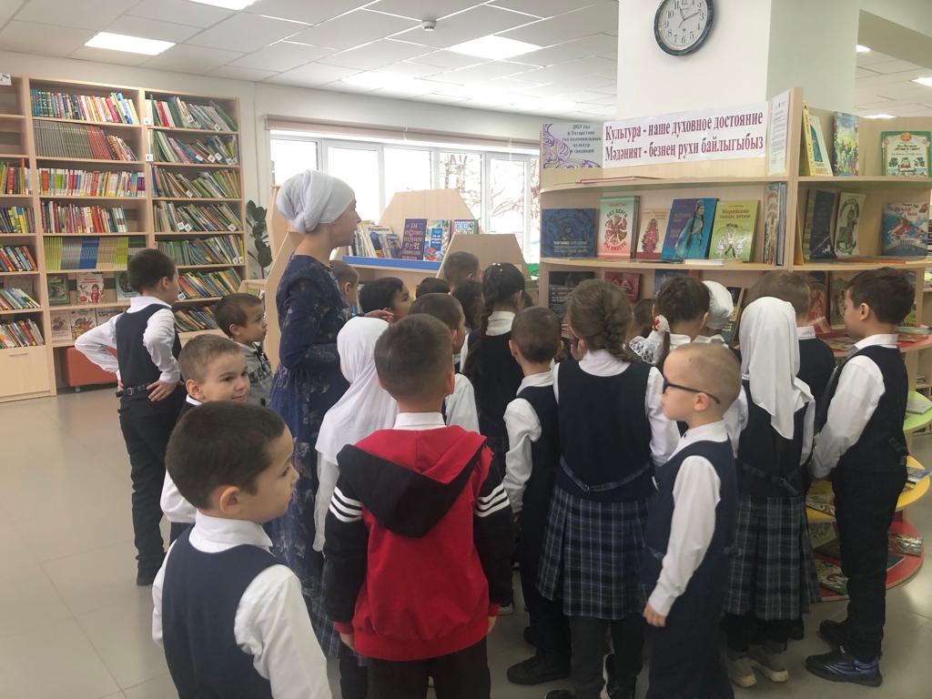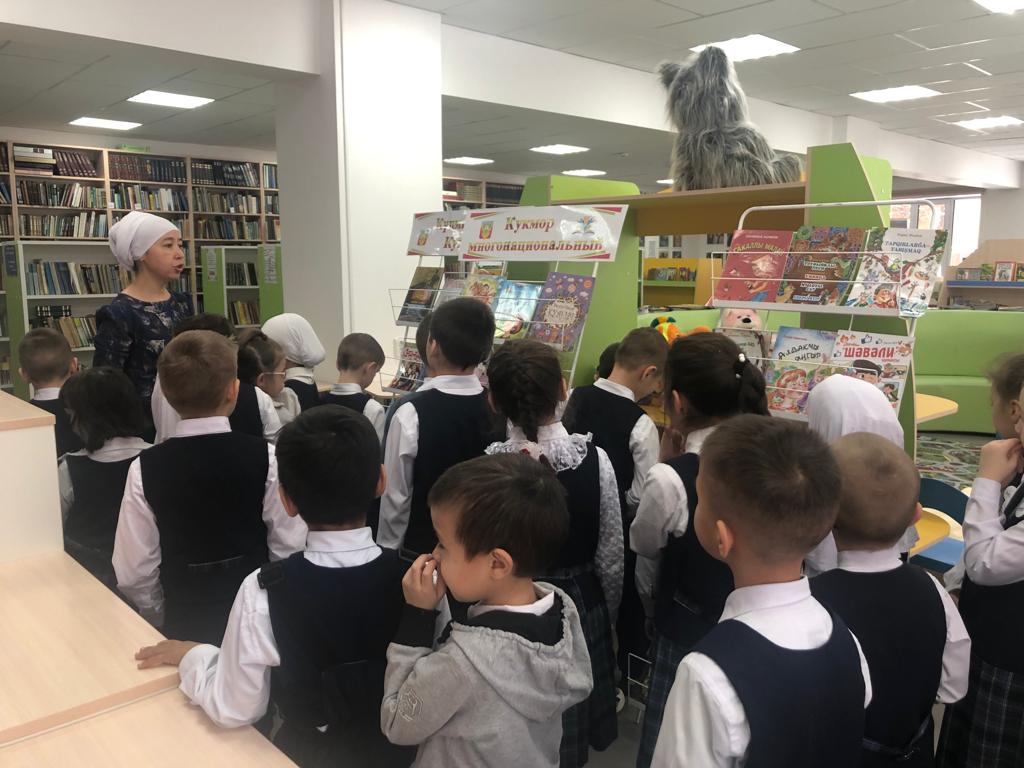 21 ноябрьдә - С.В. Михалков исемендәге үзәк балалар китапханәсендә – Ч.Т.Айтматов исемендәге гимназиянең 1б сыйныф укучылары өчен Рәмзия Гарифуллина “Китапханәдә кунакта” дигән экскурсия-танышу үткәрде. Балалар китапханәнең төрле зоналары, китап күргәзмәләре, китапханә кагыйдәләре белән танышты, табышмаклар чиште, викторина сорауларына җавап бирде. Чара абонементта тәмамланды, балалар зур кызыксыну белән китаплар сайлады, уку өчен китаплар алды.