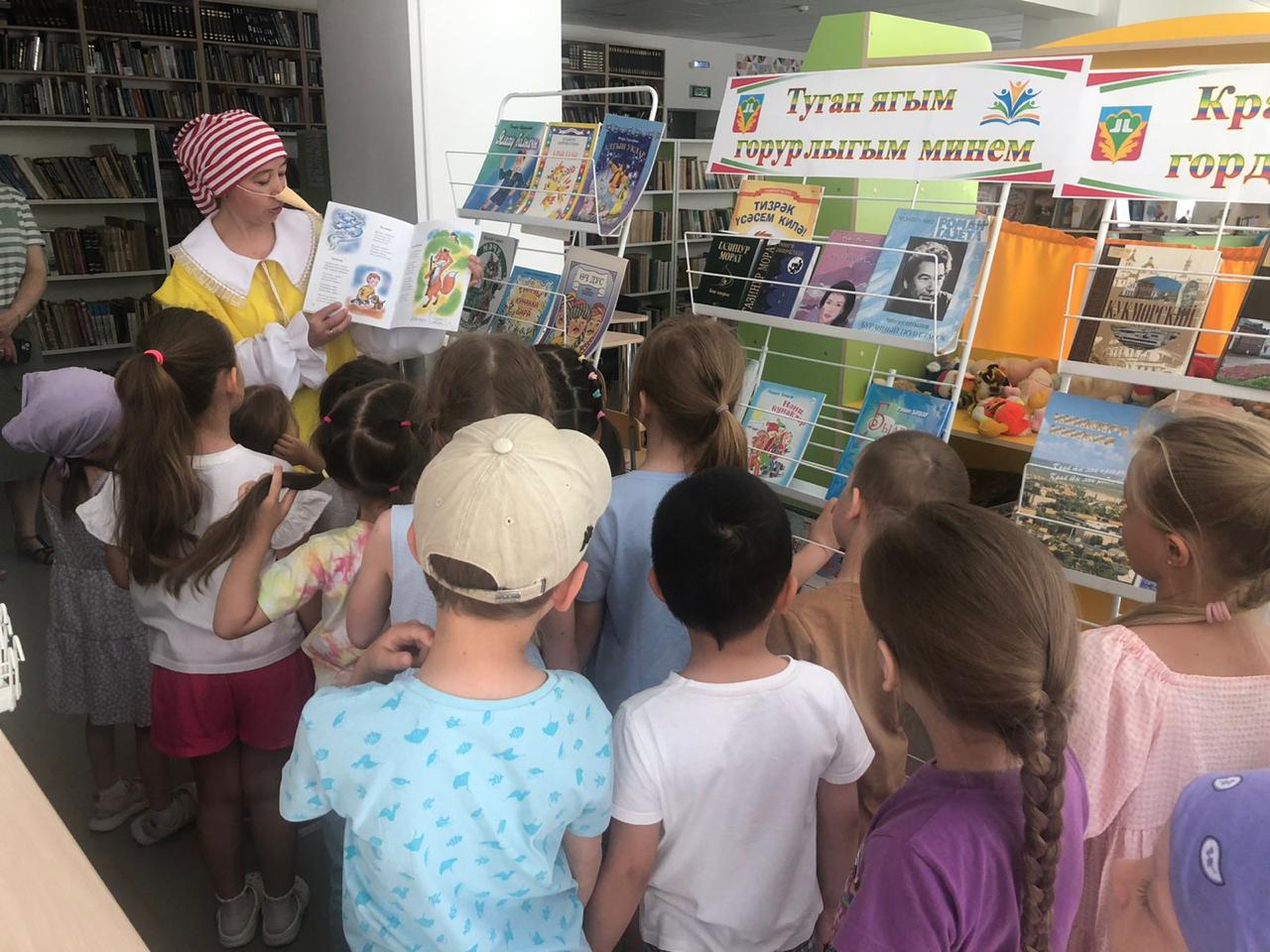 4 июньдә С.В. Михалков исемендәге үзәк балалар китапханәсендә «ТУТАКРРУТА» дип атала торган инглиз теле студиясенә йөрүче балалар кунакка килде. Китапханәче Гарифуллина Рәмзия балалар өчен китапханә буйлап экскурсия һәм «Әкияттә кунакта» дигән конкурс-уен программасы үткәрде. Балалар яраткан китаплары битләре буйлап сәяхәт итте һәм яраткан геройларында кунакта булды, төрле конкурсларда һәм уеннарда актив катнашты. Балалар тәкъдим ителгән барлык биремнәрне уңышлы үтәде. Чара китапларны карау һәм мультфильмнар карау белән тәмамланды.