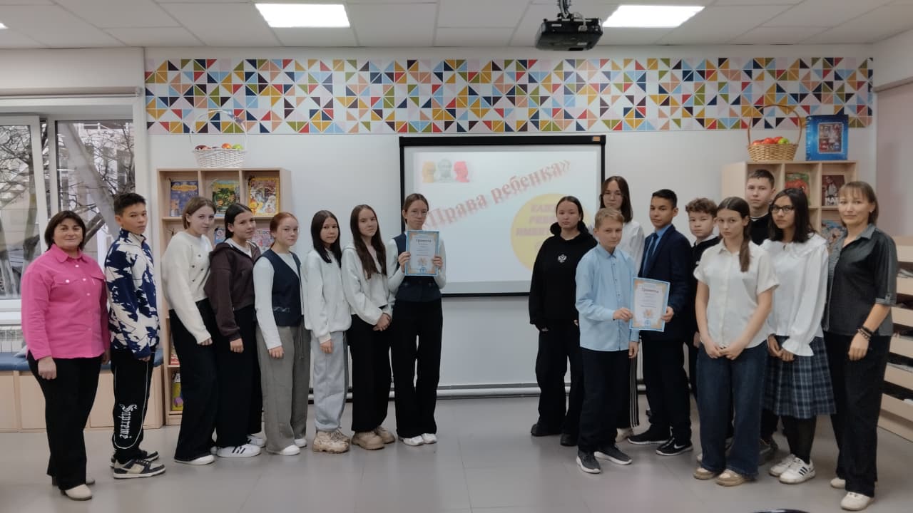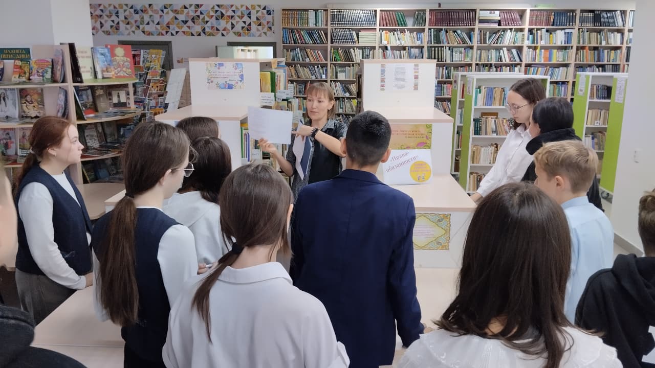 19 ноября в рамках проекта «Пушкинская карта» библиотекарь центральной детской библиотеки имени С.В.Михалкова Асанова Алевтина для учащихся 8а и 8б классов школы №3 провела «Правовой квест», посвященный Всемирному дню прав ребенка. В ходе игры ребята закрепили знания про свои права и обязанности, прошли по станциям «Права ребёнка», «Ответственность», «Словесный переполох», «Права-обязанности», «Вопрос-ответ», «Сказочный юрист», научились отличать права от обязанностей. Мероприятие завершилось обзором книг и просмотром видеофильма.