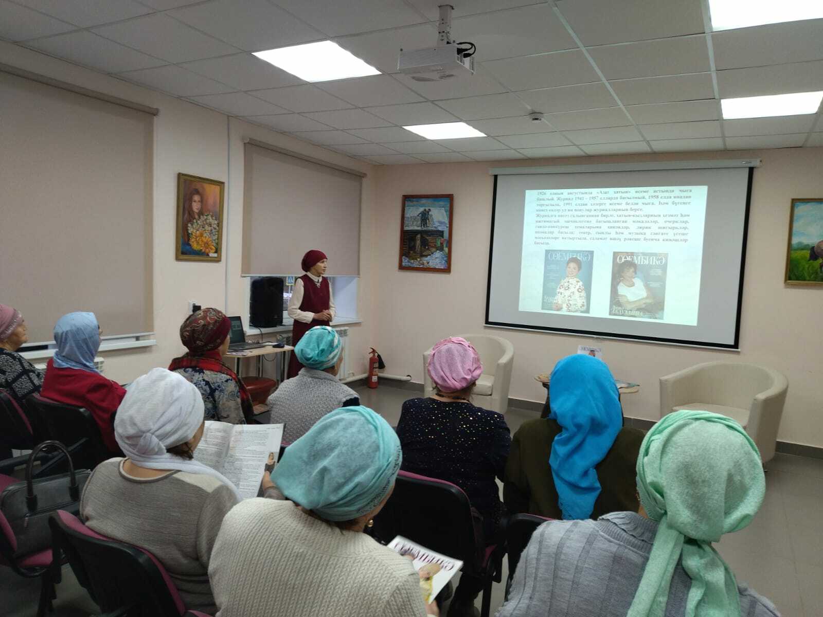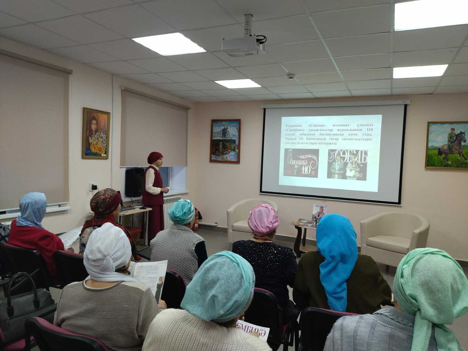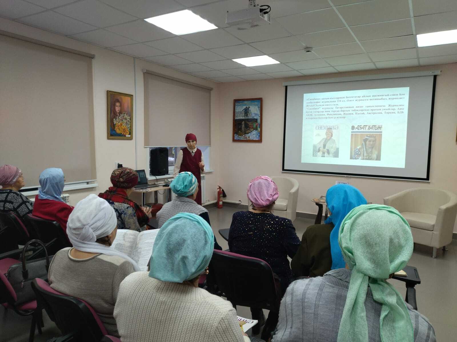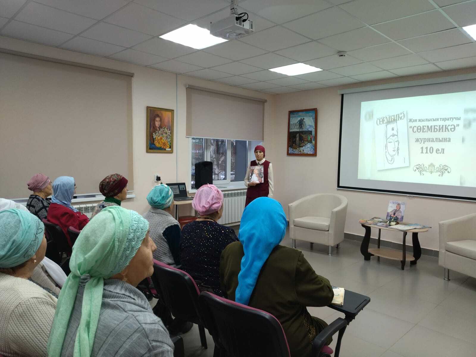 21 декабря библиотекарь читального зала Салимова Т. Х. для членов клуба “Сююмбике” провела литературный час “110 лет журналу”Сююмбике“, посвященный юбилею журнала ”Сююмбике”. Библиотекарь ознакомила с историей журнала. В ходе мероприятия гости разделились на группы “Сююмбике”, “Азат хатын” и выполнили интересные задания. Свои стихи прочитала местная поэтесса, автор книги ”Осенний паводок” Розалия Яппарова. В исполнении работницы Дома культуры Альфинур Юнусовой прозвучали мелодичные песни. Это прекрасное праздничное мероприятие продолжилось за чаепитием.