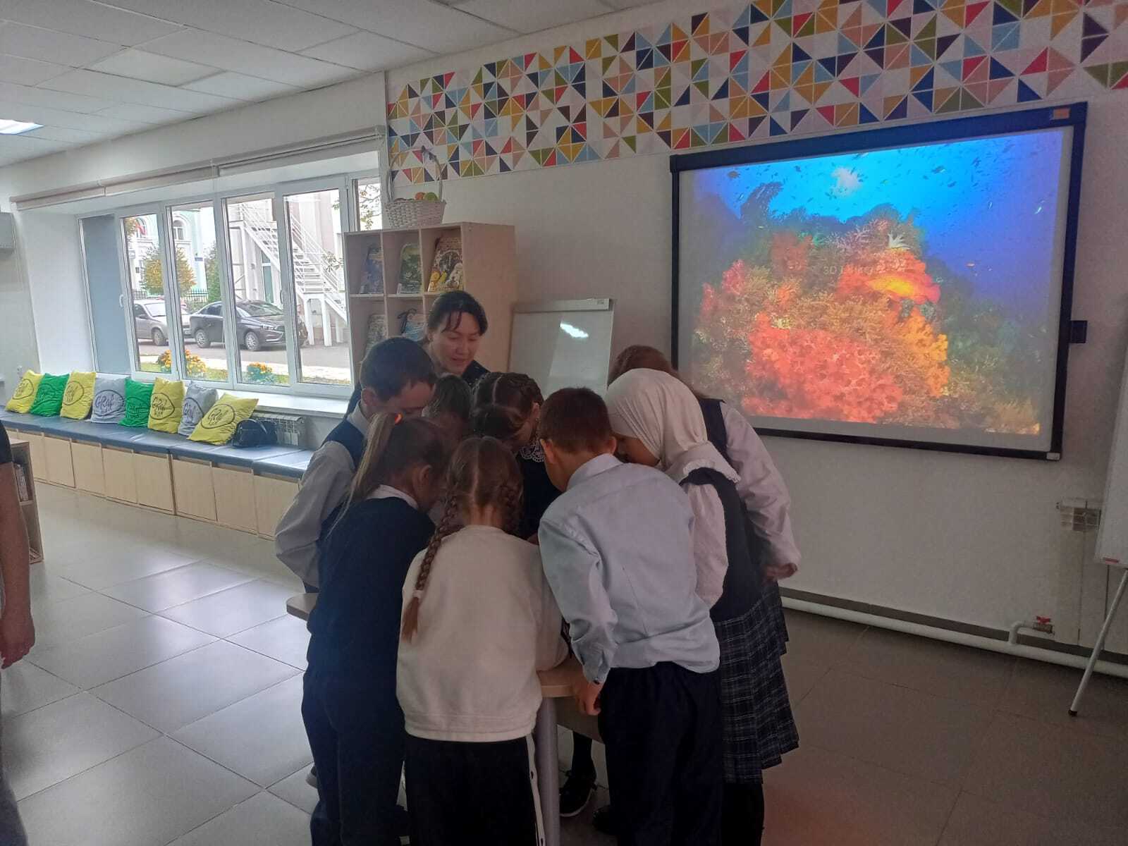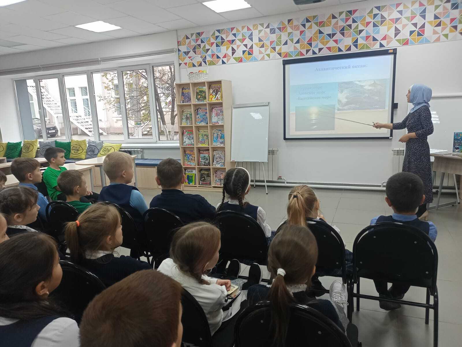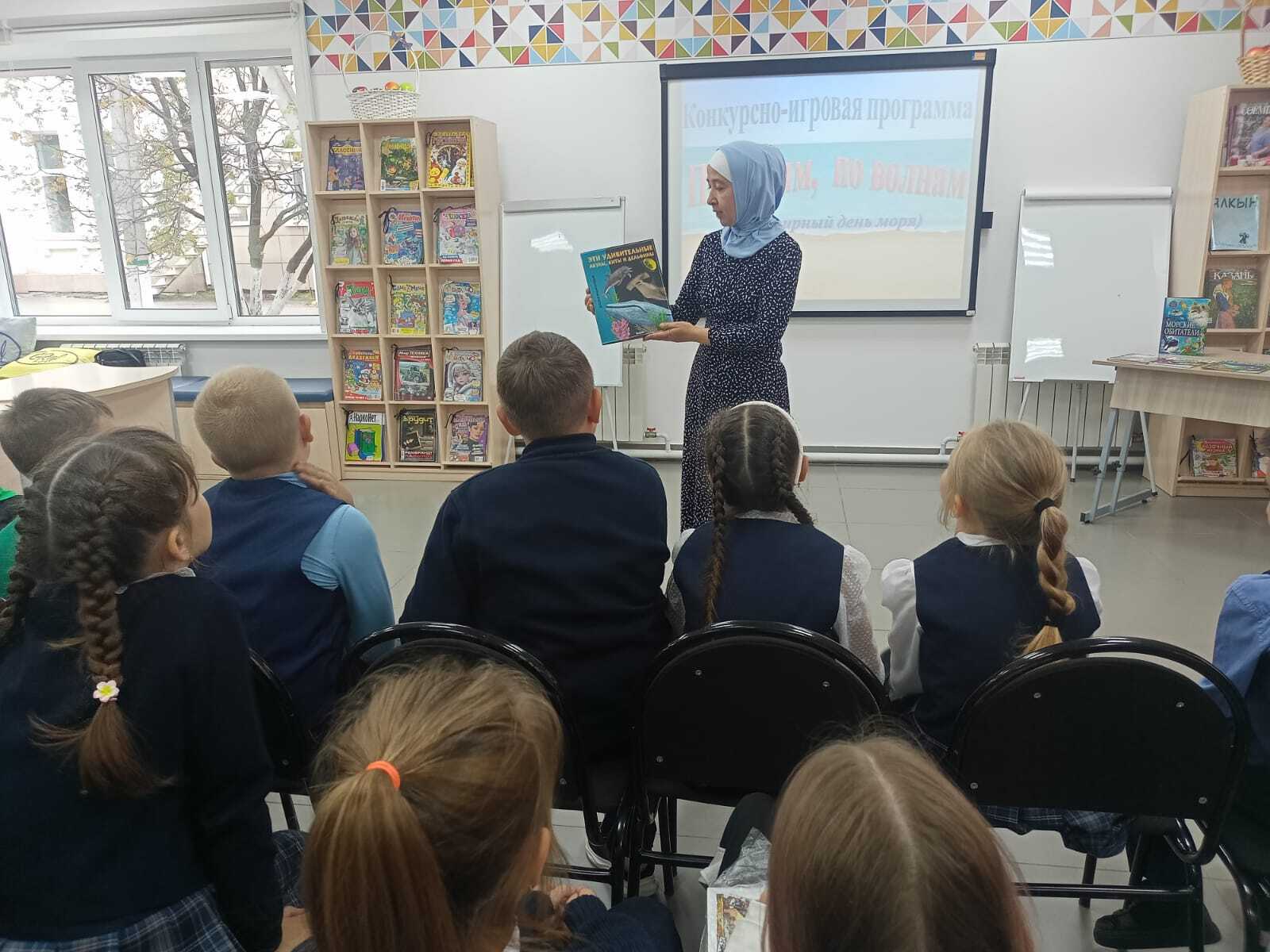 24 сентябрь көнне С.В. Михалков исемендәге үзәк балалар китапханәсендә А.М.Булатов исемендәге күппрофильле лицейның 3б сыйныф укучылары өчен китапханәче Рамзия Гарифуллина Бөтендөнья диңгез көненә багышланган «Диңгезләр һәм дулкыннар буйлап» дип исемләнгән танып-белү сәгате үткәрде. Балалар диңгезләр һәм океаннар, анда яшәүчеләр һәм серләр турында күп кызыклы фактлар белделәр, диңгез табышмакларын чиштеләр, викторина сорауларына җавап бирделәр, бәйгеләрдә һәм уеннарда катнаштылар. Чара китапларга күзәтү һәм «Ун иң куркыныч диңгездә яшәүчеләр» видеофильмын карау белән тәмамланды.