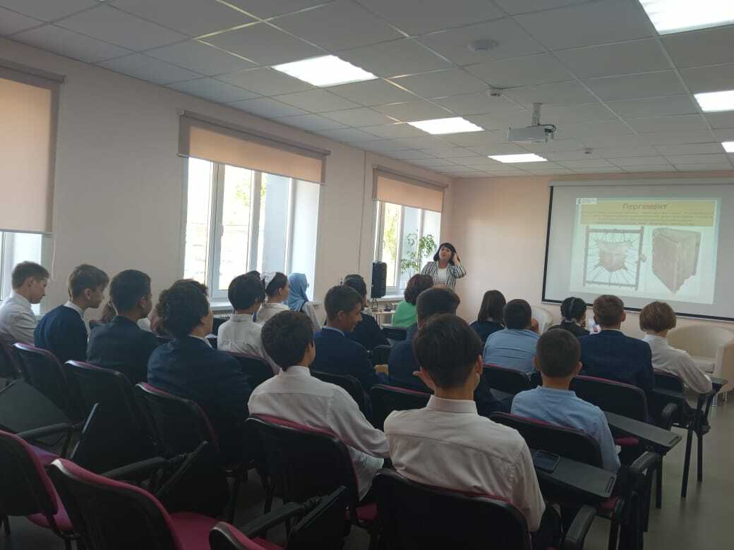 20 сентябрьдә “Китаплар һәр чорга” исемле яшүсмерләр арасында укуны популярлаштыру проекты кысаларында, 4 нче мәктәпнең өлкән сыйныф укучылары өчен үзәк китапханәдә “Китаплар бастыру тарихы: папирустан алып электрон китапка кадәр” дигән китапханә дәресе үткәрелде. Китапханәче компьютер презентациясе ярдәмендә китап һәм китап басу тарихы турында сөйләде, китапханә фондыннан сирәк китаплар белән таныштырды.
