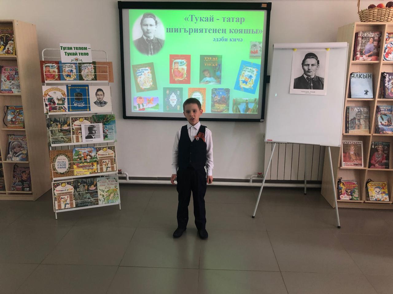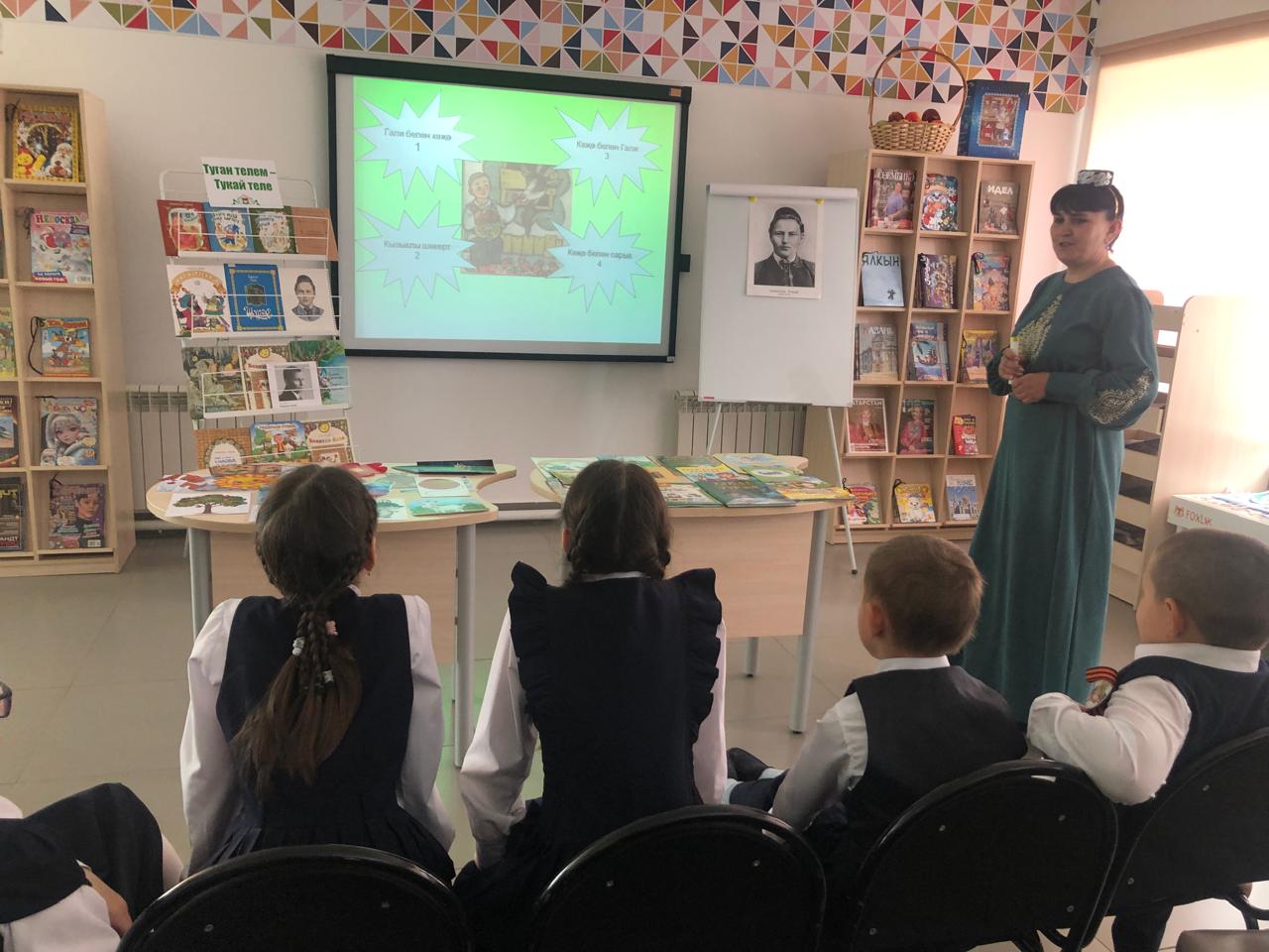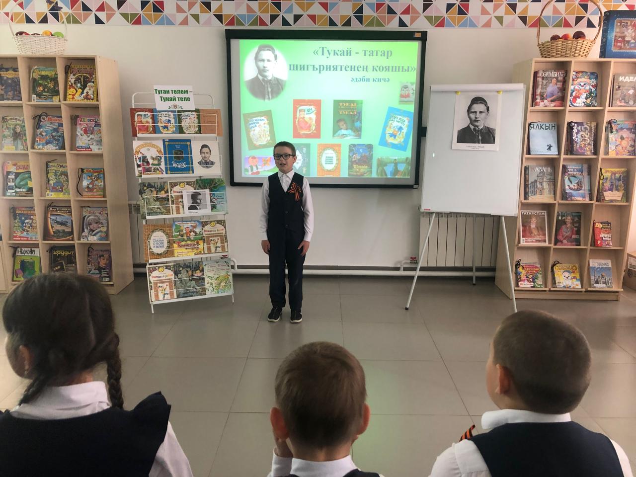 25 апрельдә С.В. Михалков исемендәге үзәк балалар китапханәсендә Камышлы авылының башлангыч сыйныф укучылары өчен китапханәче Фирдания Закирова экускурсия һәм татар шагыйре Габдулла Тукайның тууына 139 ел тулуга багышланган «Тукай – татар шигъриятенең кояшы» дигән әдәби сәгате үткәрде. Ул балаларга шагыйрьнең авыр балачагы, иҗади юлы турында сөйләде, аның китаплары белән таныштырды. Балалар шагыйрьнең иҗаты турындагы викторина сорауларына җаваплар бирделәр, туган телгә, туган якка, аның табигатенә мәхәббәтне данлаучы шигырьләр укыдылар, Г.Тукай сүзләренә язылган җырлар башкарды. Чарада катнашучы балаларга грамоталар тапшырылды. Чара “Туган тел” җырын башкару белән тәмамланды.