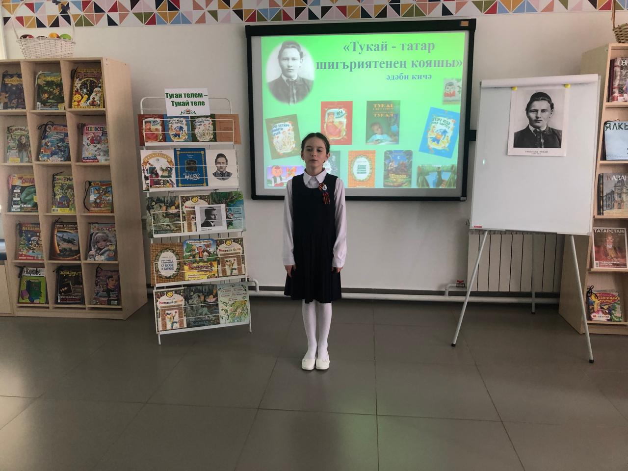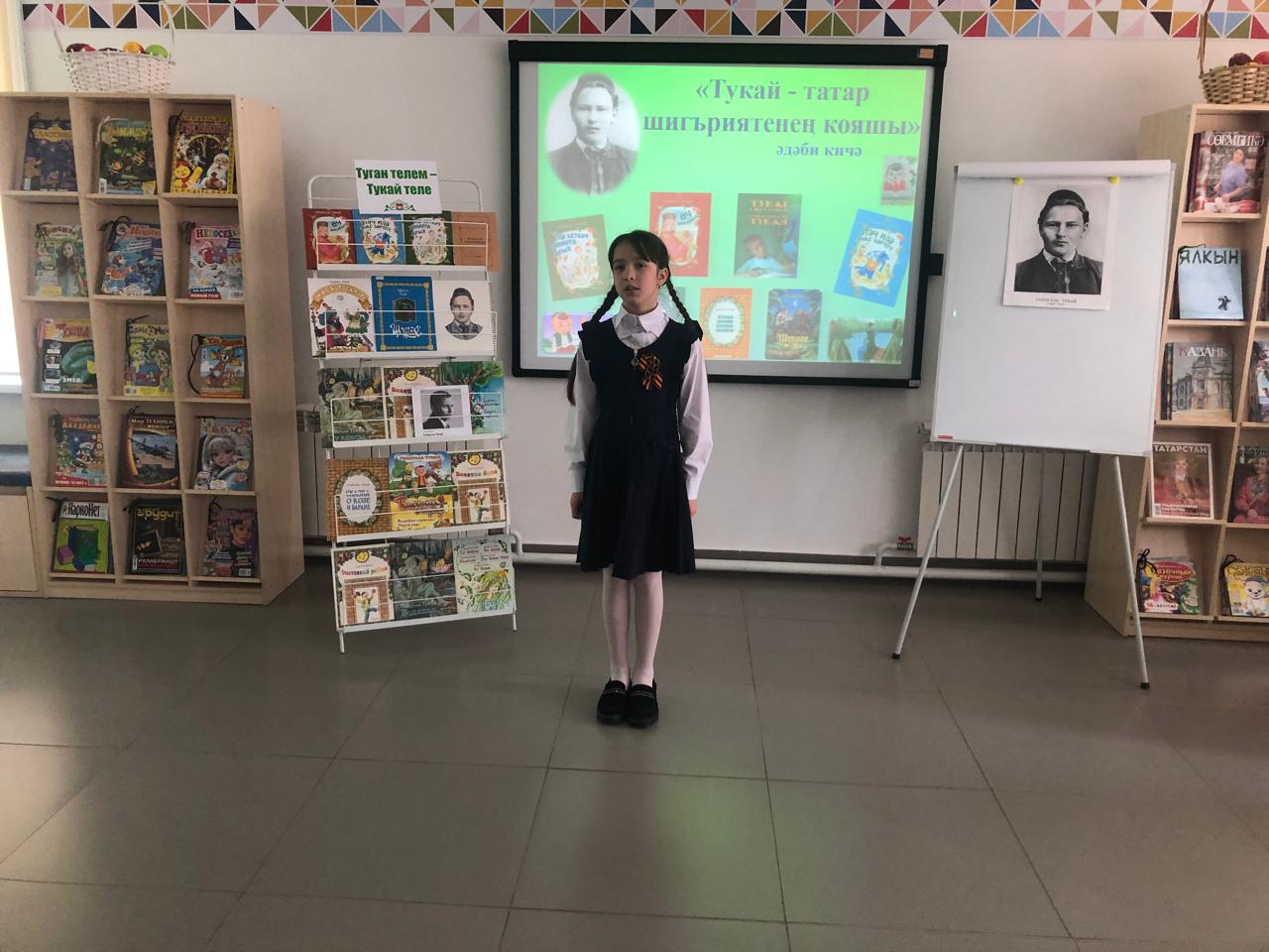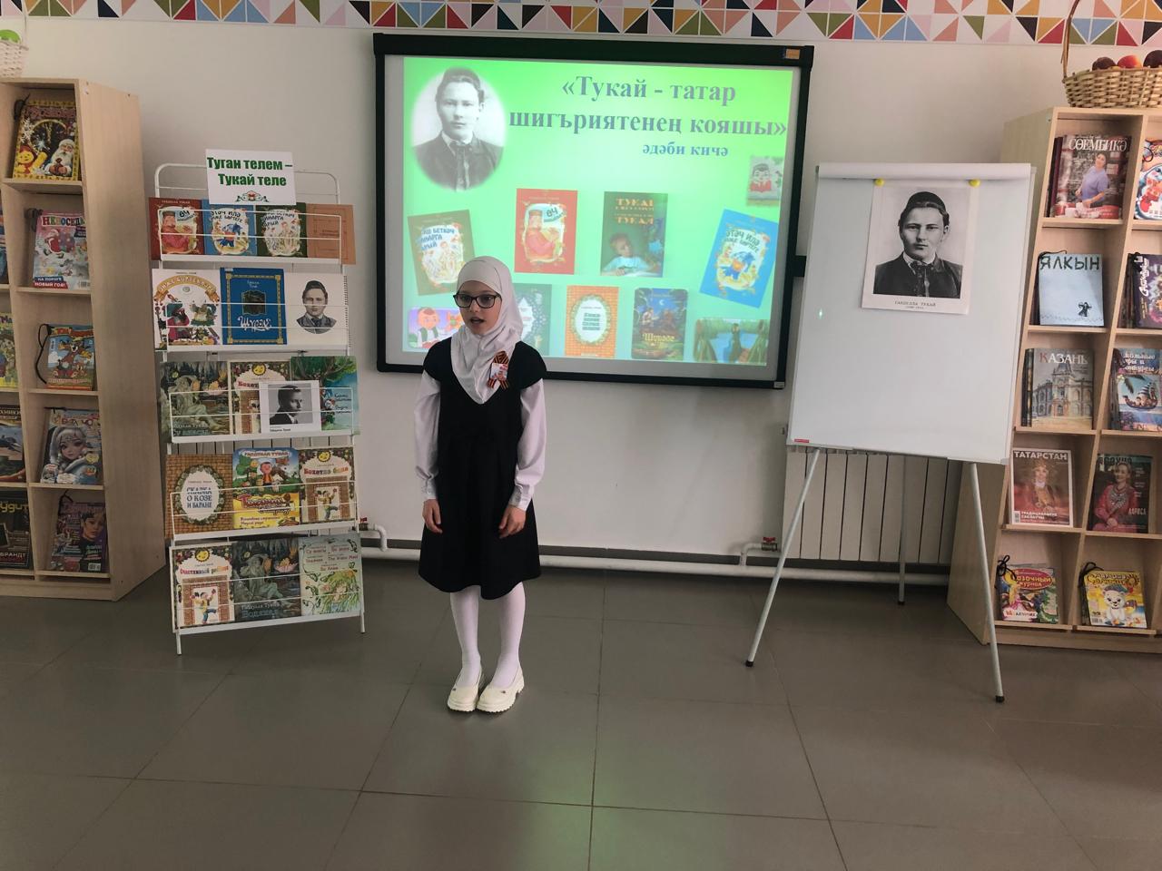 25 апрельдә С.В. Михалков исемендәге үзәк балалар китапханәсендә Камышлы авылының башлангыч сыйныф укучылары өчен китапханәче Фирдания Закирова экускурсия һәм татар шагыйре Габдулла Тукайның тууына 139 ел тулуга багышланган «Тукай – татар шигъриятенең кояшы» дигән әдәби сәгате үткәрде. Ул балаларга шагыйрьнең авыр балачагы, иҗади юлы турында сөйләде, аның китаплары белән таныштырды. Балалар шагыйрьнең иҗаты турындагы викторина сорауларына җаваплар бирделәр, туган телгә, туган якка, аның табигатенә мәхәббәтне данлаучы шигырьләр укыдылар, Г.Тукай сүзләренә язылган җырлар башкарды. Чарада катнашучы балаларга грамоталар тапшырылды. Чара “Туган тел” җырын башкару белән тәмамланды.