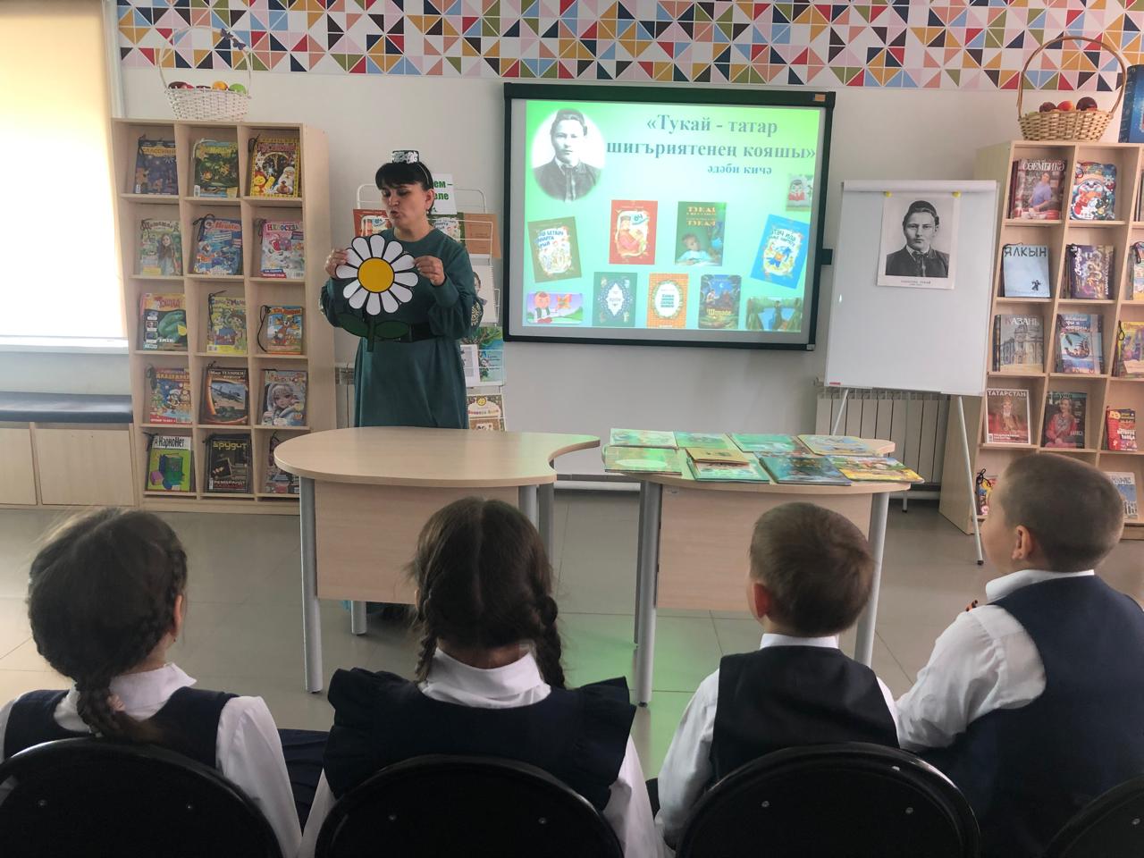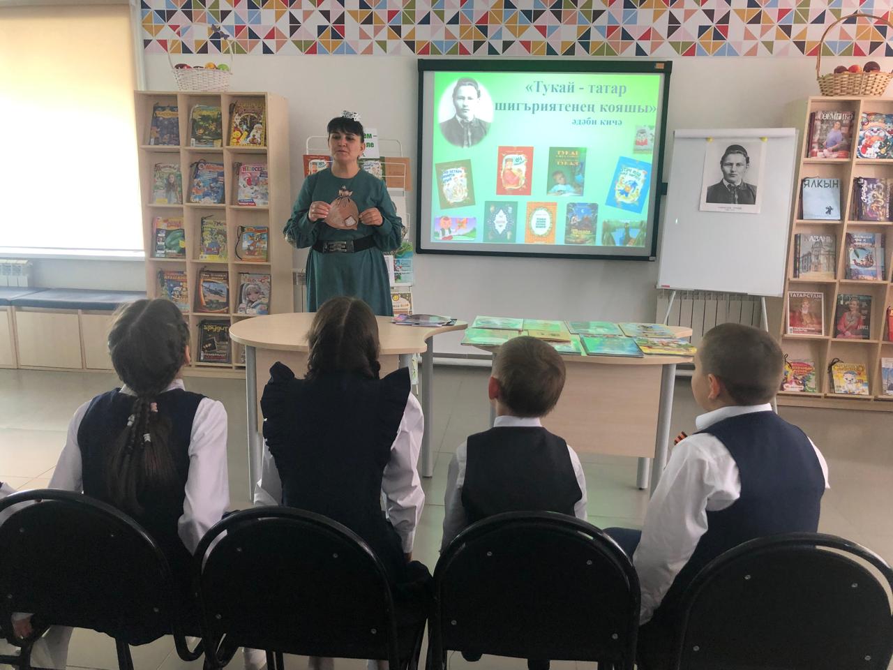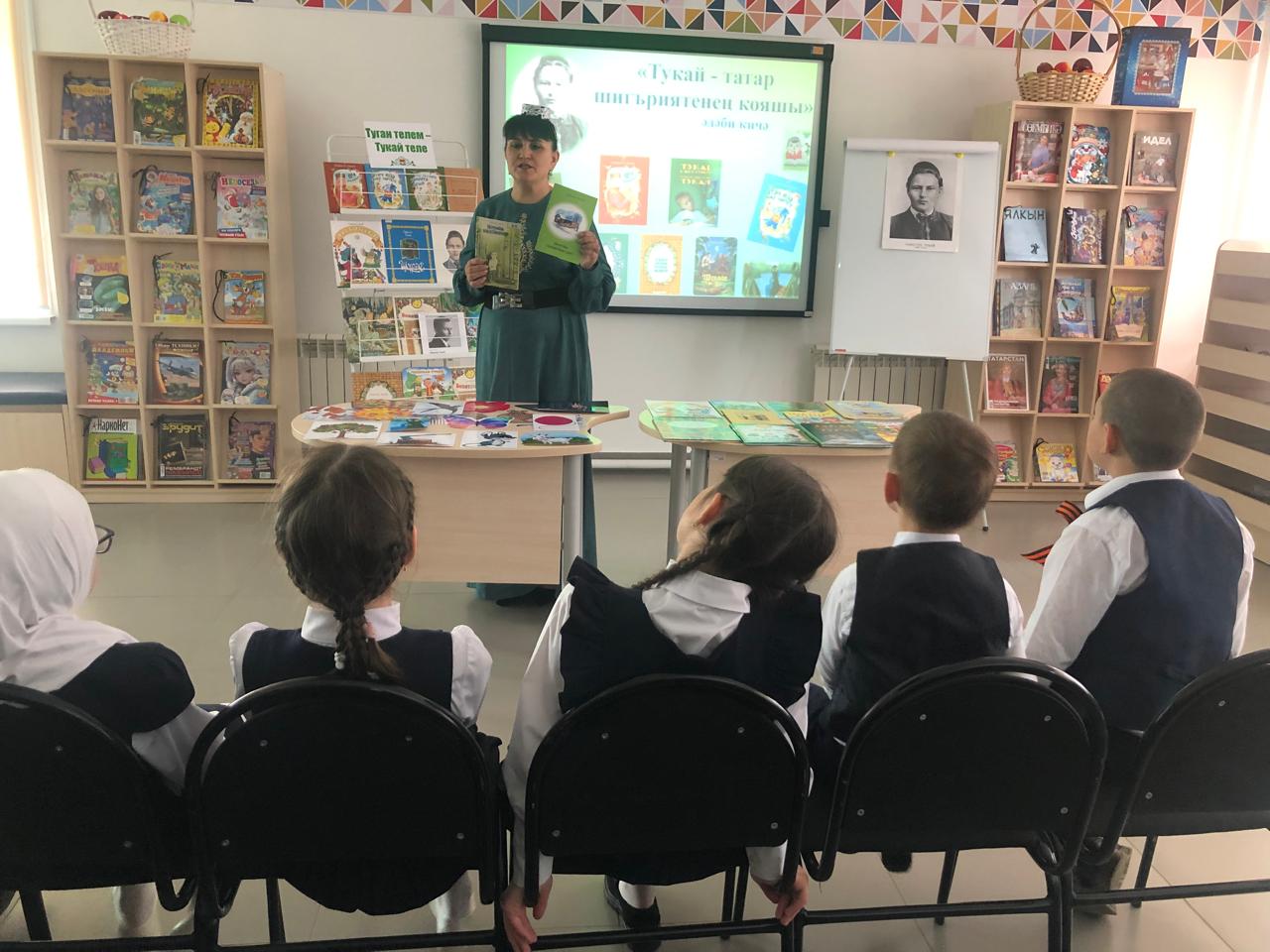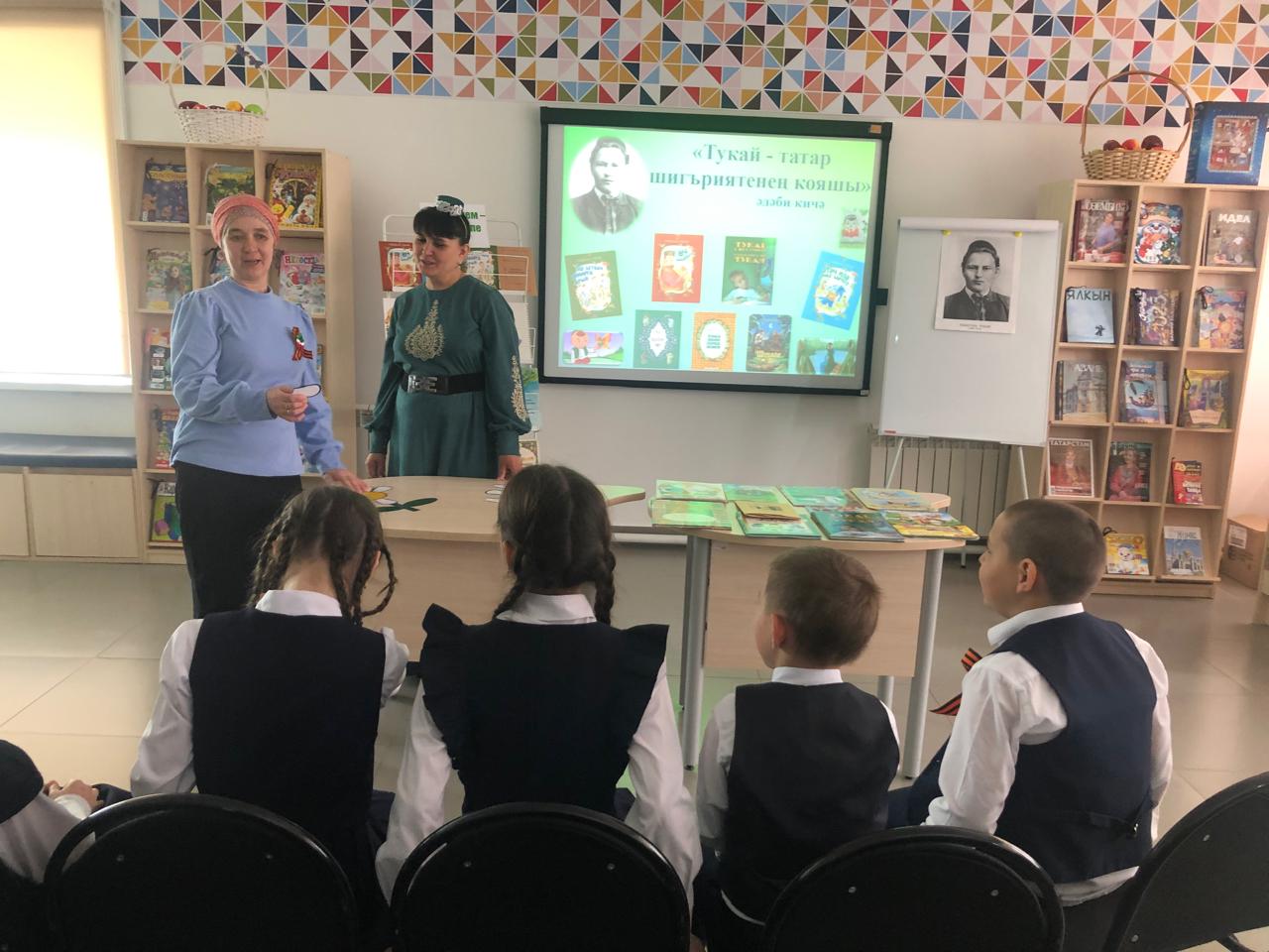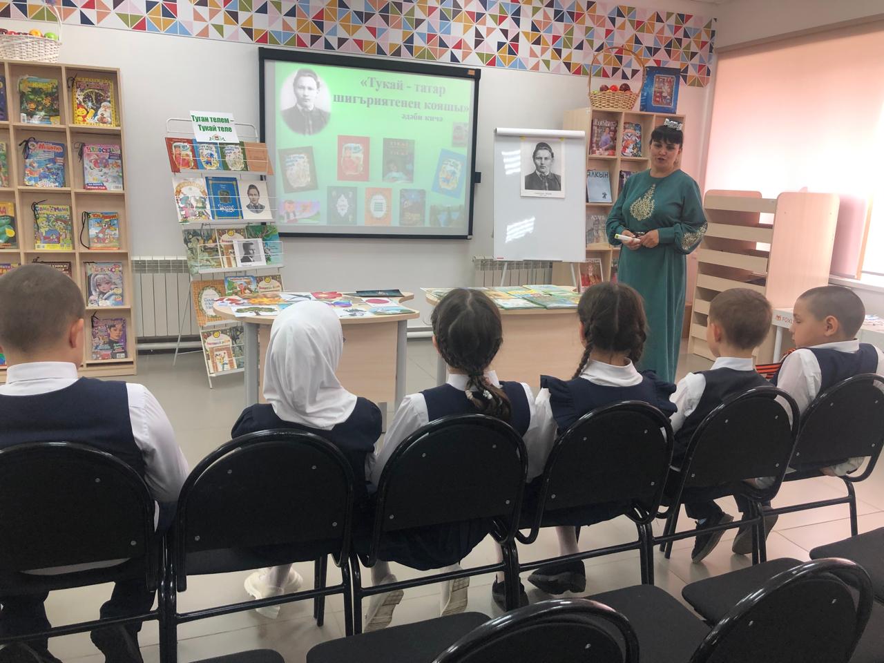 25 апреля библиотекарь центральной детской библиотеки имени С.В.Михалкова Закирова Фирдания для учащихся начальных классов филиала МБОУ “ООШ им.Х.В.Вагапова с.Березняк” в деревне Камышлы провела экскурсию по библиотеке и литературный час “Тукай – татар шигъриятенең кояшы”, посвящённый 139-летию со дня рождения татарского поэта Габдуллы Тукая. Она рассказала о тяжелом детстве, о творческом пути поэта, познакомила с его книгами. Дети ответили на вопросы викторины по творчеству поэта, выразительно читали стихотворения, воспевающие любовь к родному языку, родному краю, его природе, исполнили песни на слова Г.Тукая. Все участникам мероприятия были вручены грамоты. Мероприятие завершилось исполнением песни “Туган тел”.
