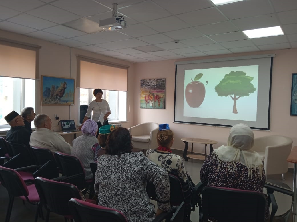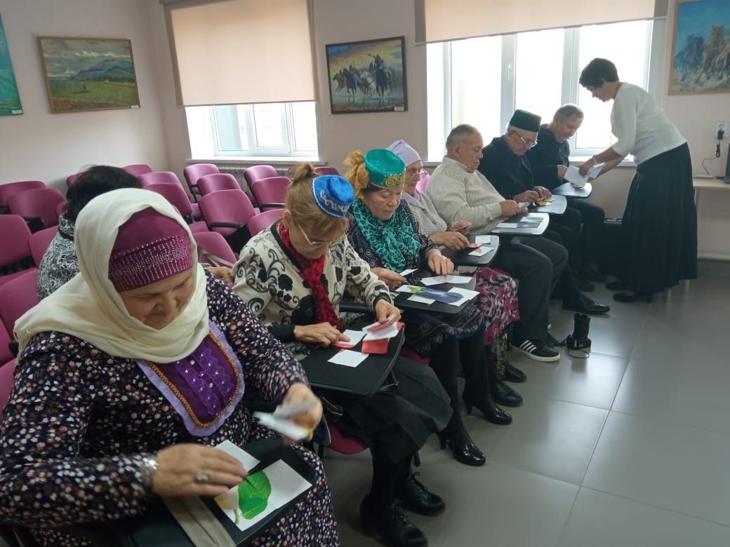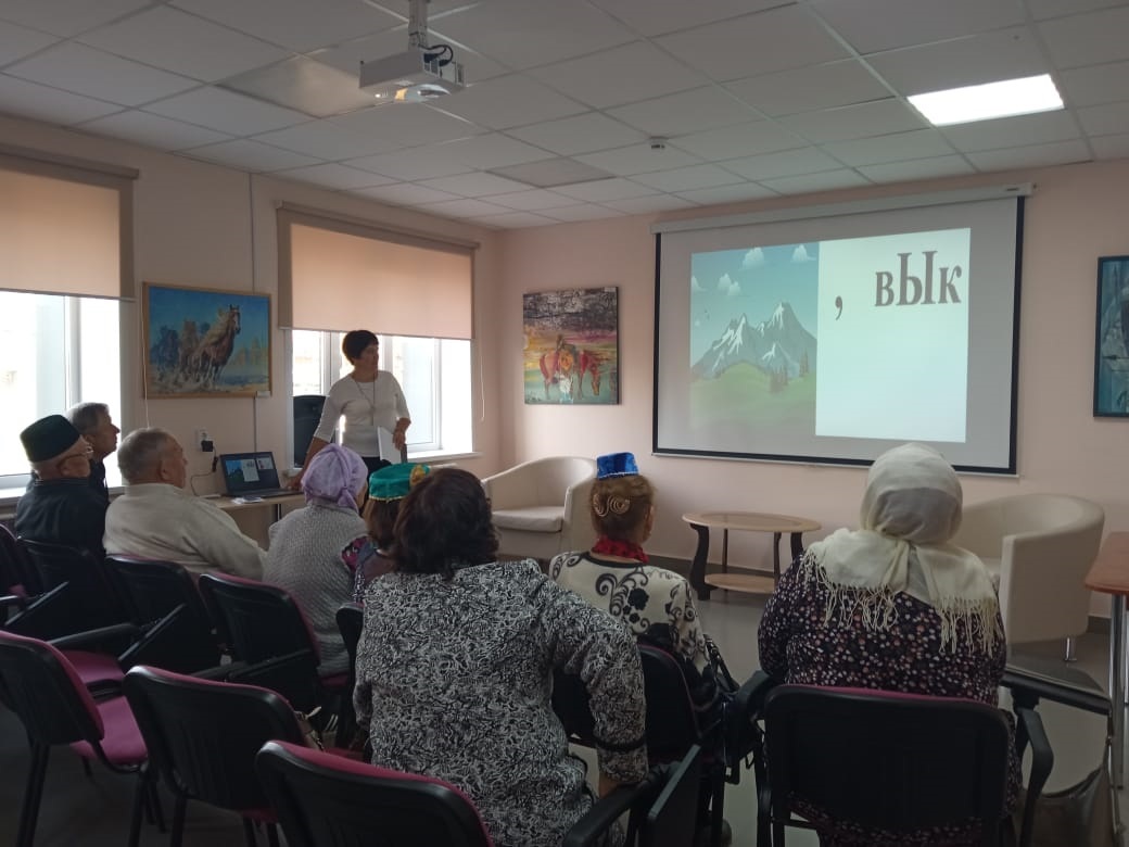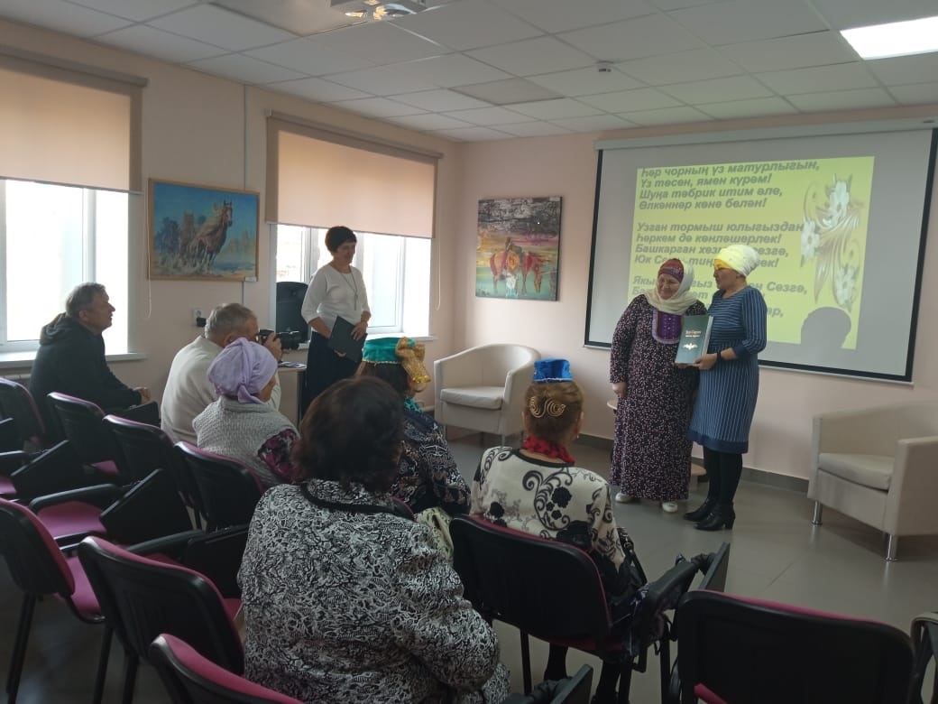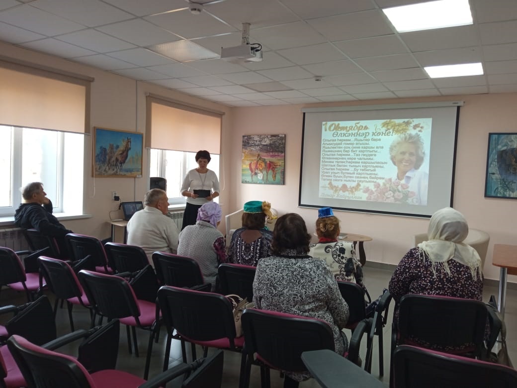 Китапханәче Саттарова Лилия Рәис кызы килгән кунакларны өлкәннәр көне белән котлап, үзенең җылы теләкләрен җиткерде. Өлкәннәрне бераз белемнәрен тикшереп карау өчен ребуслар чиштеләр, табышмакларга, сорауларга җаваплар бирделәр, пазл төзеделәр. Шулай ук, тормышта була торган төрле ситуациялардан чыгу юллары, балалар, оныклар тәрбияләүдә үзләренең тормыш тәҗрибәләре белән уртаклаштылар. Гармун моңнарына кушылып җырладылар һәм биеделәр. Бәйрәм чәй табыны артында дәвам итте.
