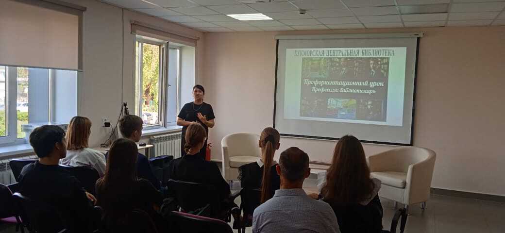 12 сентябрьдә Кукмара Үзәк китапханәсендә Ч.Т. Айтматов исемендәге Кукмара татар гимназиясенең 11 сыйныф укучыларына хезмәт күрсәтү бүлеге китапханәчесе Лилия Дамировна китапханә буенча обзор экскурсия үткәрде, китапханәнең структурасы турында сөйләде. Конференц-залда «Китапханәче һөнәре» дигән һөнәри юнәлеш дәресе үткәрде. Анда презентация ярдәмендә яшүсмерләрне китапханәче һөнәре, һөнәрдә ярдәм итәрлек сыйфатлар, карьераны үстерү мөмкинлекләре белән таныштырды.