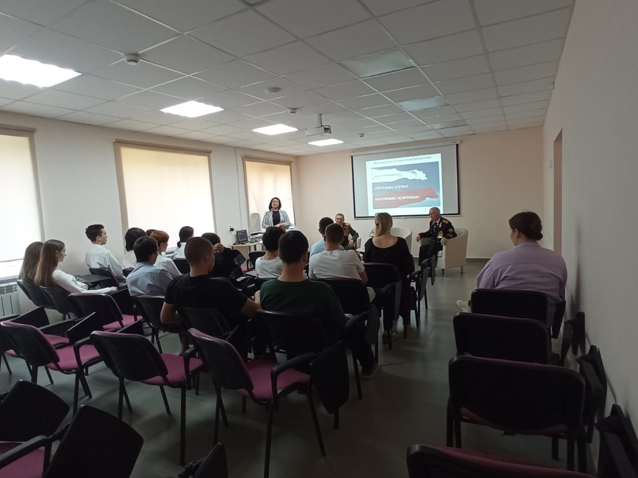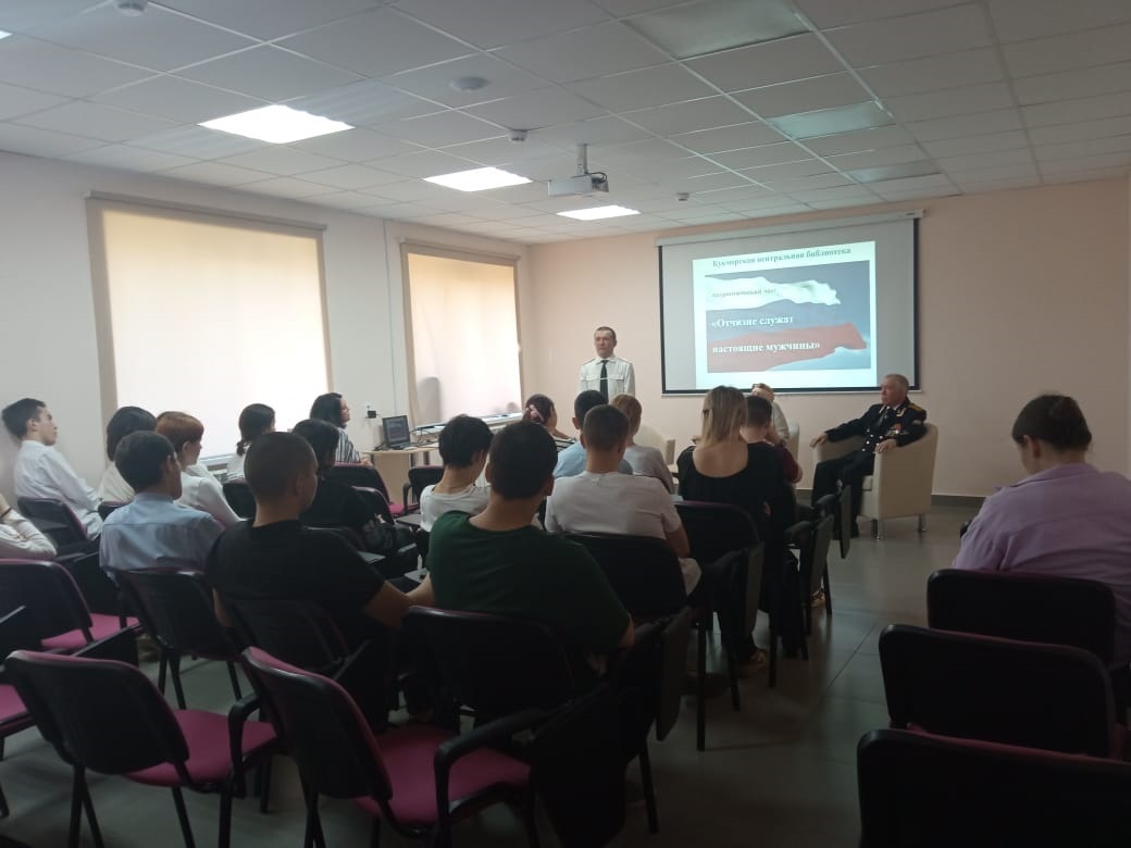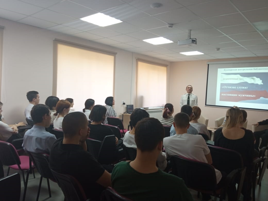 25 апрельдә Үзәк китапханәдә хезмәт күрсәтү бүлеге китапханәчесе Гарипова Л.Д. Кукмараның 3нче урта мәктәбенең 10нчы сыйныф укучылары өчен «Ватанга чын ир-атлар хезмәт итә» исемле патриотик сәгать үткәрде. Очрашуга отставкадагы подполковник Р.Ф.Гумеровны, өченче ранг капитаны Н.П. Петуховны һәм тарих укытучысы Л.Г. Гумерованы чакырдылар.