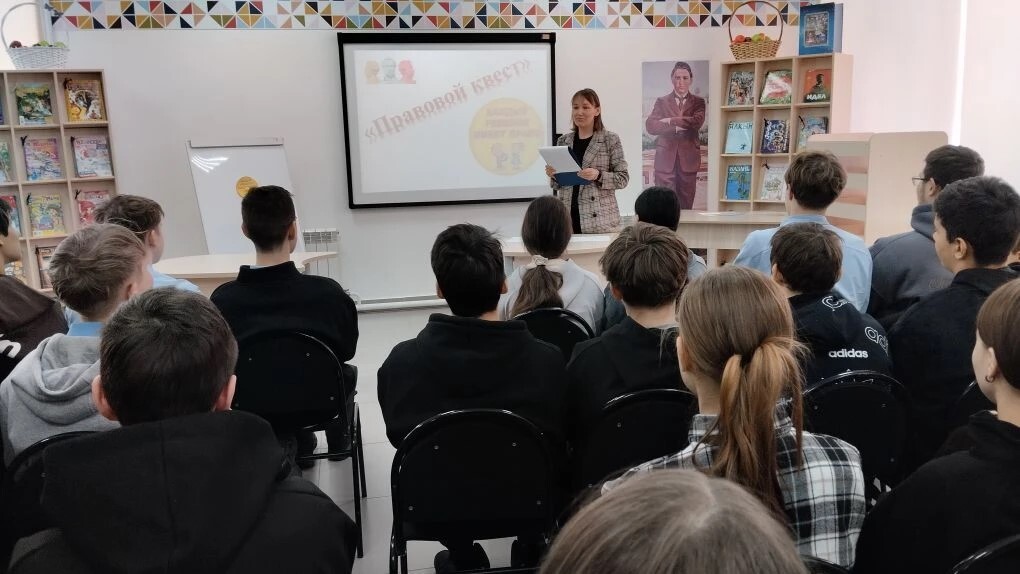25 февраля в рамках проекта «Пушкинская карта» библиотекарь центральной детской библиотеки имени С.В.Михалкова Асанова Алевтина для учащихся 8а класса школы №4 провела «Правовой квест». В ходе игры ребята закрепили знания про свои права и обязанности, прошли по станциям «Права ребёнка», «Ответственность», «Словесный переполох», «Права-обязанности», «Вопрос-ответ», «Сказочный юрист», научились отличать права от обязанностей. Мероприятие завершилось обзором книг.