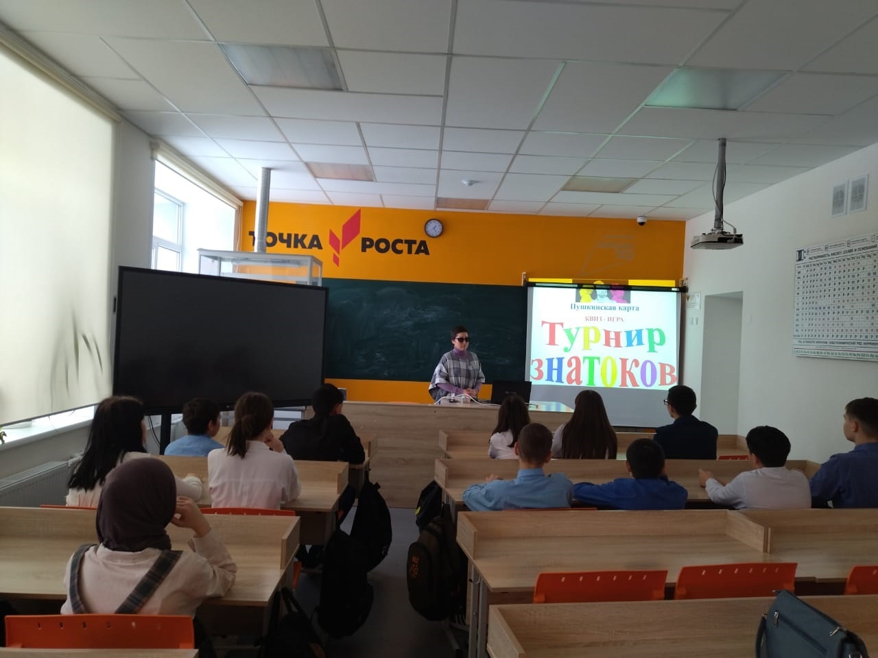 28 ноябрьдә, китапханә хезмәткәре Загидуллина Г.Ф., "Пушкин картасы" проекты кысаларында, 3-нче номерлы урта мәктәпнең 8 «б» сыйныфы укучылары өчен «Белгечләр турниры» исемле КВИЗ- уены үткәрде.