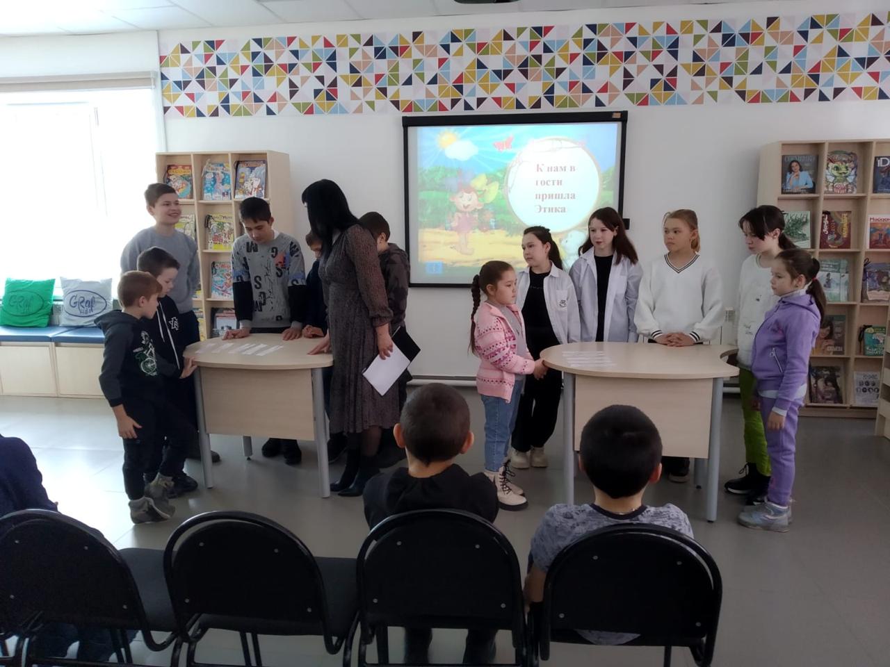 15 марта библиотекарь центральной детской библиотеки им.С.В.Михалкова Ахметова Лейсан для учащихся Каркаусьской средней школы им.Ф.Ахметова провела познавательный час «К нам в гости пришла этика». Она познакомила ребят с понятием «этикет», рассказала, откуда он появился, какие виды этикета бывают, как вести себя за столом, в общественных местах, ответили на вопросы викторины «Поговорим об этикете». Мероприятие завершилось обзором книг и просмотром мультфильмов.